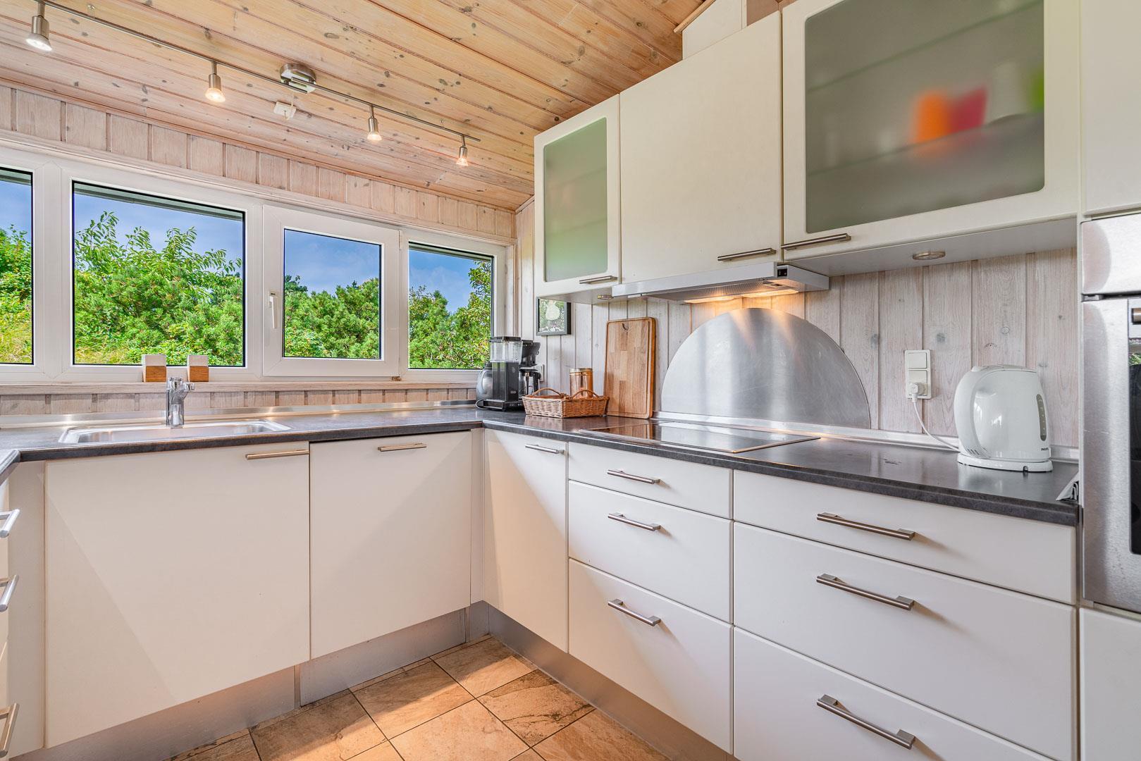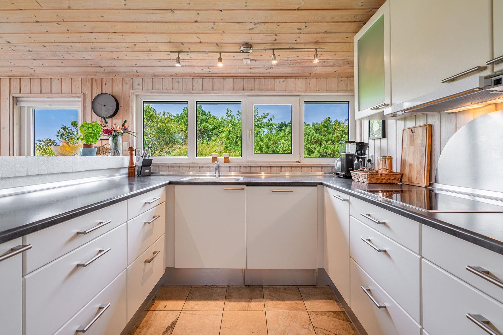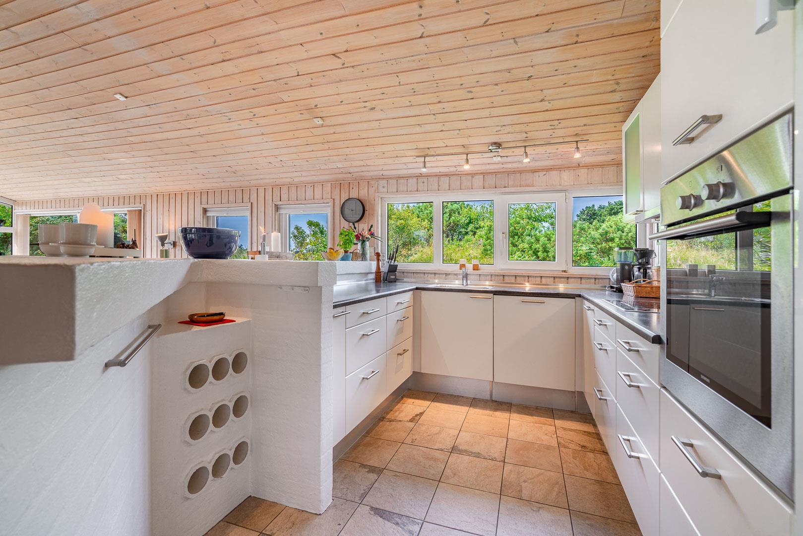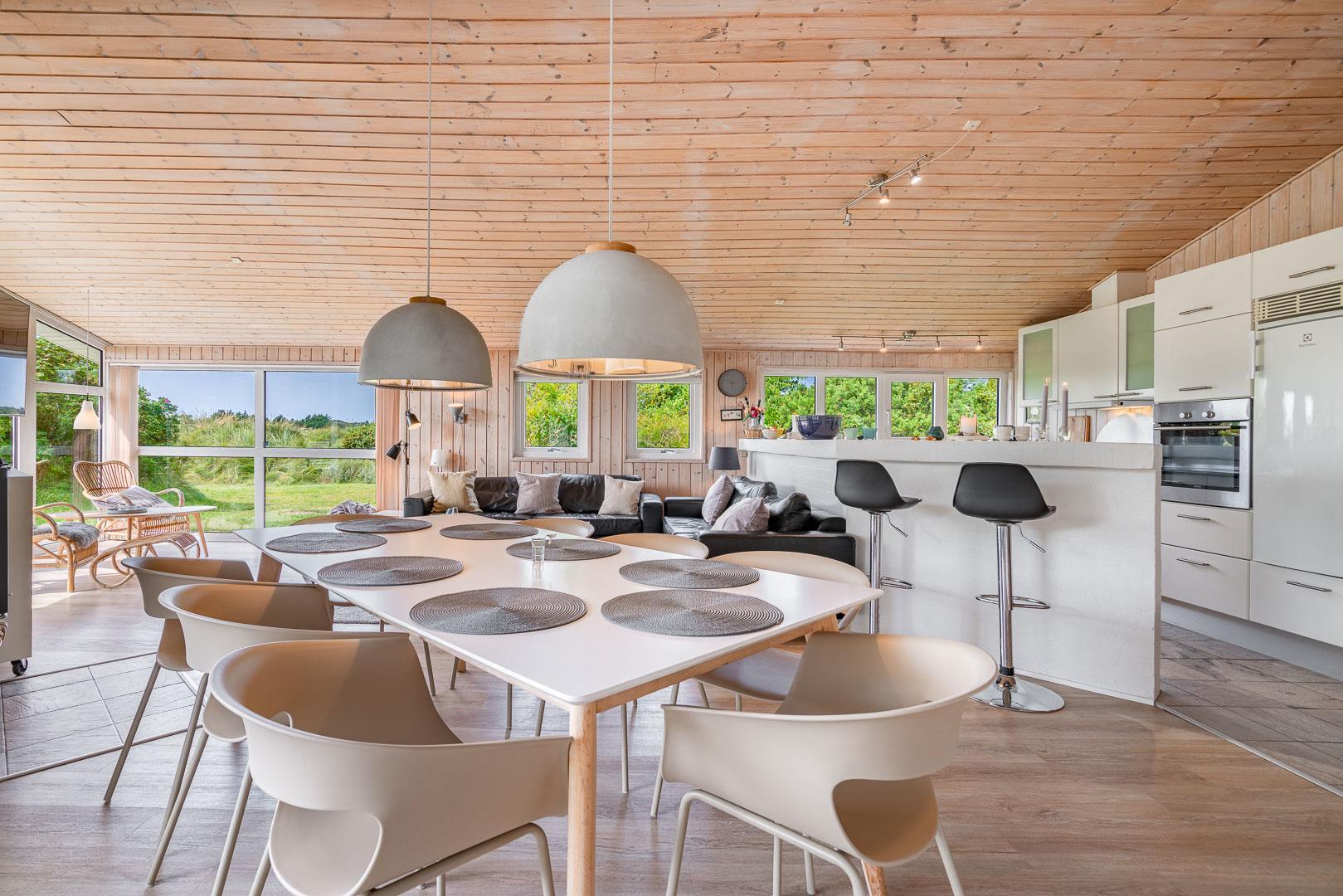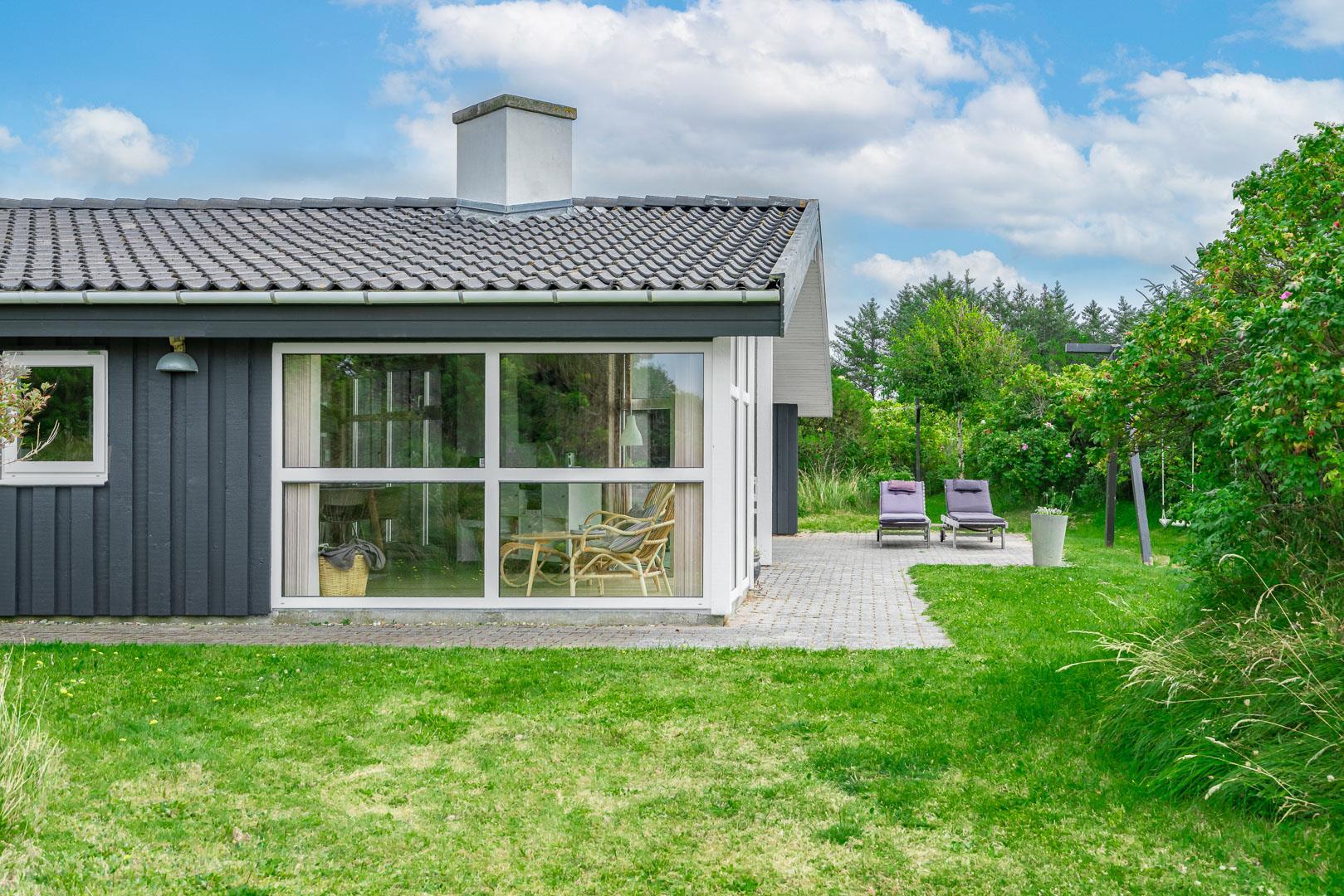 Du finder ikke meget bedre omgivelser at tilbringe ferien end her i Henne. Du er omgivet af en fantastisk natur med store brede sandstrande, der åbner sig bag bælter af bløde, marehalmsbeklædte klitter. Det er oplagt at drage på opdagelse i Blåbjerg Plantage eller ved Henne Mølle Å. Fra feriehuset er der kun 15 minutters gåafstand til Strandvejen, hvor der er restaurant, tøjforretninger, købmænd og cafeer.