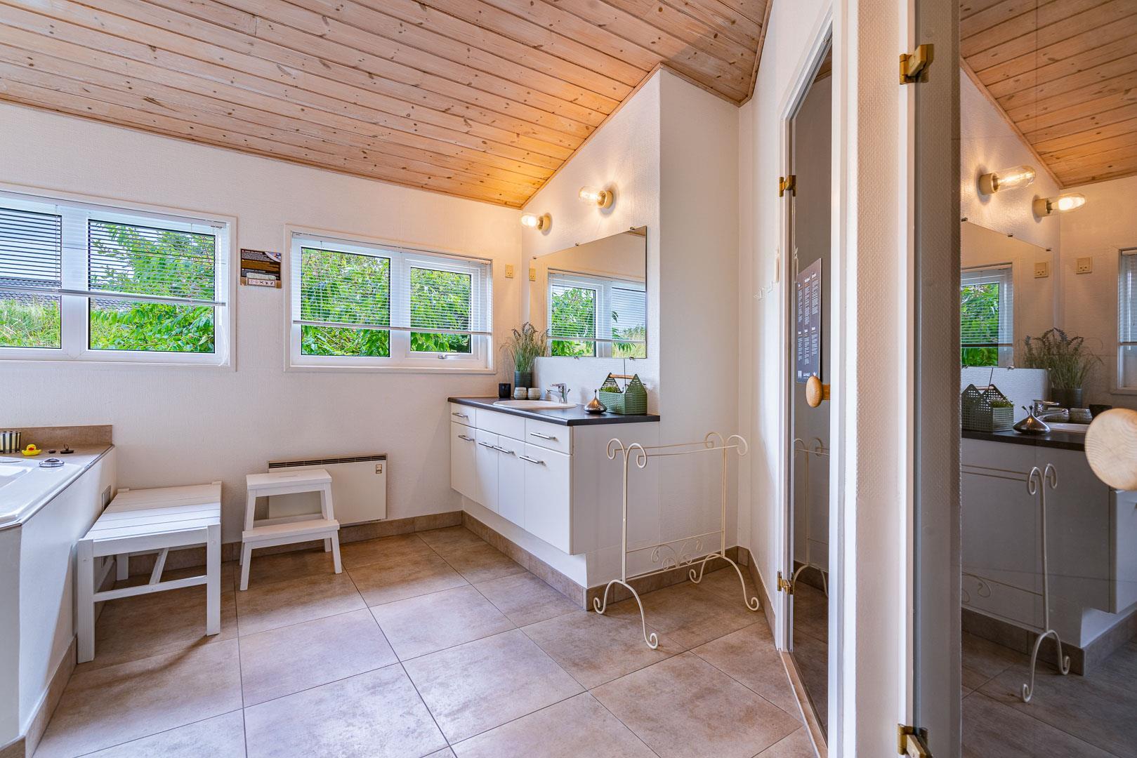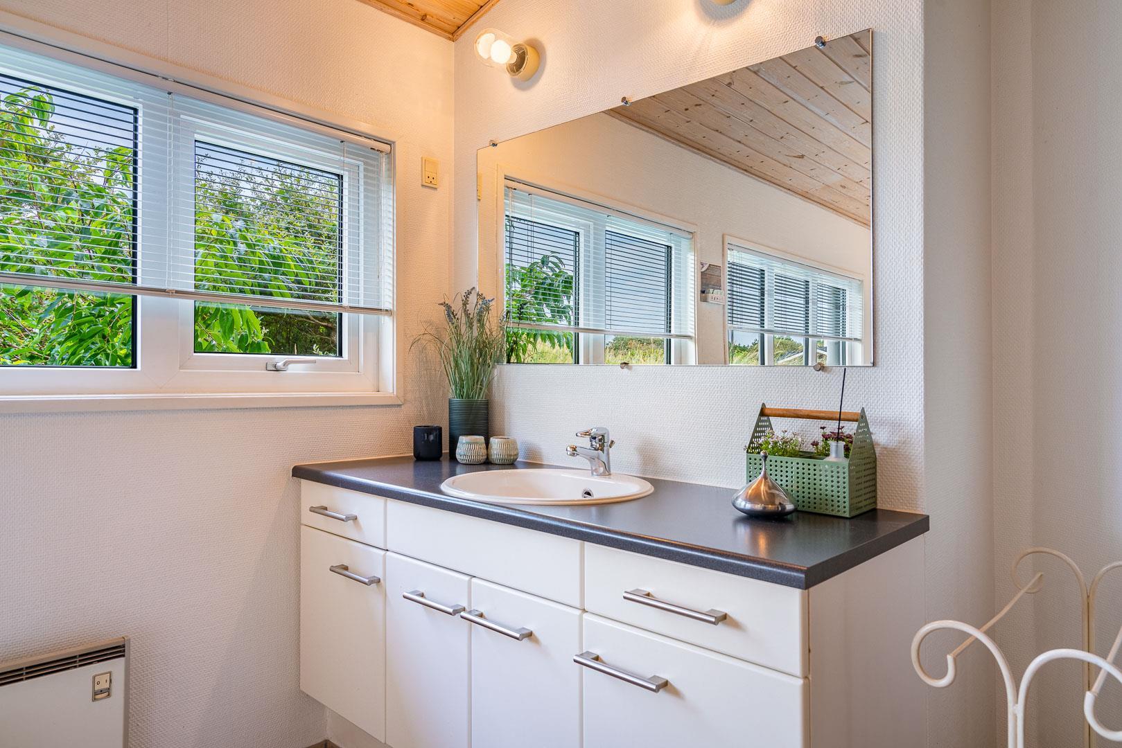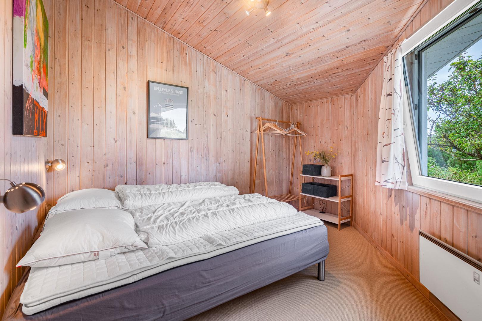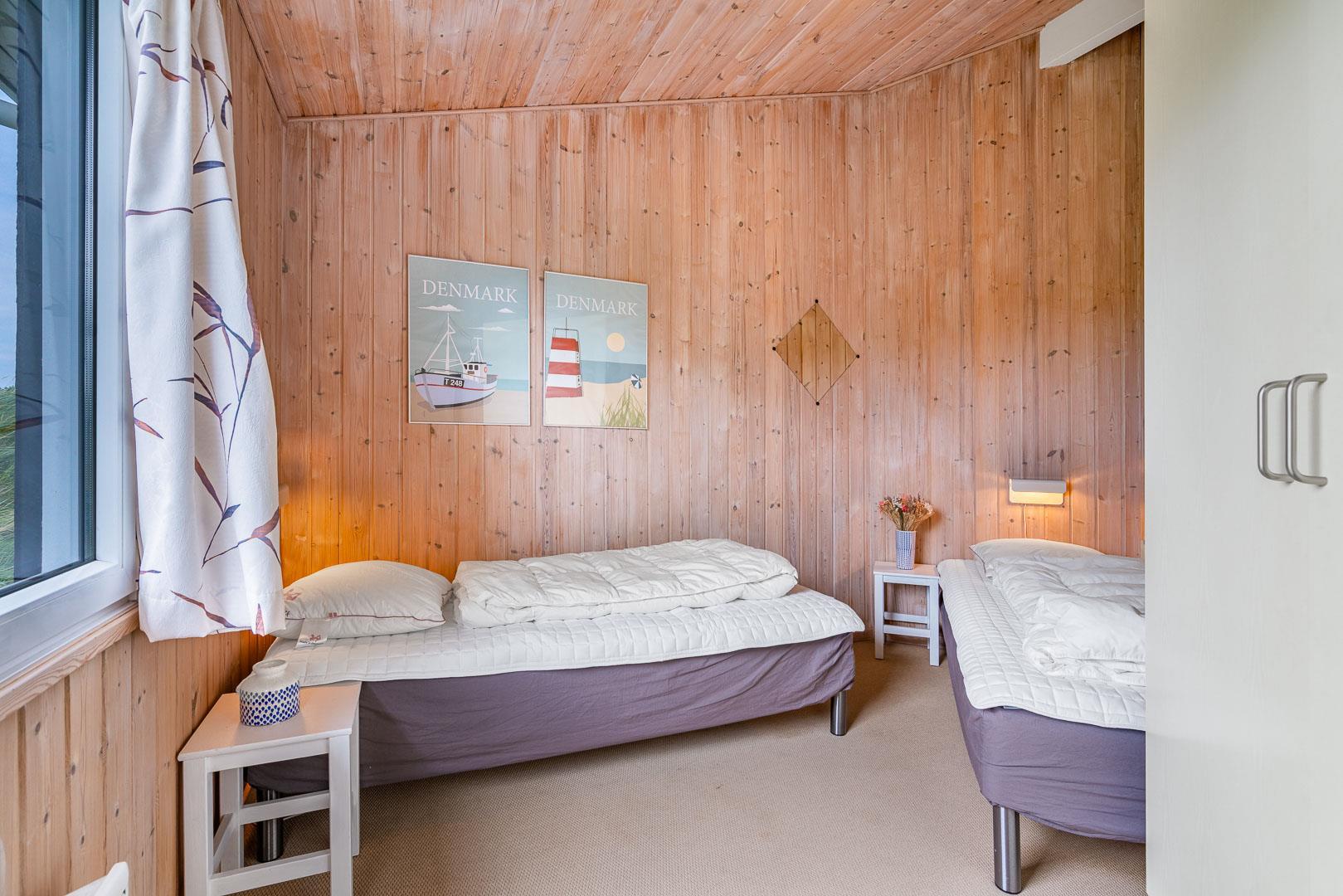De otte sovepladser er fordelt på fire rum, hvoraf de to har dobbeltsenge, mens de andre har to enkeltsenge i hver. Rummene ligger med god afstand mellem sig, og der er to badeværelser, hvilket er en fordel, hvis man er mange.