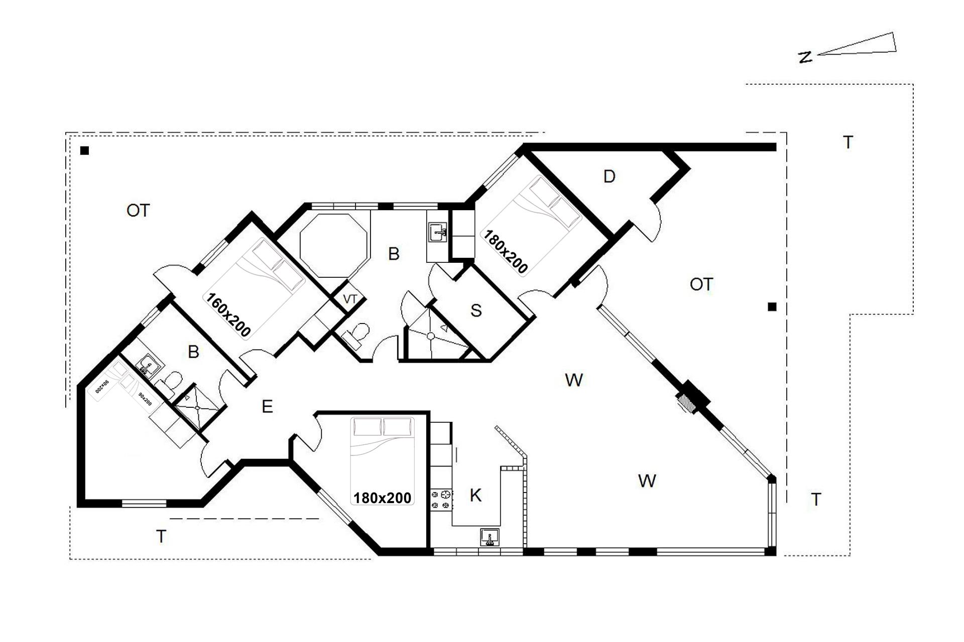 Sengestørrelse: 2 dobbeltsenge 180 x 200 cm + 1 dobbeltseng 160 x 200 cm + 2 enkeltsenge 90 x 200 cm