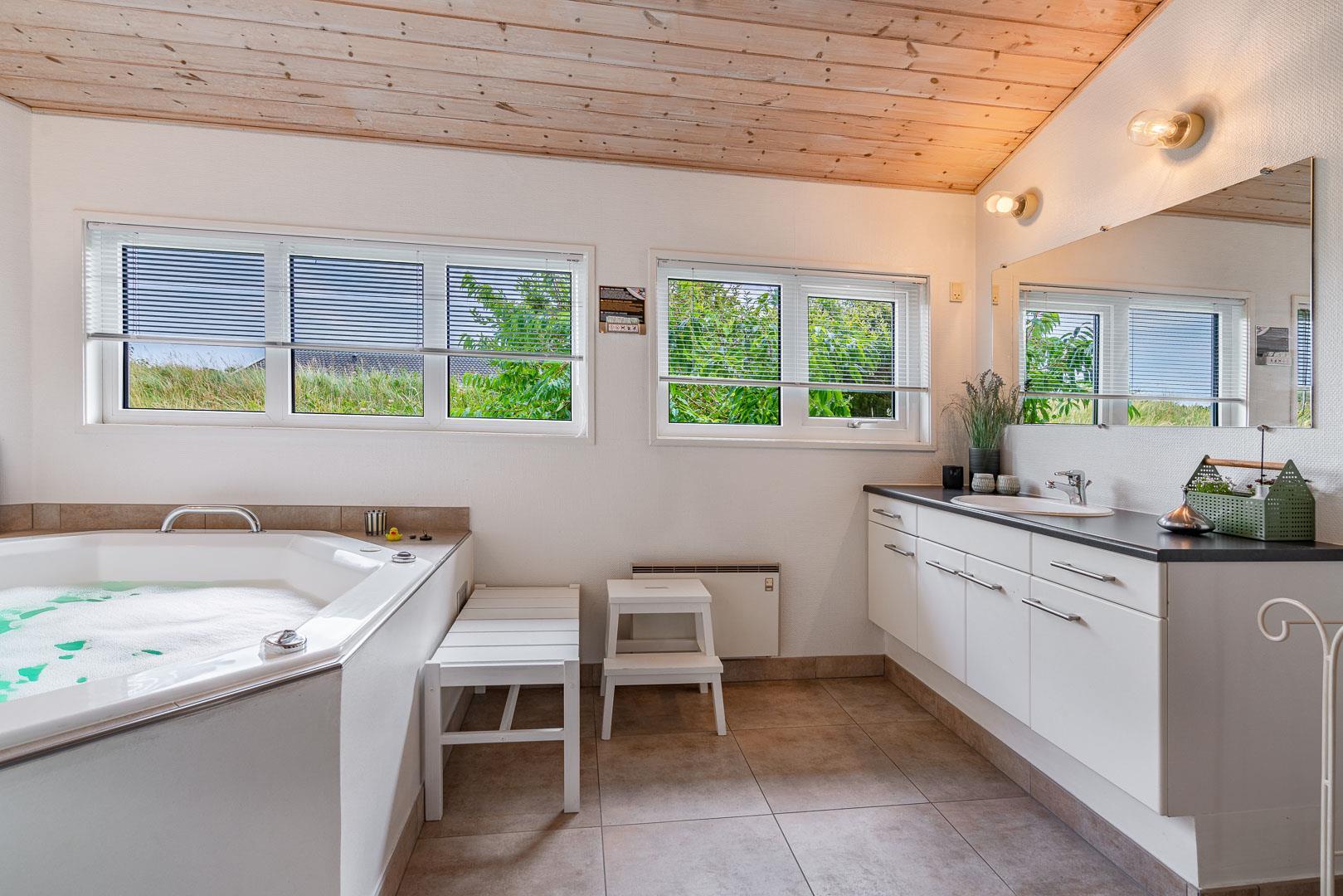 Tag vennerne eller familien med til dette dejlige sommerhus Gejlbjergvej 15 Henne Strand Syd i Henne, som er udstyret med hele otte sovepladser, store lyse opholdsrum samt wellnessbadeværelse med spa og sauna. Med andre ord det perfekte setup for jer, der sætter pris på afslapning i et hyggeligt hus eller på en skøn terrasse efter en aktiv dag i klitterne, skoven eller ved stranden.