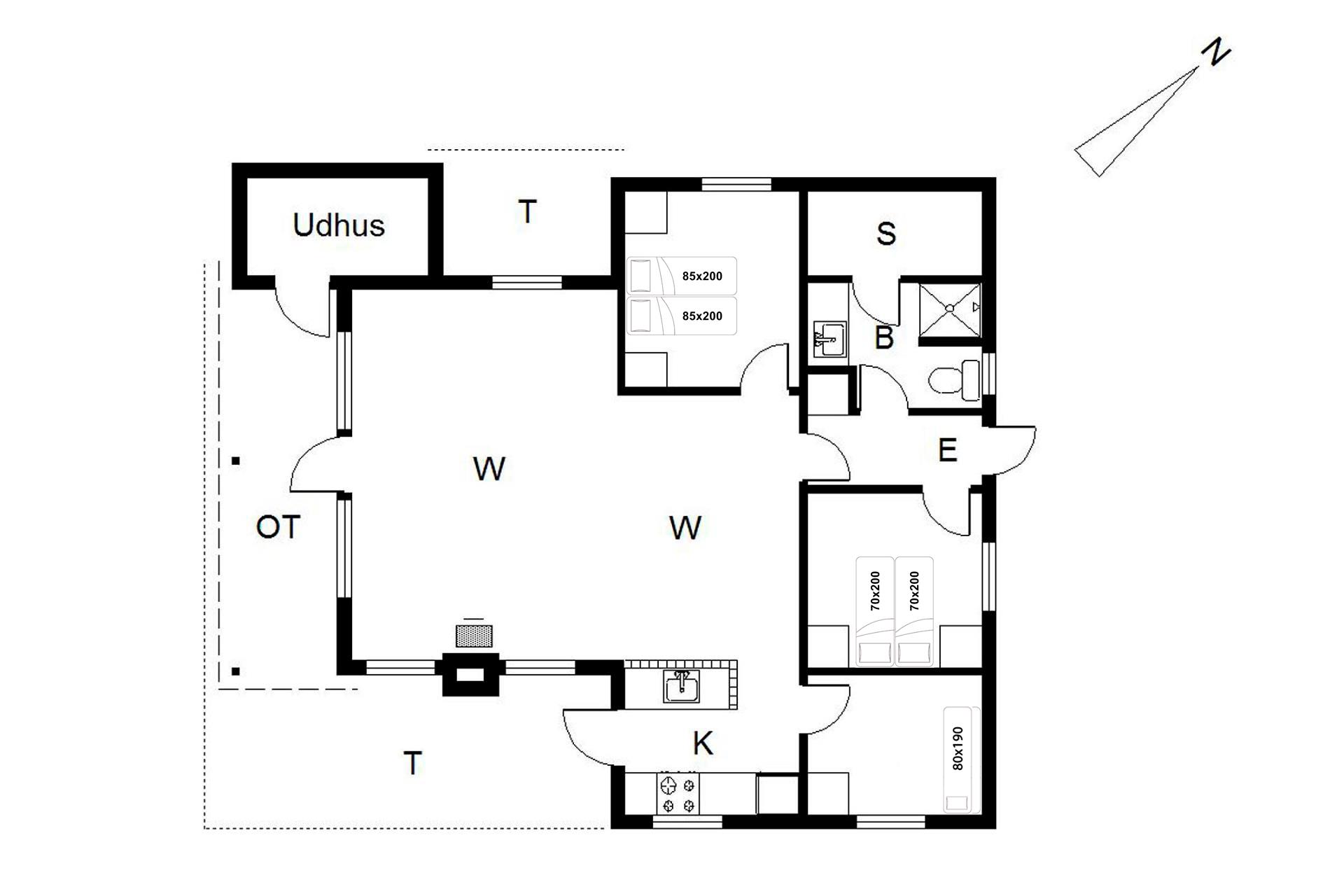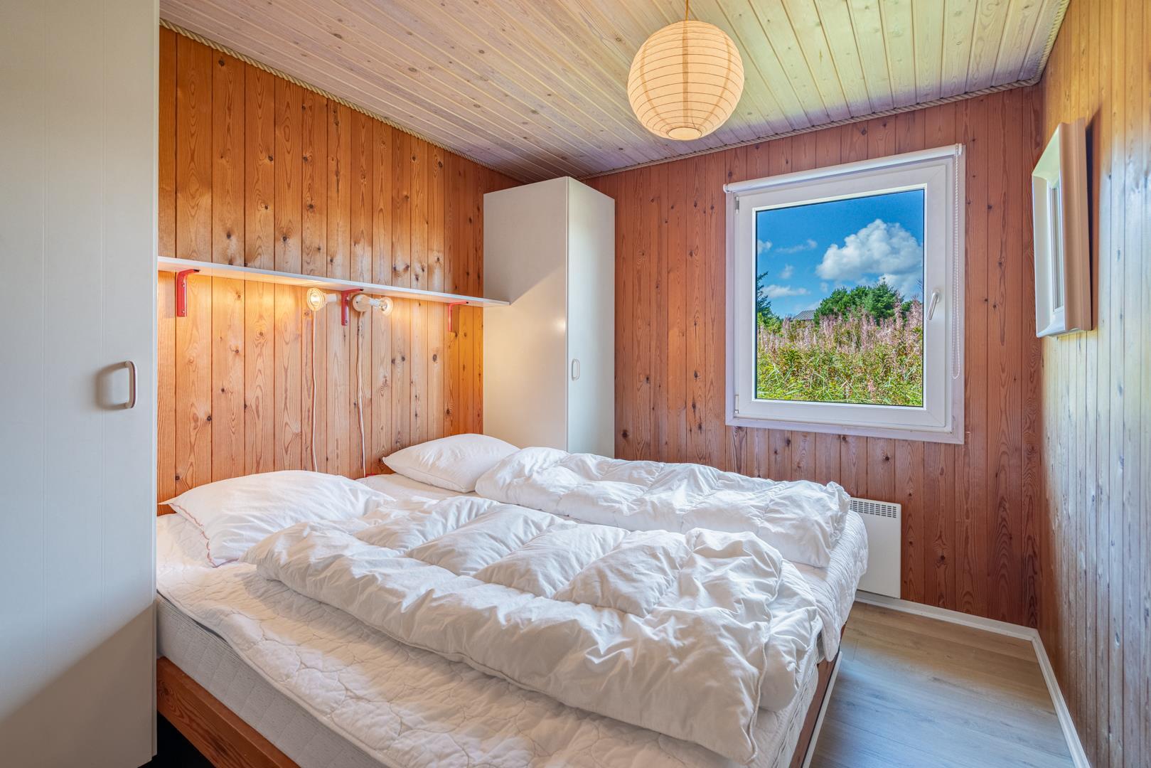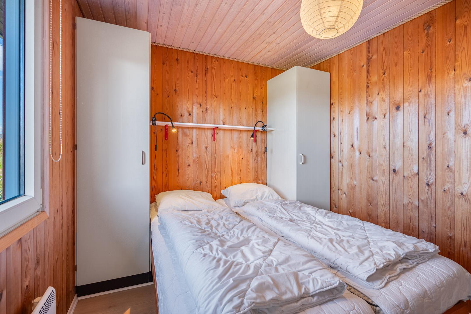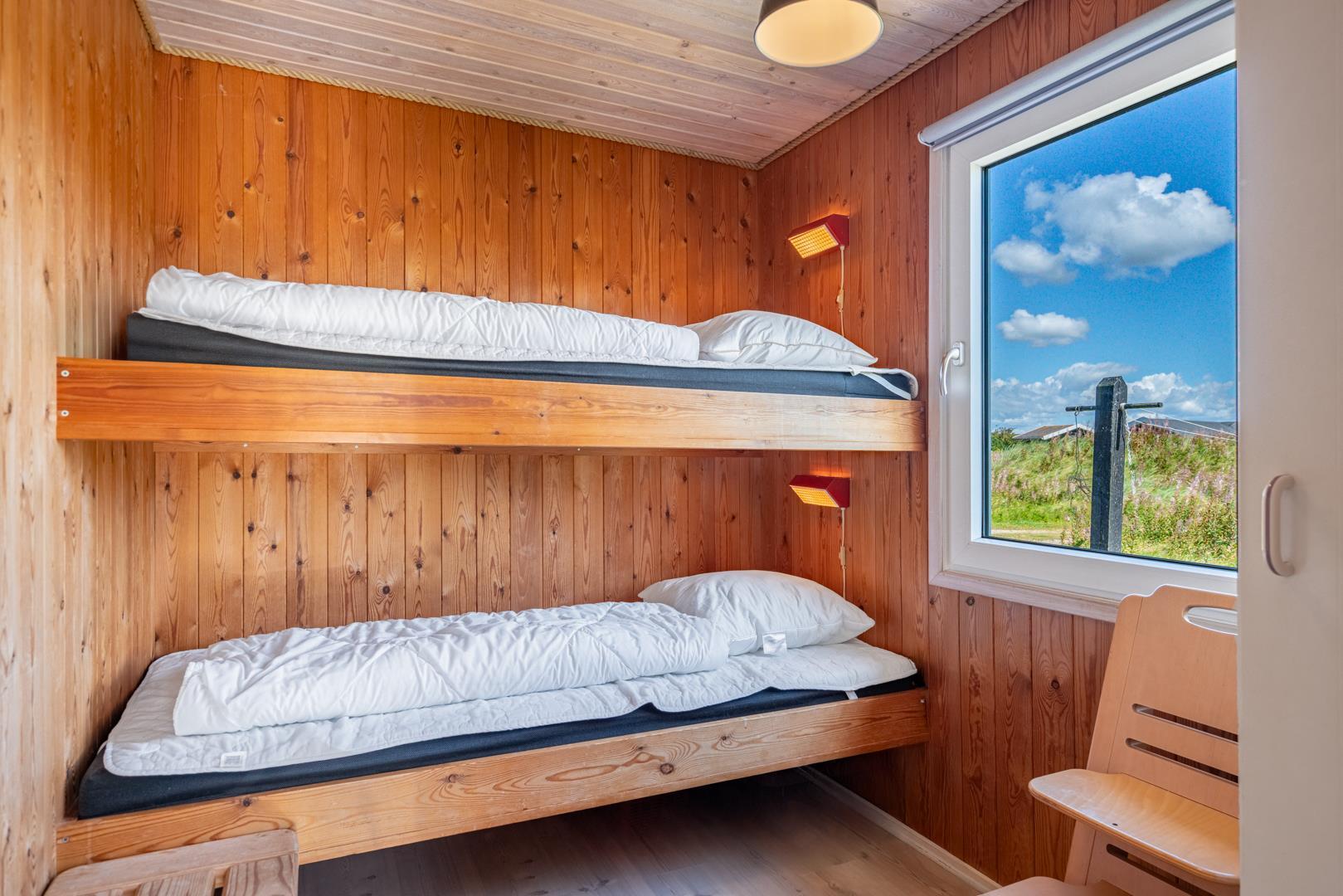 Sengestørrelse: 1 dobbeltseng med 2 madrasser 85 x 200 cm + 1 dobbeltseng med 2 madrasser 70 x 200 cm + 1 køjeseng 80 x 190 cm.