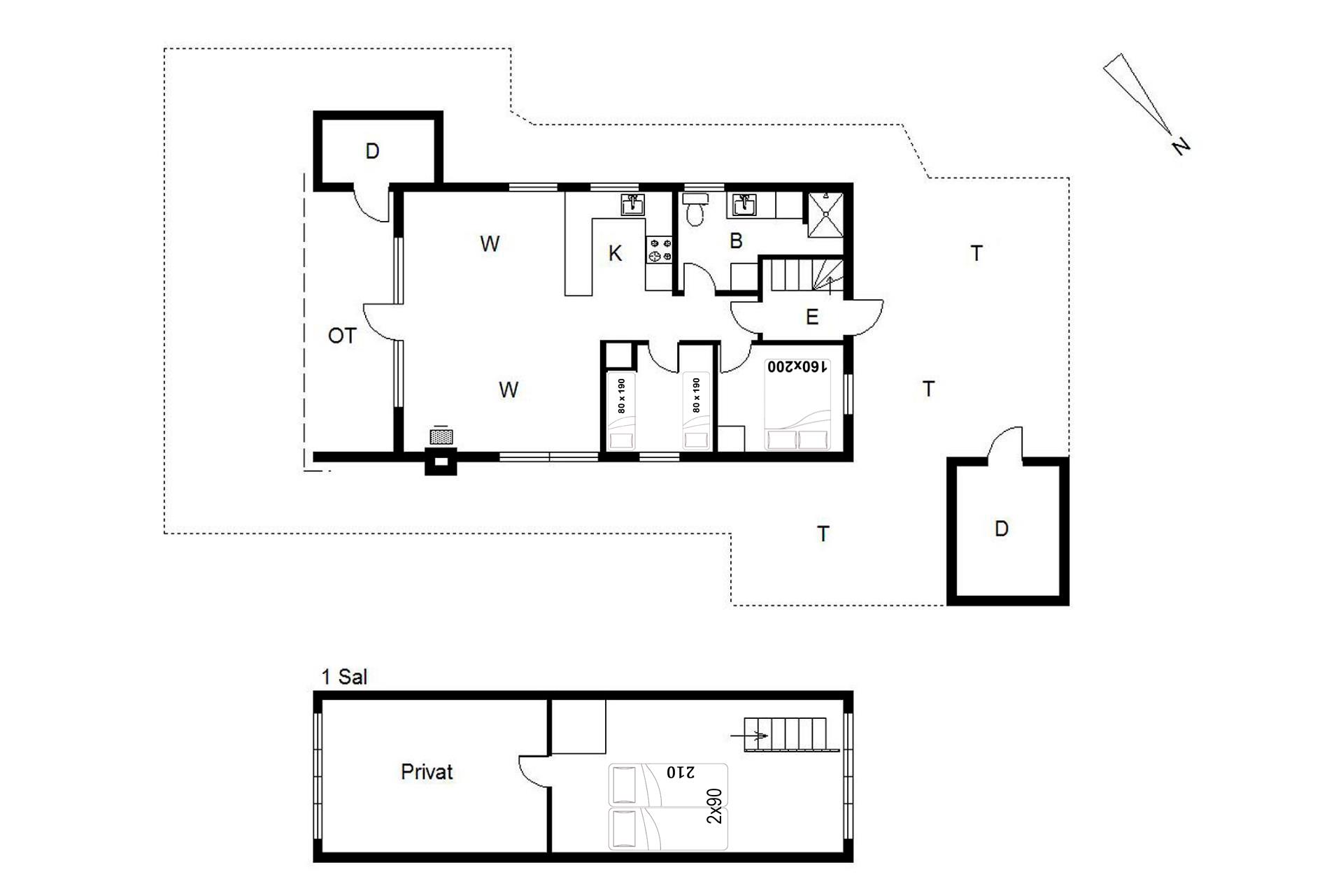 Sengestørrelse: 1 dobbeltseng 160 x 200 cm + 1 dobbeltseng med 2 madrasser 90 x 210 cm + 2 enkeltsenge 80 x 190 cm