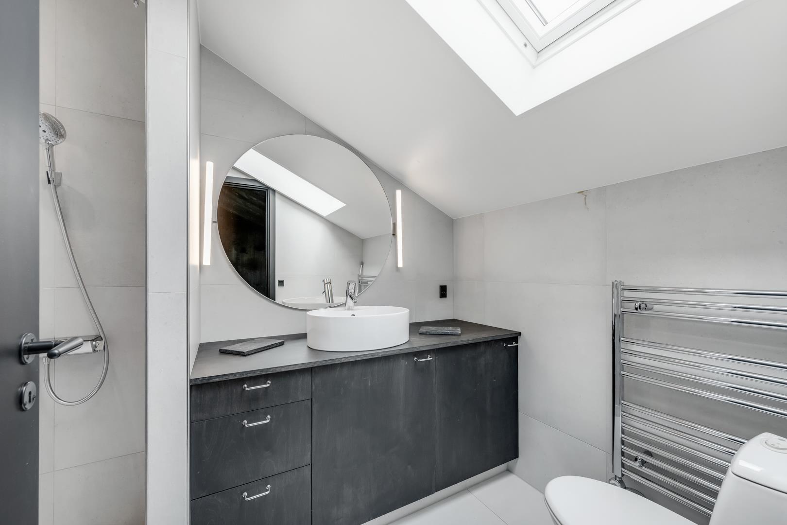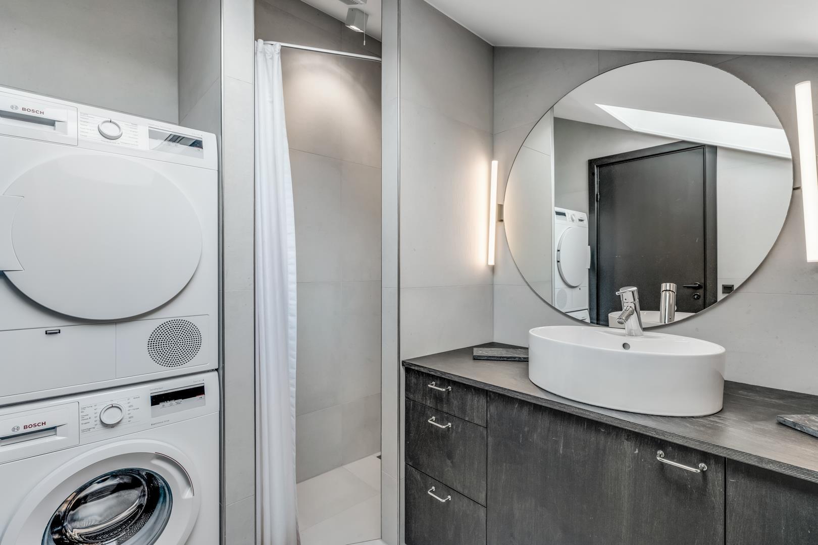 To moderne badeværelser, det ene med vaskemaskine og tørretumbler, fuldender indretningen.
