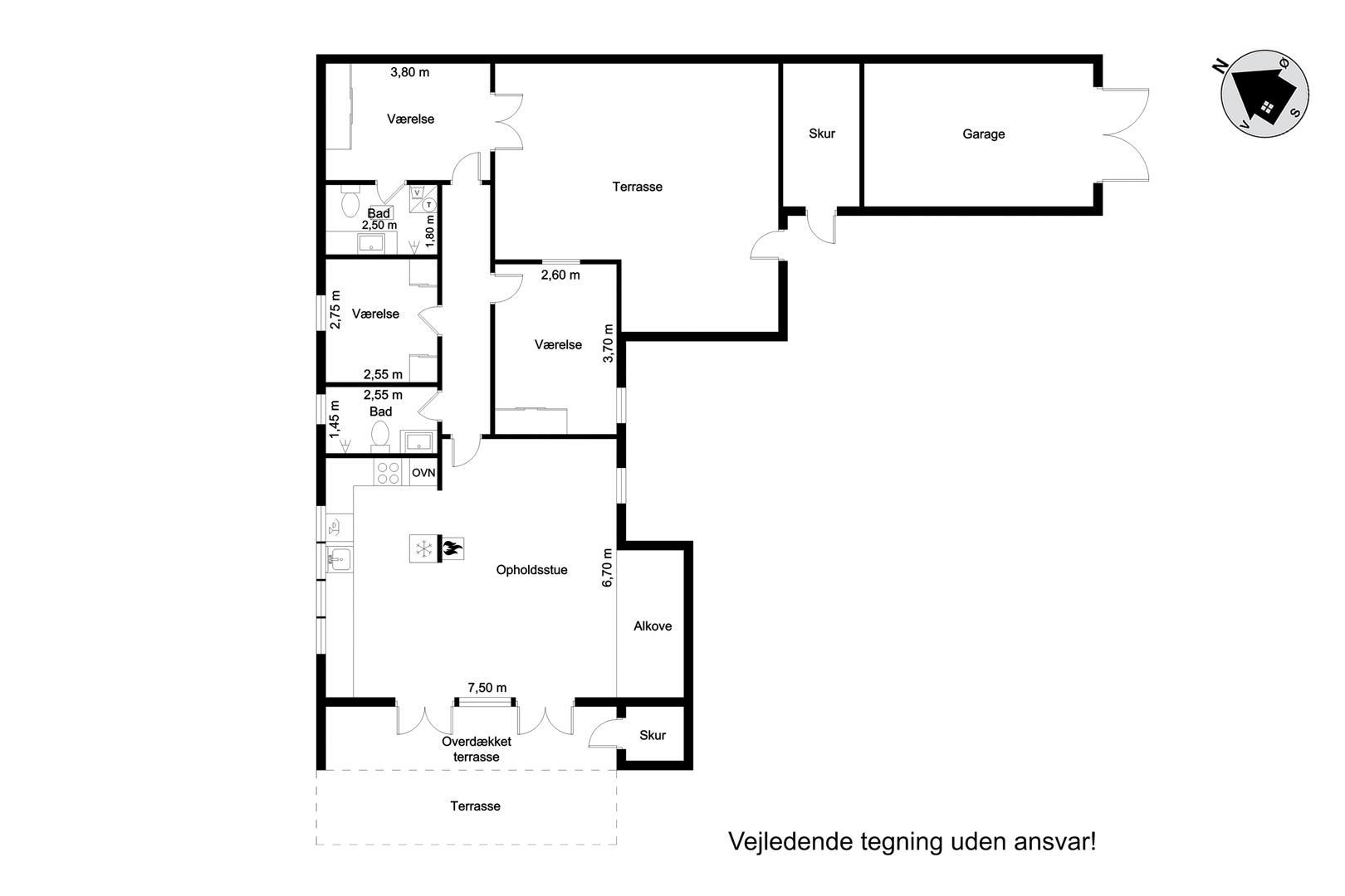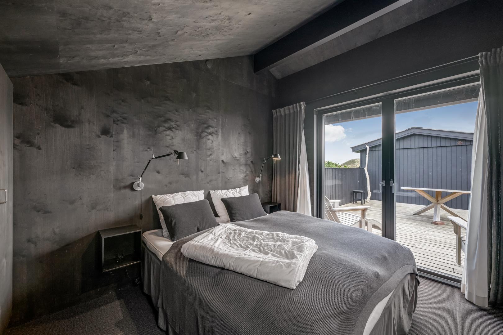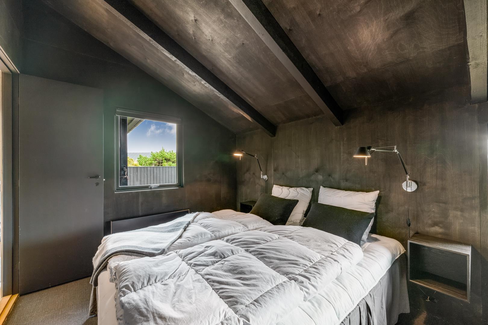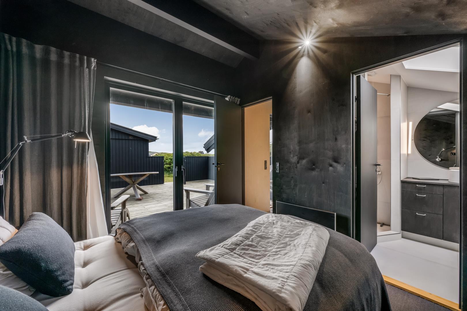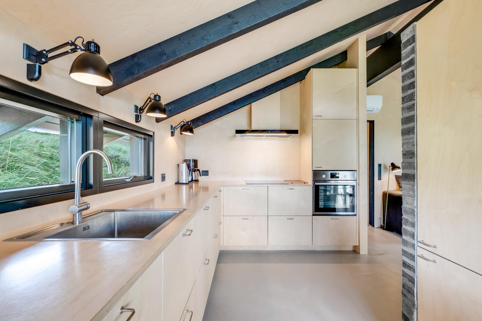 Det åbne køkken byder på rigtig meget opbevaringsplads, generøse arbejdsflader og en indretning, som man kun sjældent finder i kvalitets-sommerhuse i Henne Strand. Fra entréen er der adgang til tre soveværelser: to med dobbeltseng og ét med to enkeltsenge. Et af soveværelserne har direkte adgang til terrassen – perfekt til det første kig ud over klitterne om morgenen.