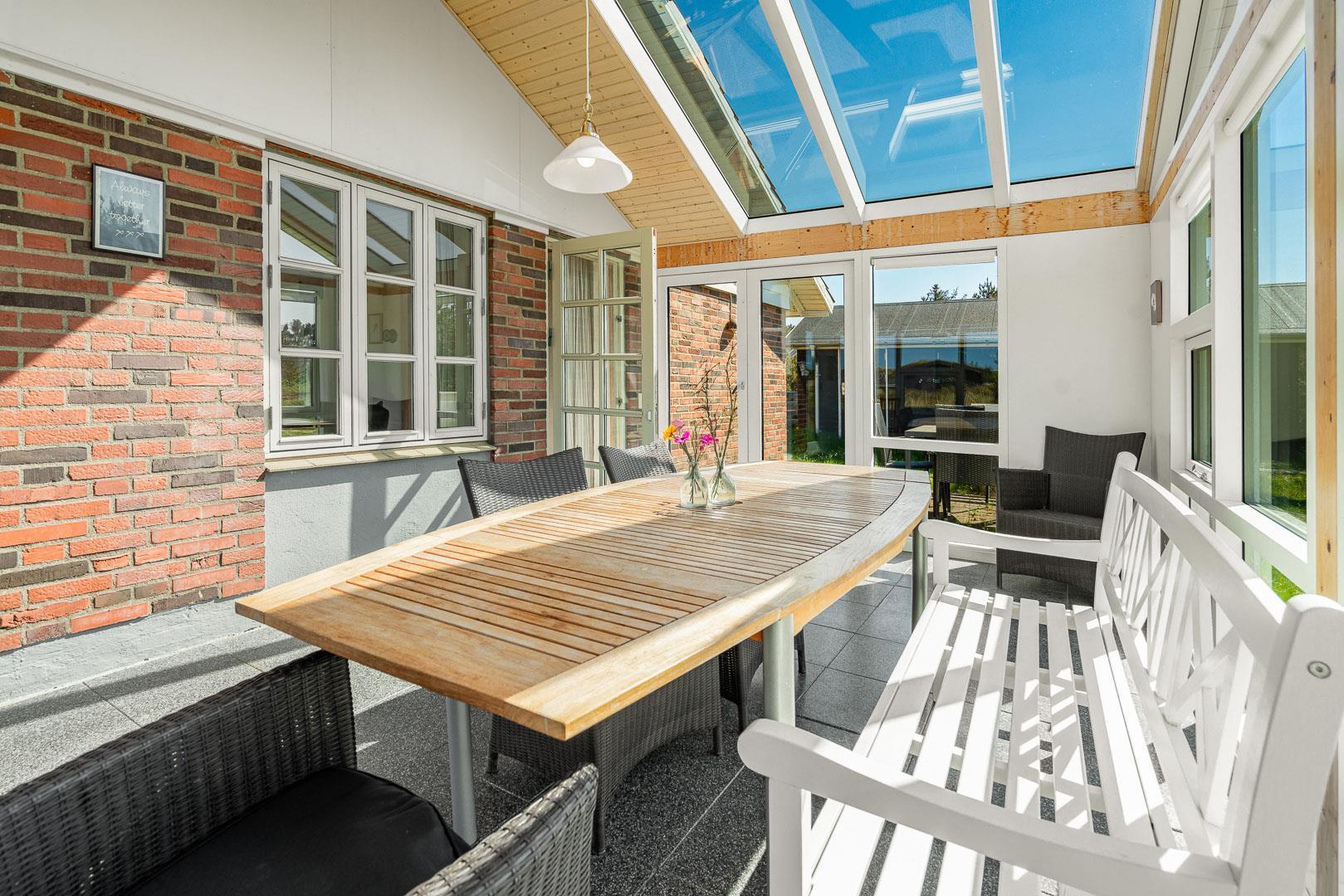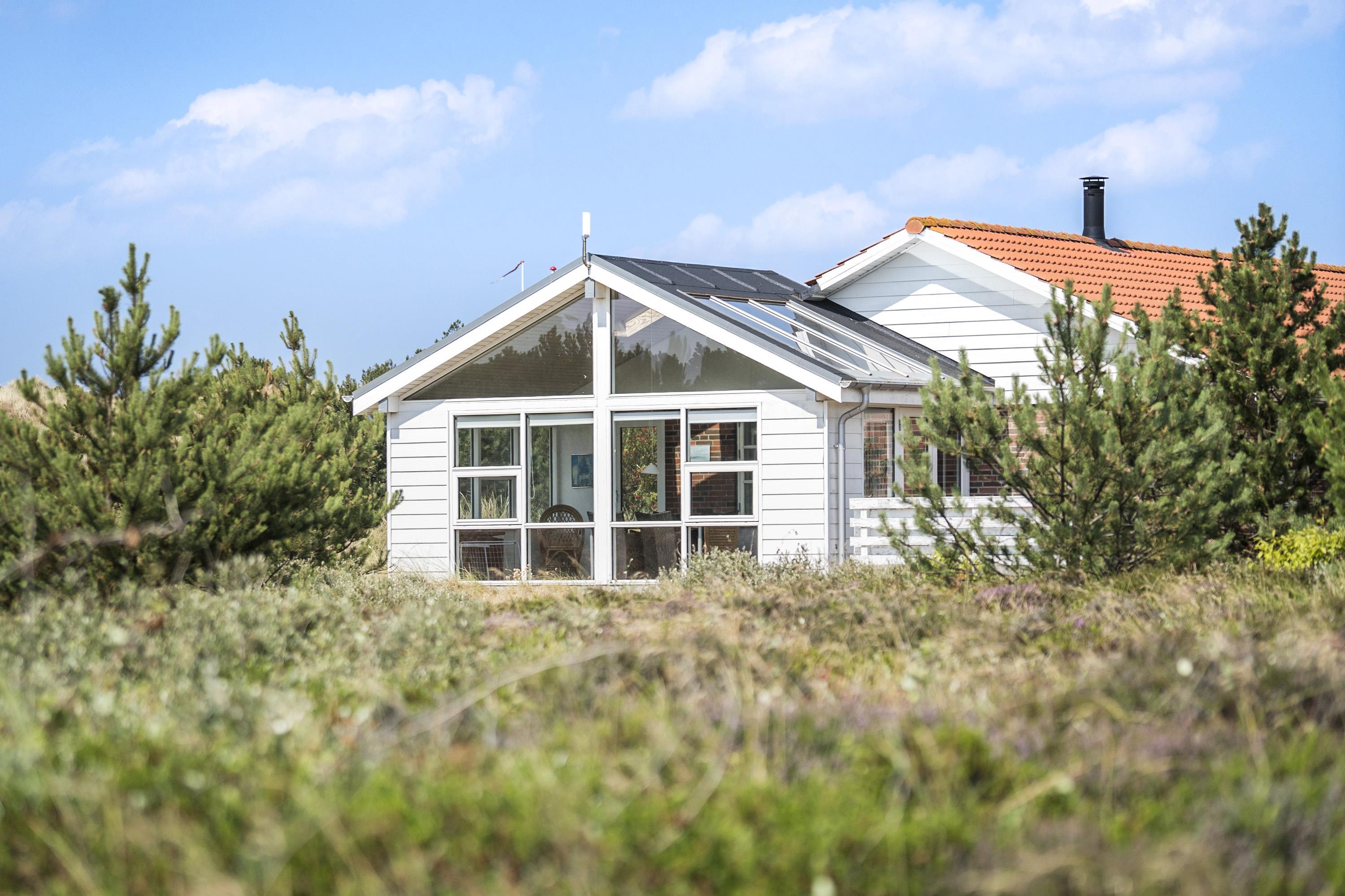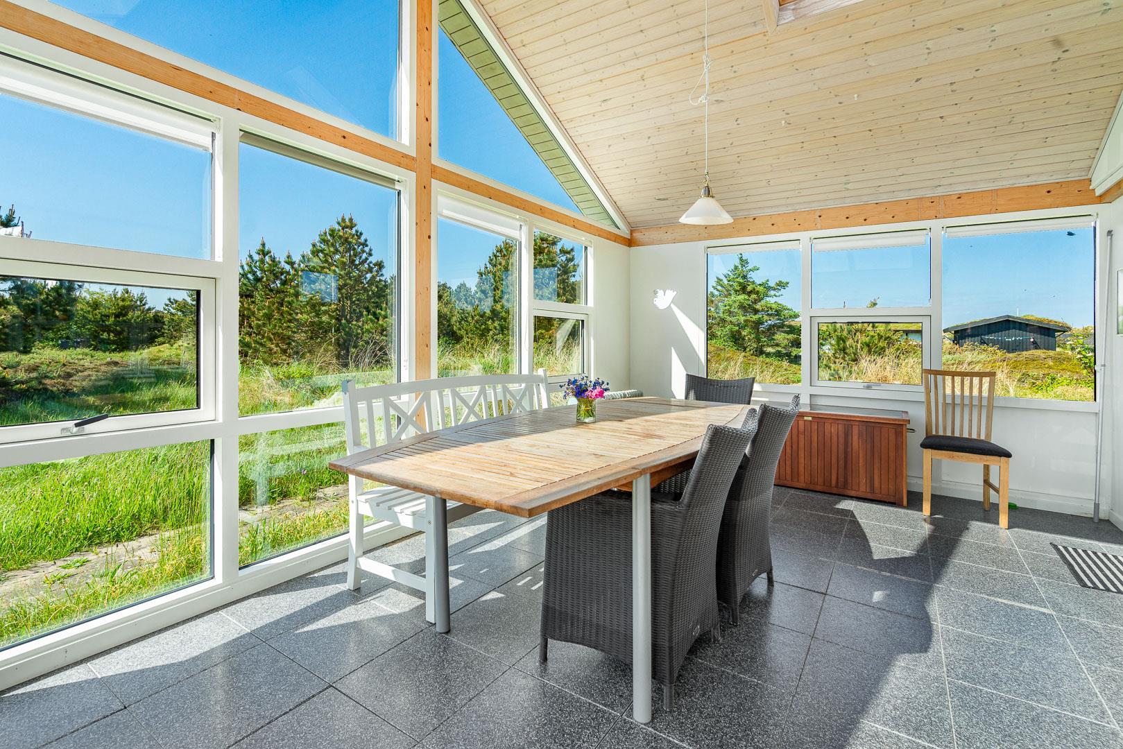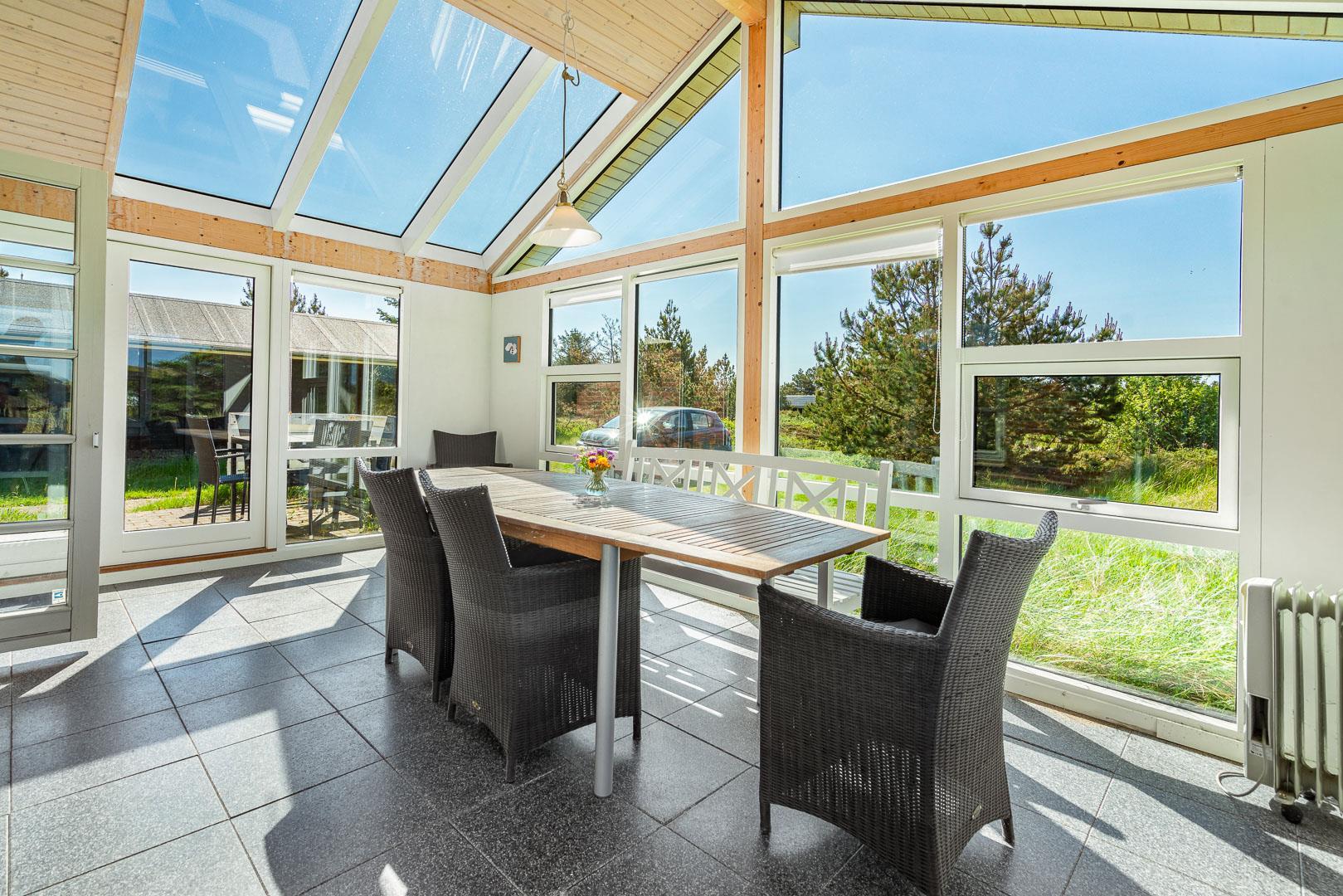 Fra stuen er der adgang til yderligere to soveværelser og udgang til en vidunderlig havestue, der kan benyttes året rundt. Her kan du nyde udsigten til den vilde natur og klitlandskabet i al slags vejr, mens lyset strømmer ind gennem de store vinduer.
