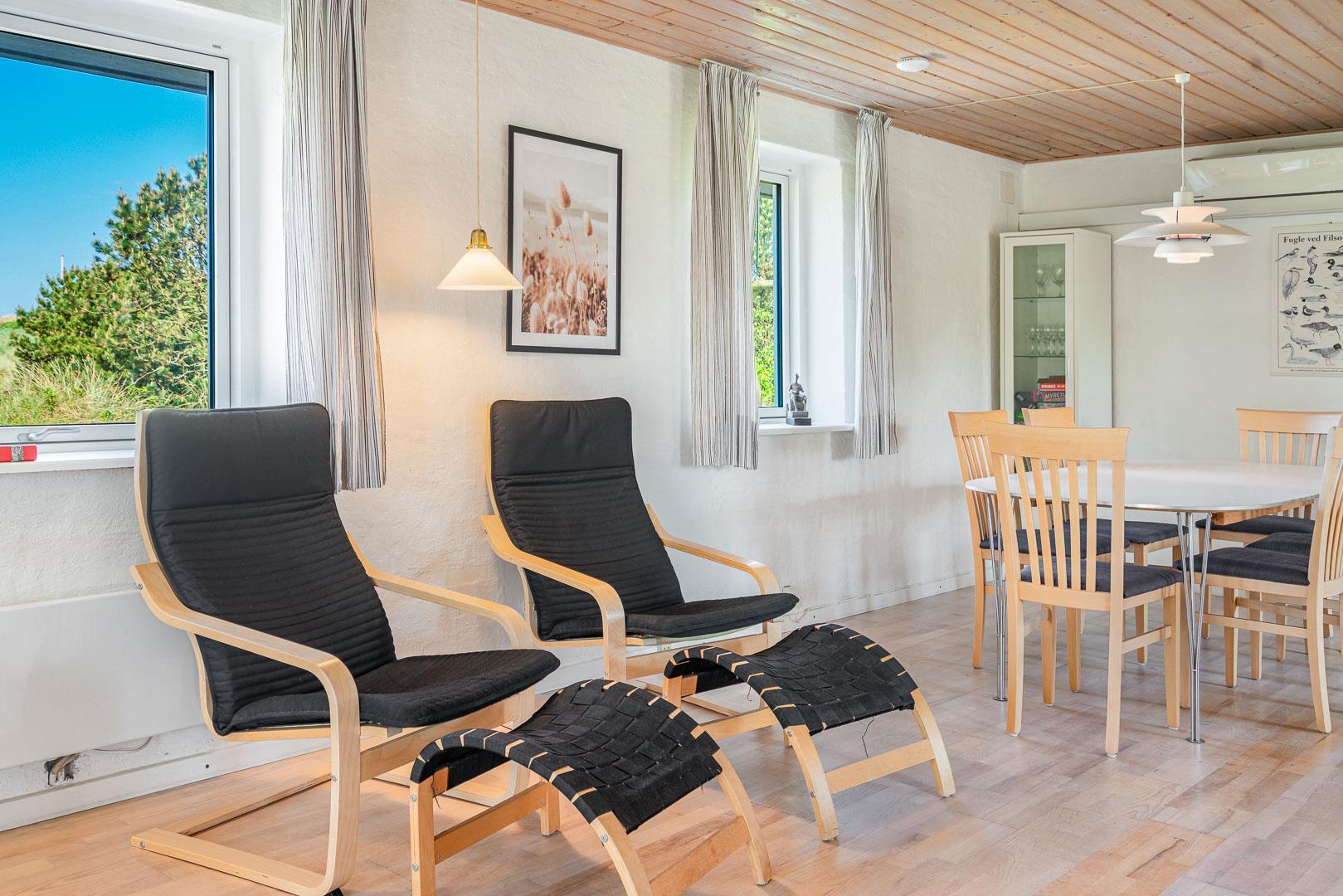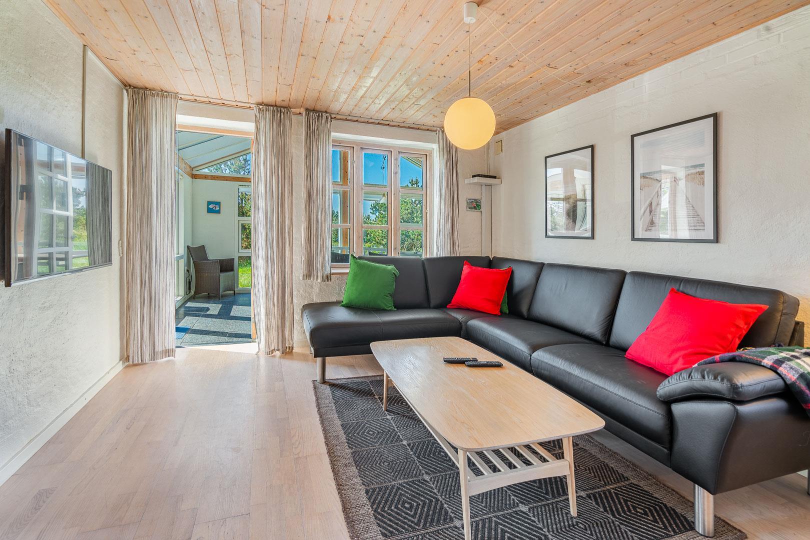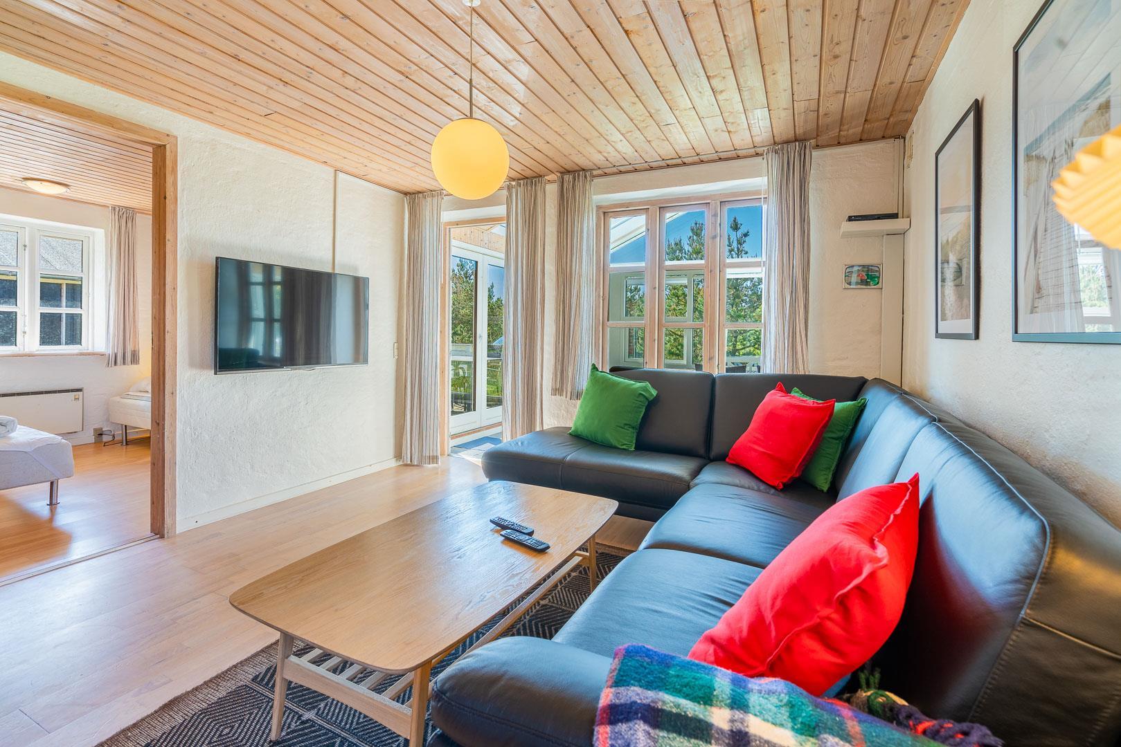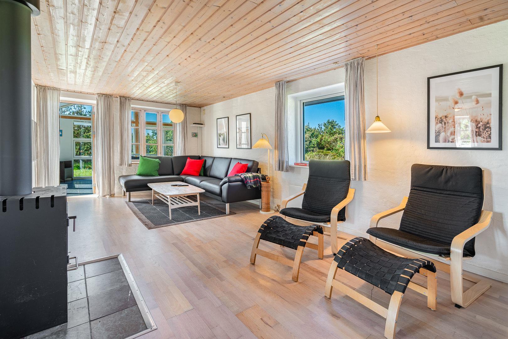 Fra stuen er der adgang til yderligere to soveværelser og udgang til en vidunderlig havestue, der kan benyttes året rundt. Her kan du nyde udsigten til den vilde natur og klitlandskabet i al slags vejr, mens lyset strømmer ind gennem de store vinduer.