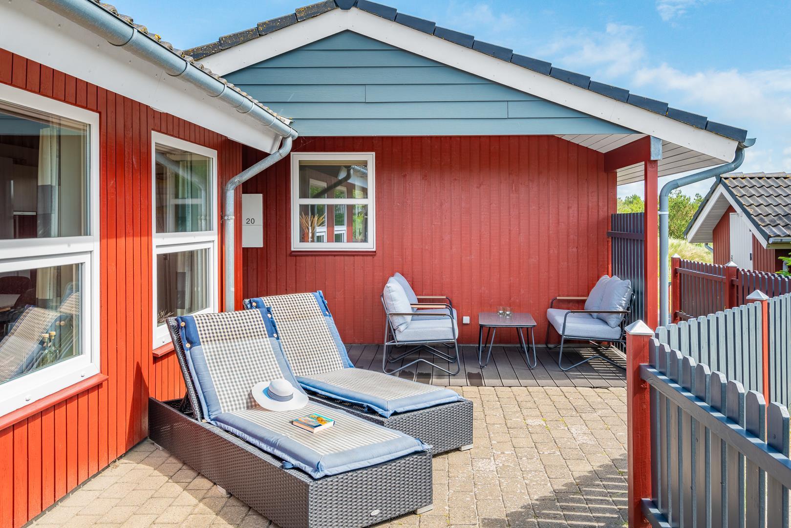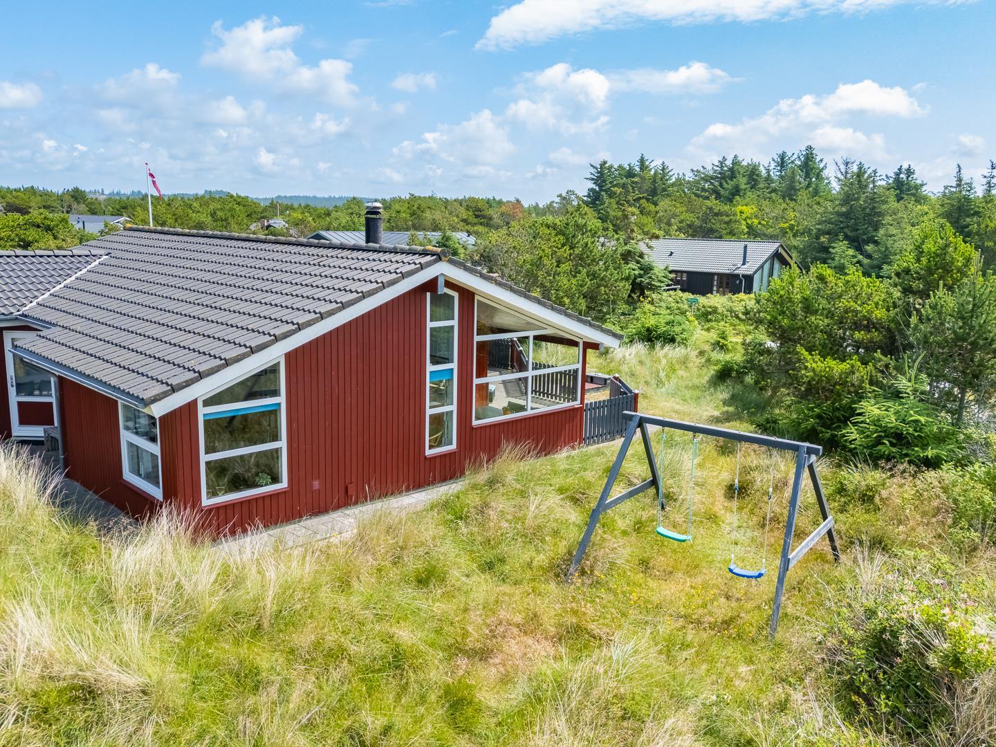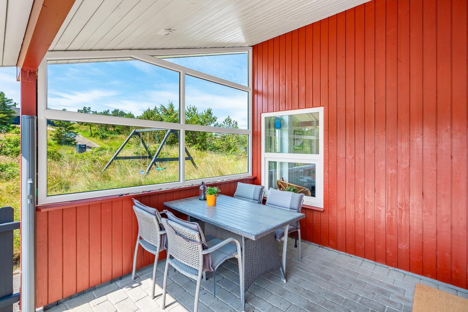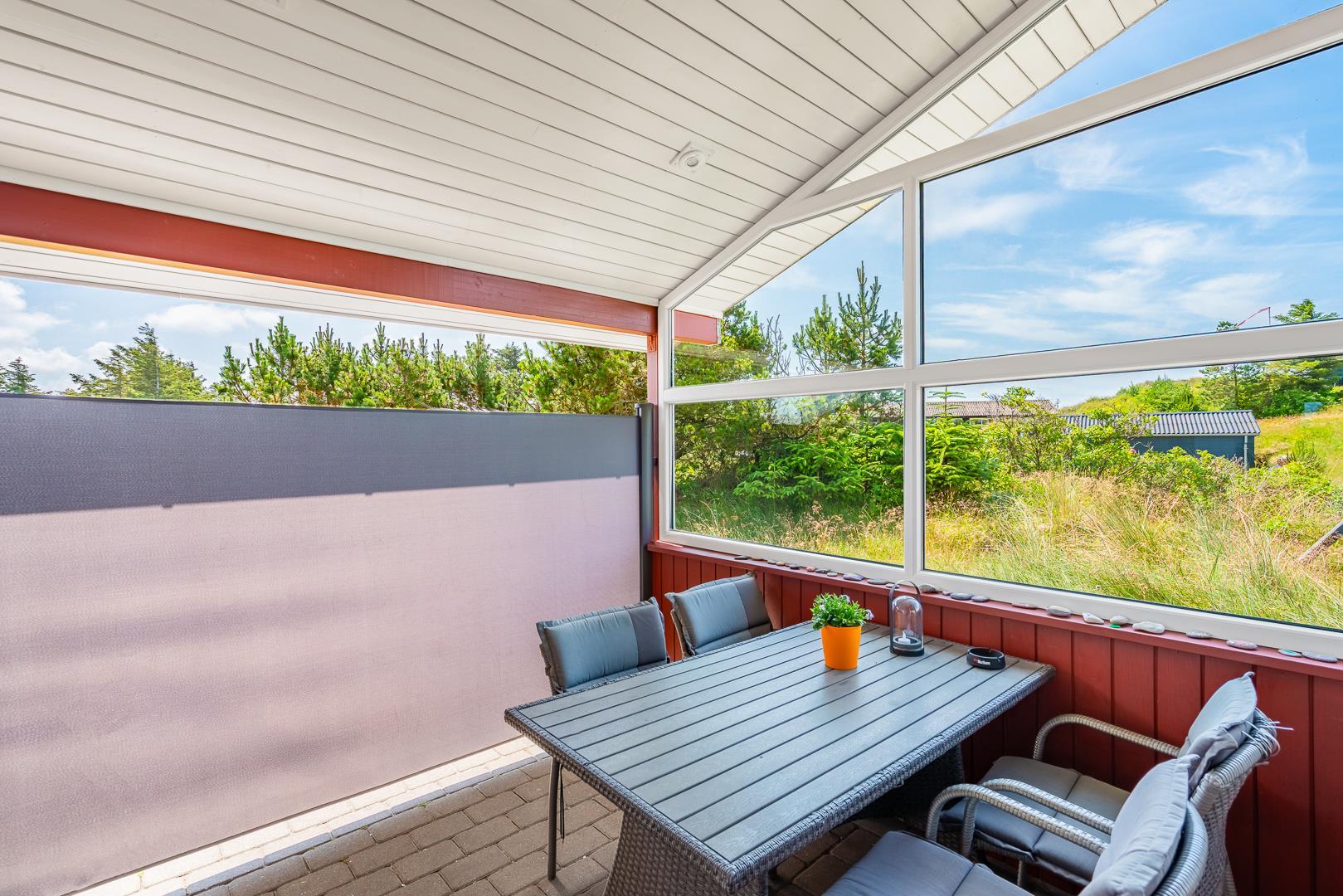 Hyggeligt feriehus på stor, ugeneret klitgrund tæt på Henne Strand med sauna og delvis overdækket terrasse.
