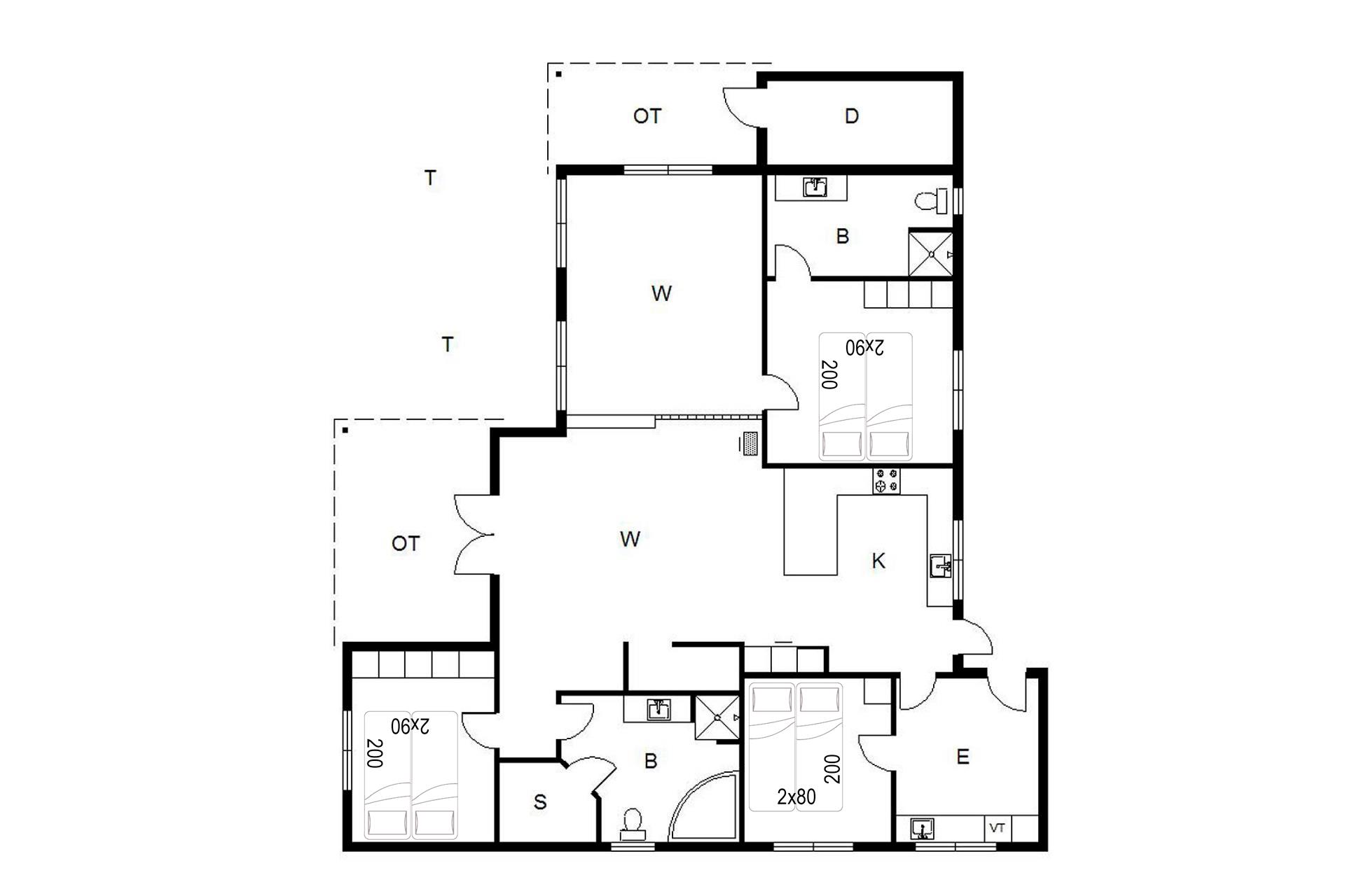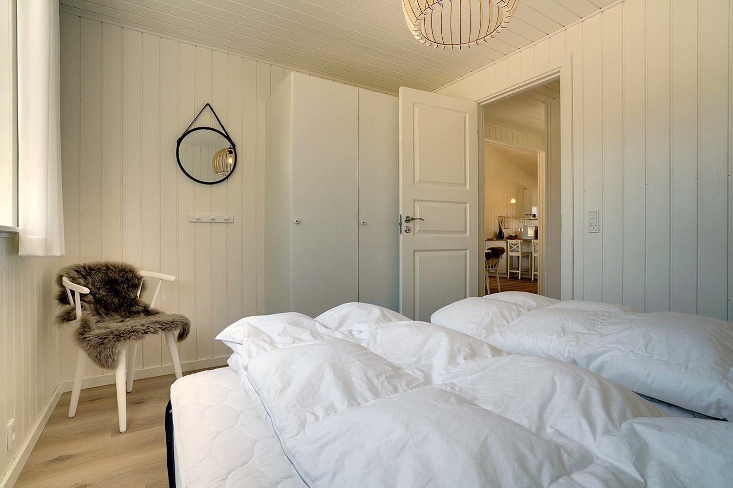 Sengestørrelser: 2 dobbeltsenge med 2 madrasser 90 x 200 cm + 1 dobbeltseng med 2 madrasser 80 x 200 cm.