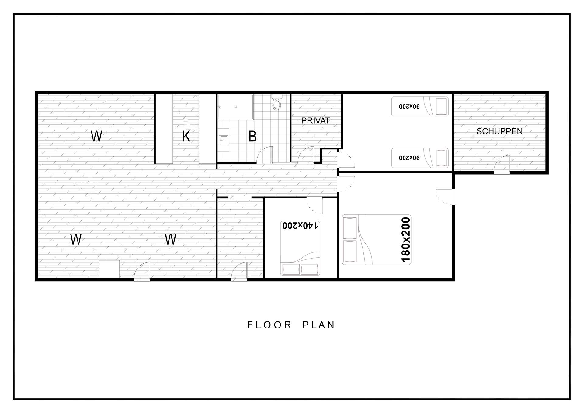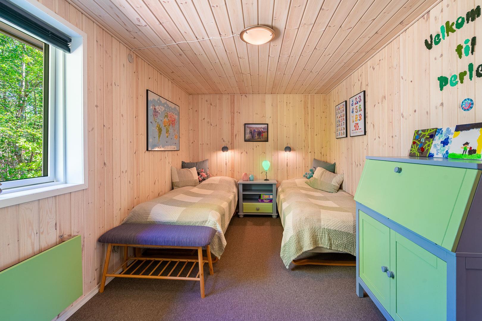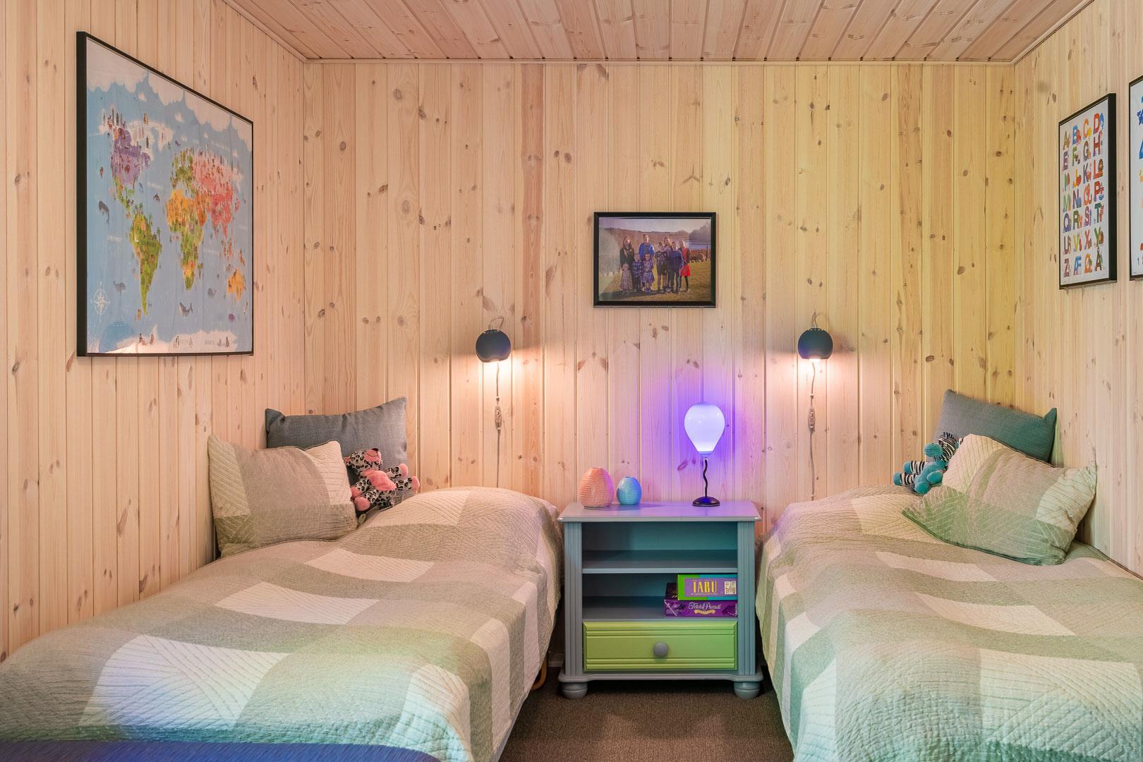 Sengestørrelse: 1 dobbeltseng 180 x 200 cm + 2 enkeltsenge 90 x 200 cm + 1 dobbeltseng 140 x 200 cm.