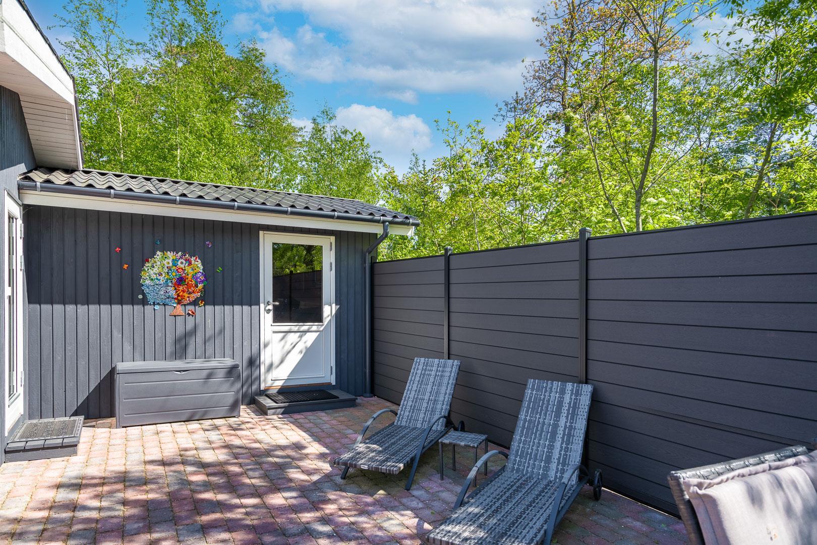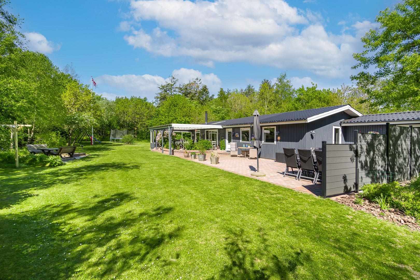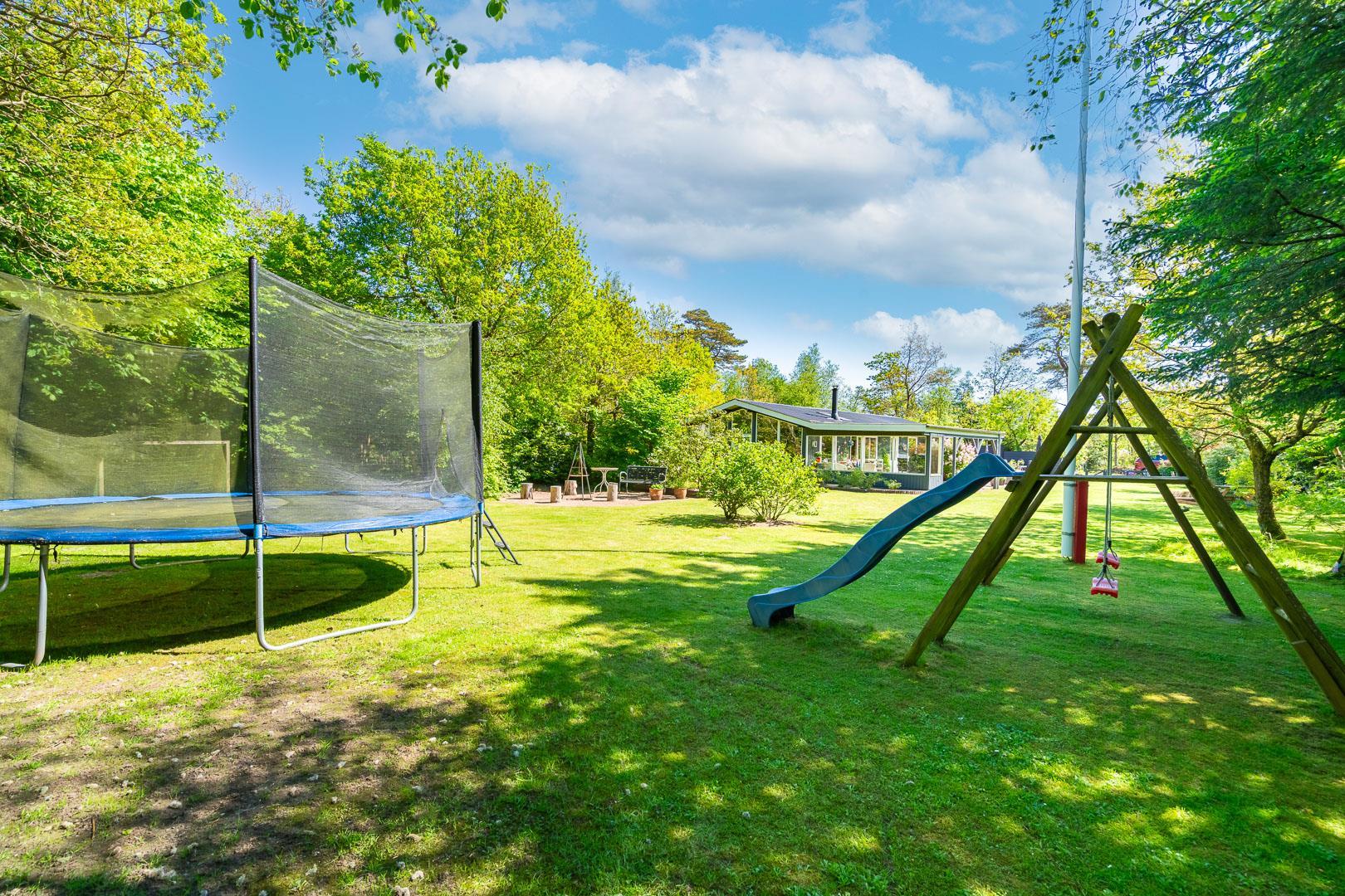 Udendørs er der noget for enhver smag, med en bred vifte af aktiviteter for både børn og voksne. Mens de voksne kan nyde livet på terrassen, kan børnene boltre sig på gyngestativet, trampolinen eller i sandkassen. Et bål sted tilbyder mulighed for hyggelige udendørs ferieoplevelser, og den delvist indhegnede grund gør det ideelt for firbenede familiemedlemmer.