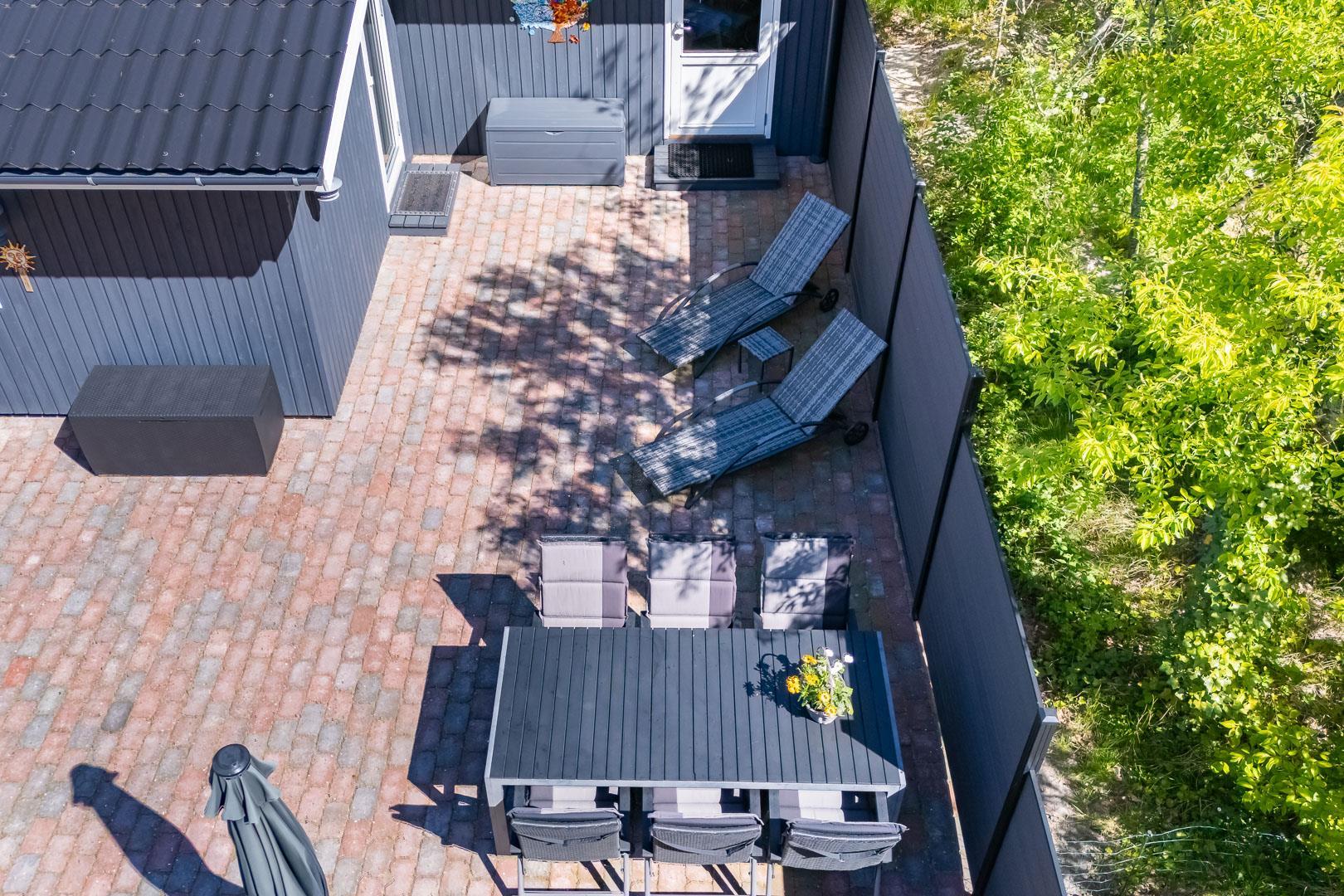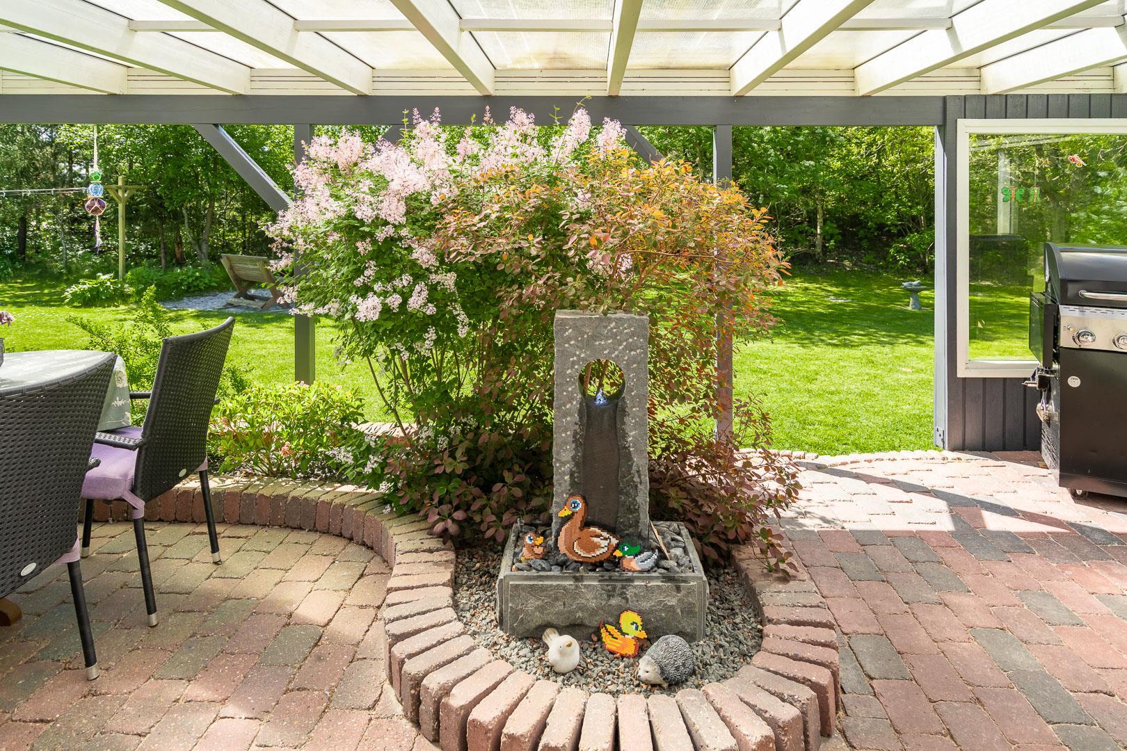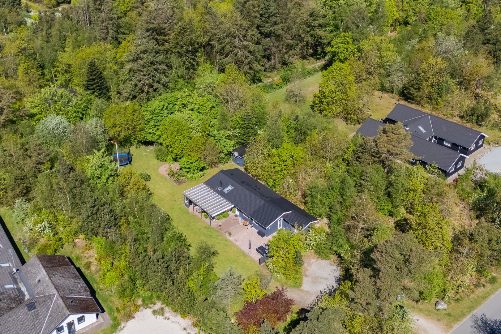 Udendørs er der noget for enhver smag, med en bred vifte af aktiviteter for både børn og voksne. Mens de voksne kan nyde livet på terrassen, kan børnene boltre sig på gyngestativet, trampolinen eller i sandkassen. Et bål sted tilbyder mulighed for hyggelige udendørs ferieoplevelser, og den delvist indhegnede grund gør det ideelt for firbenede familiemedlemmer.