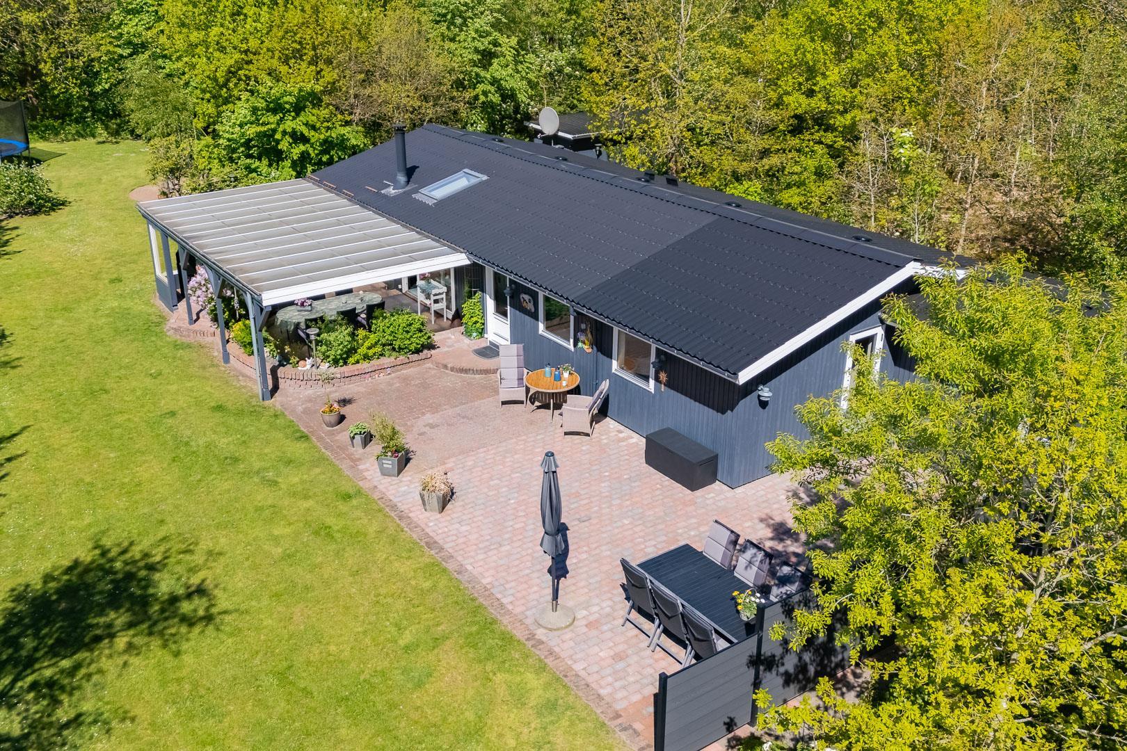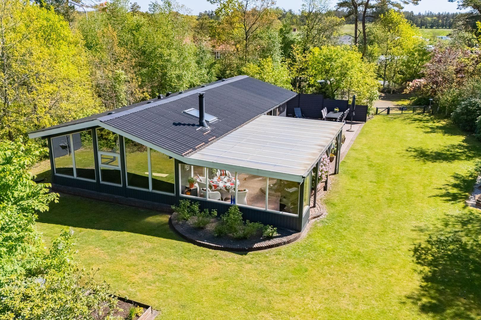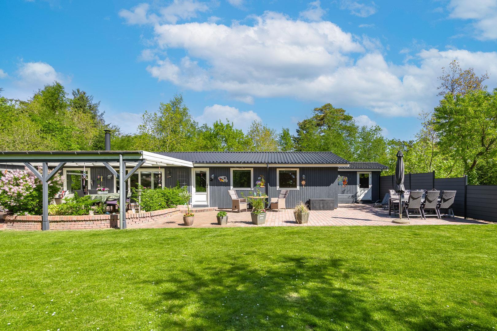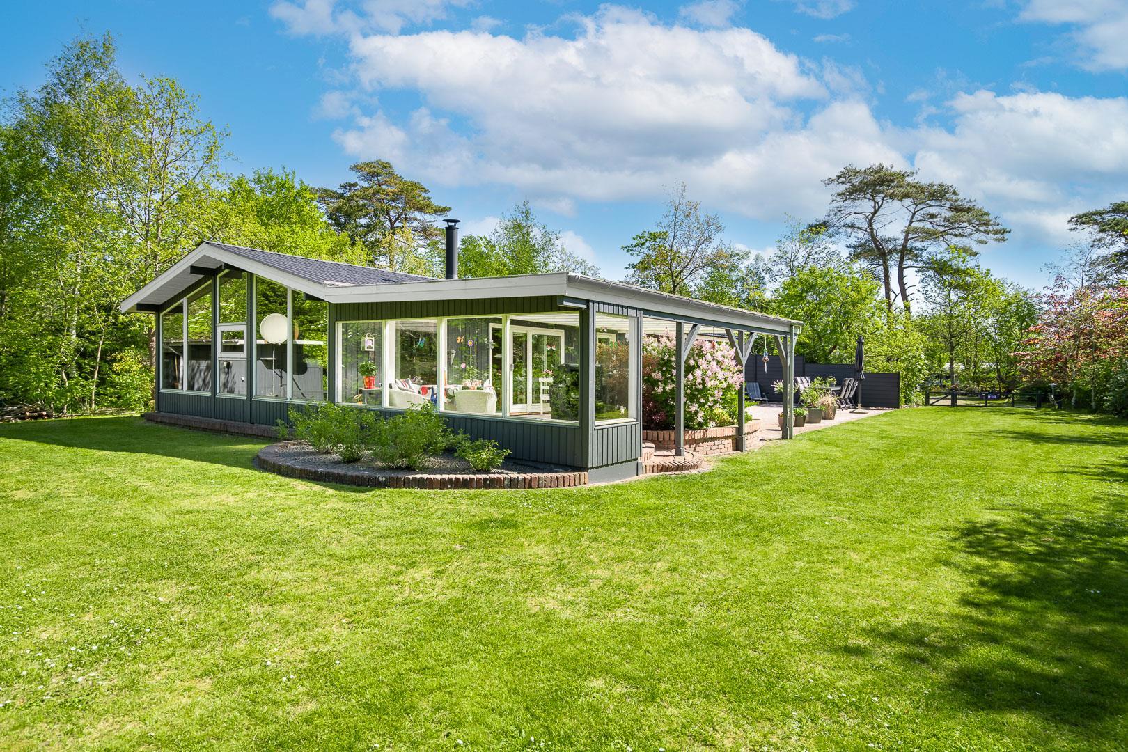 Dette skønne sommerhus er perfekt placeret på en eftertragtet grund, omgivet af træer og diskret placeret væk fra vejen, hvilket giver dig mulighed for at nyde din ferie i fuldstændig fred og ro.