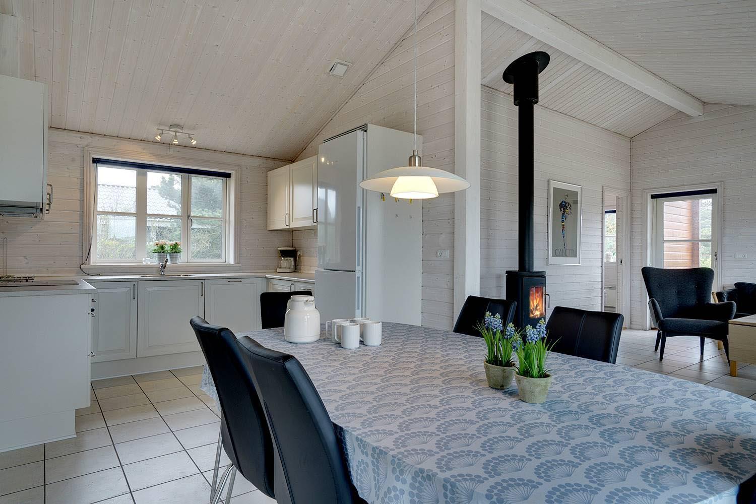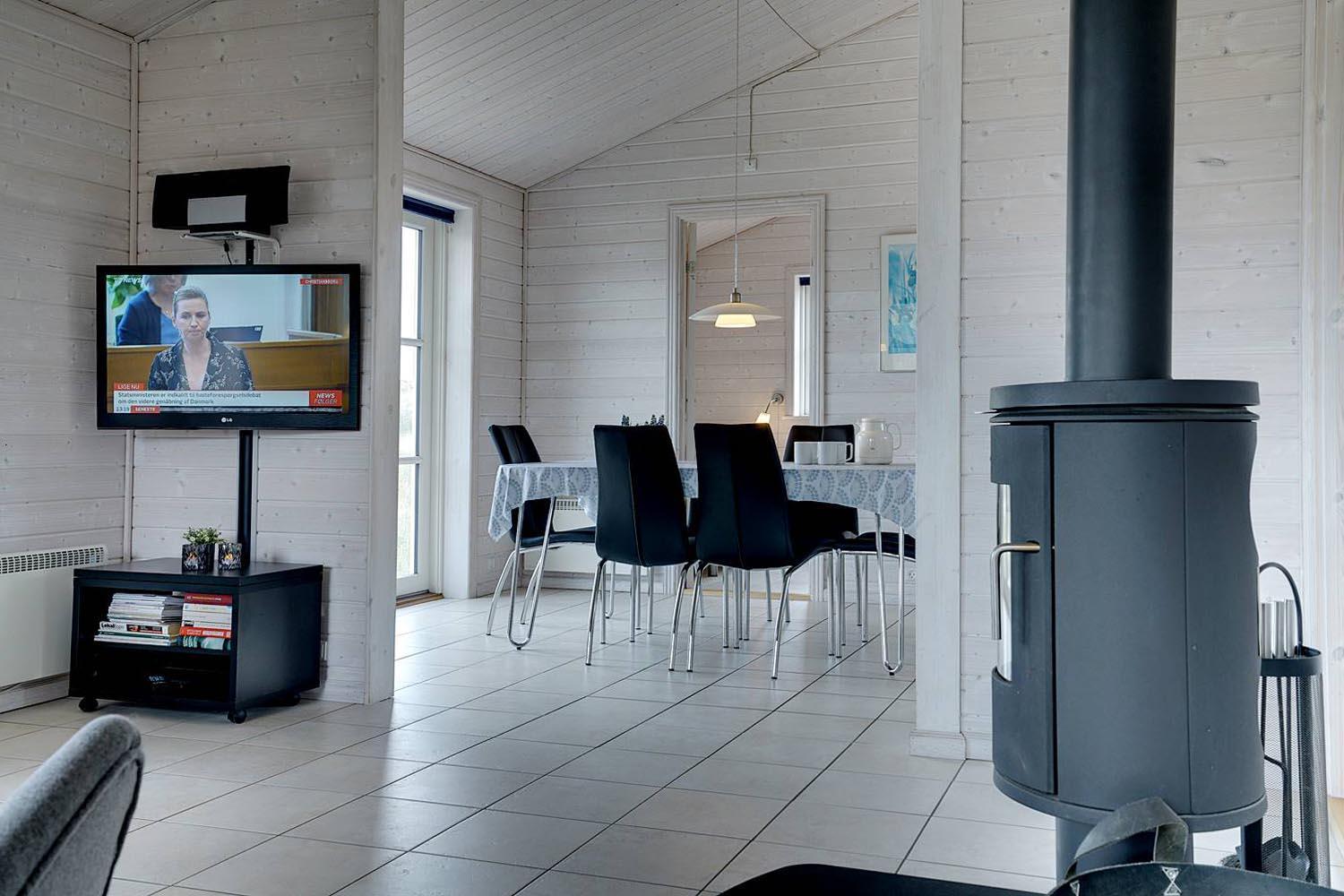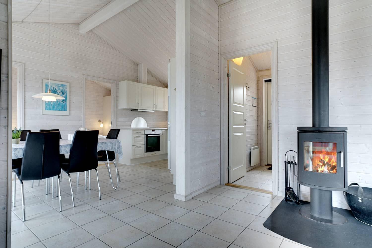 I feriehuset finder du et charmerende køkken/alrum, der smelter sammen med den hyggelige stue, og som kan give dig nogle uforglemmelige familiestunder og gastronomiske eventyr. Den knitrende brændeovn skaber en varm og indbydende atmosfære, der indbyder til afslapning og hygge i de sene aftentimer.