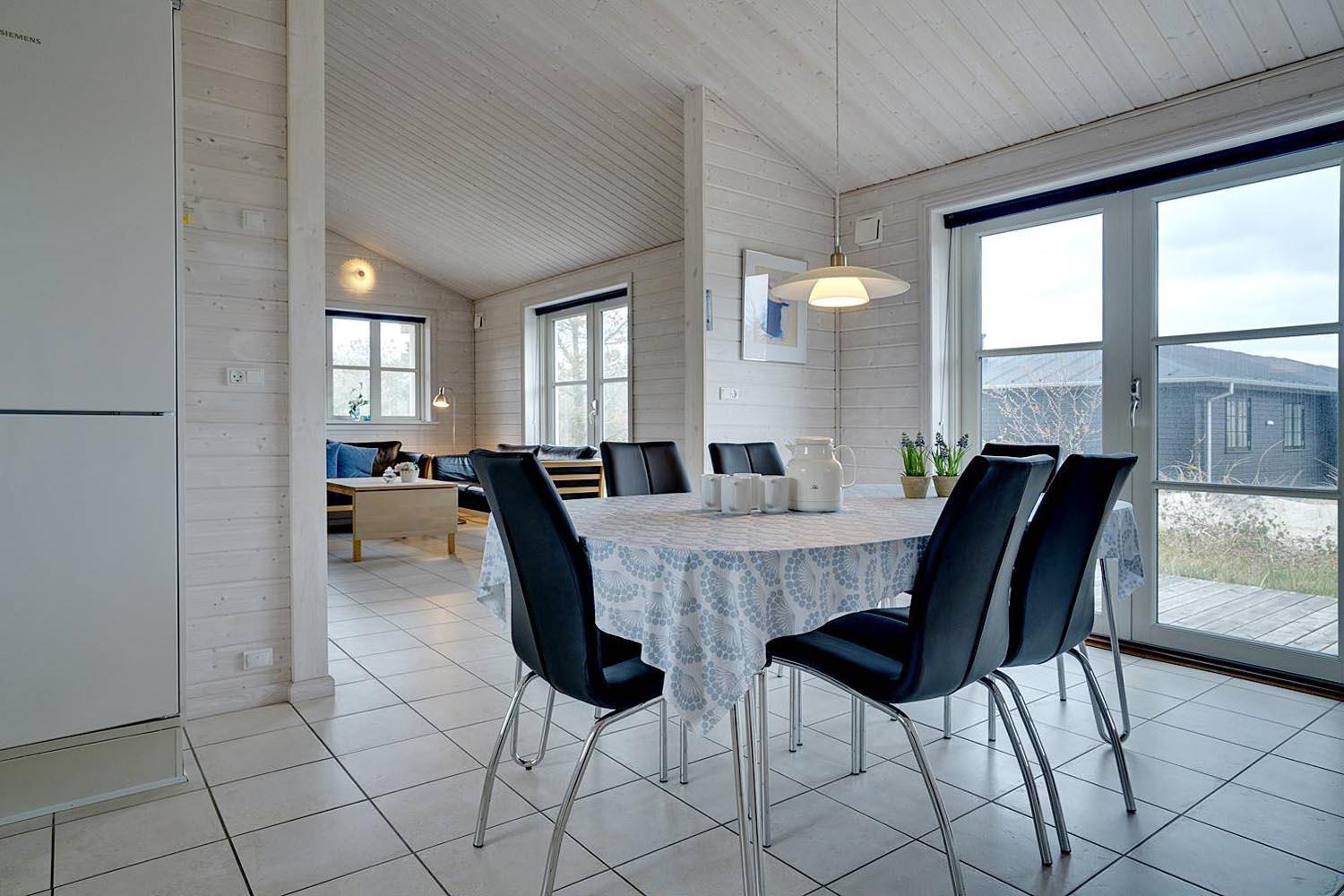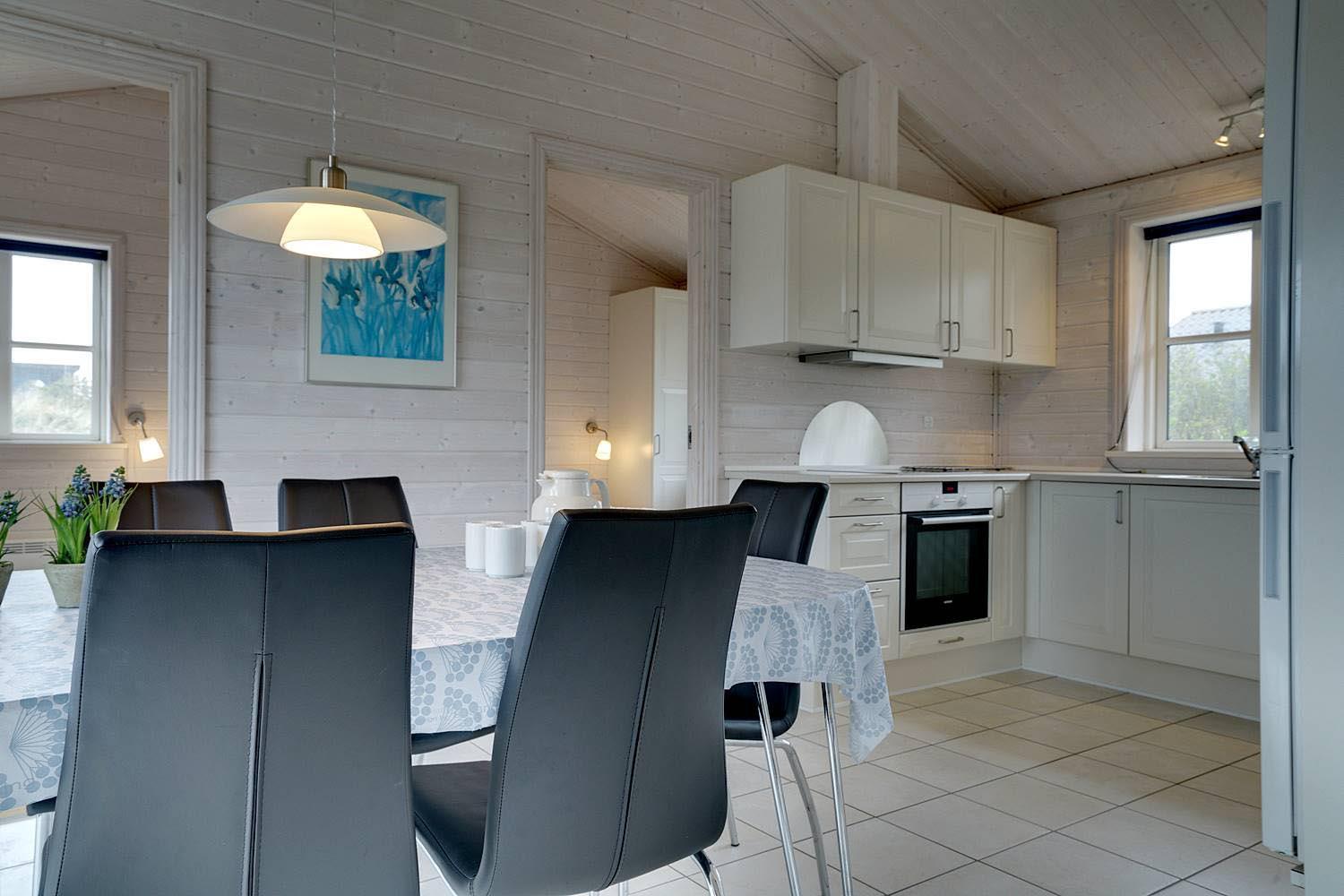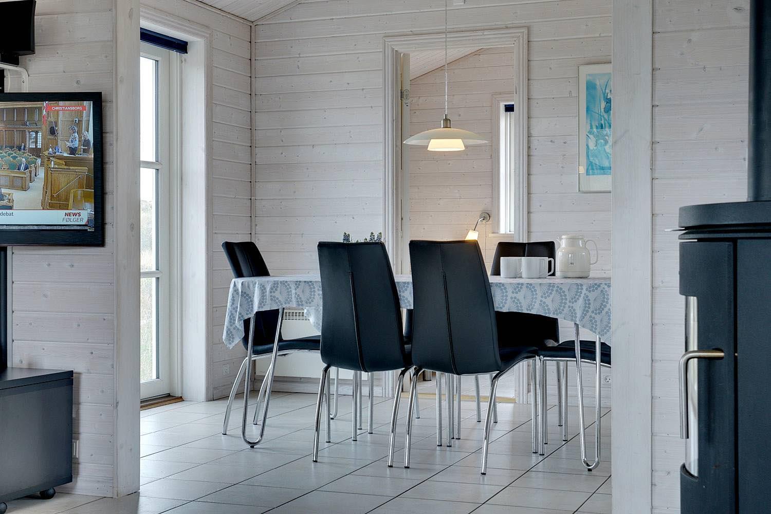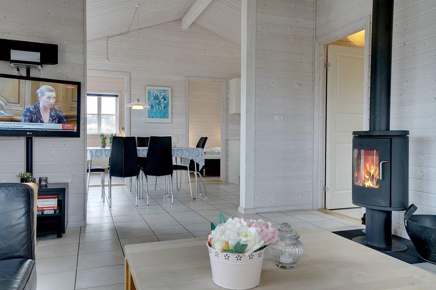 I feriehuset finder du et charmerende køkken/alrum, der smelter sammen med den hyggelige stue, og som kan give dig nogle uforglemmelige familiestunder og gastronomiske eventyr. Den knitrende brændeovn skaber en varm og indbydende atmosfære, der indbyder til afslapning og hygge i de sene aftentimer.