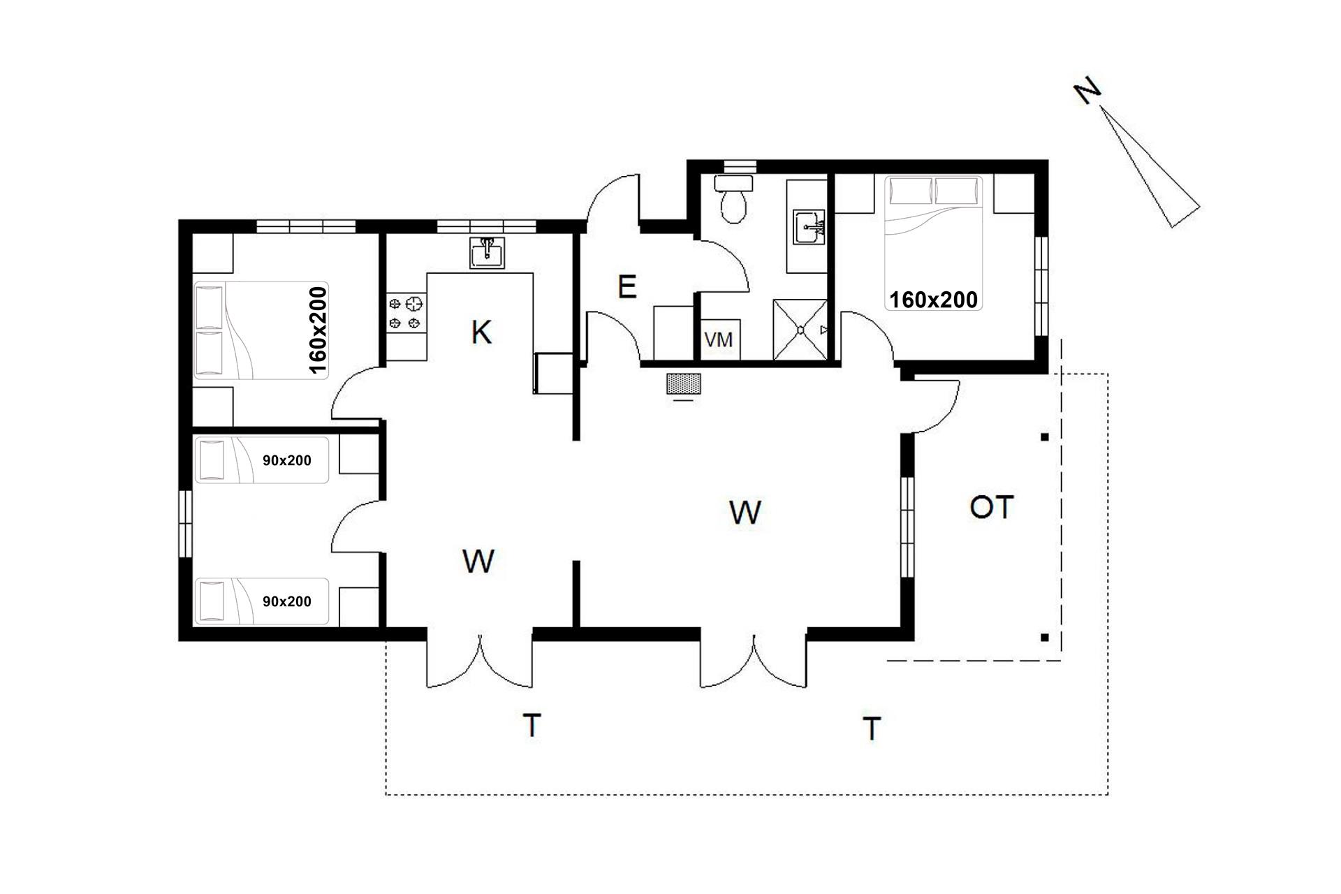 Sengestørrelse: 2 dobbeltsenge 160 x 200 cm + 2 enkeltsenge 90 x 200 cm.