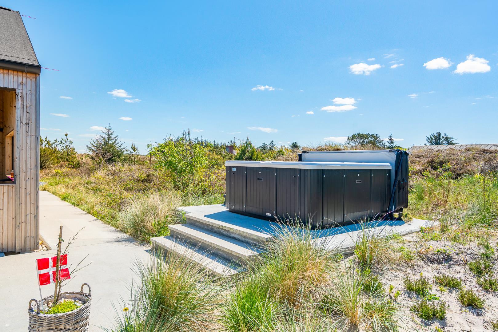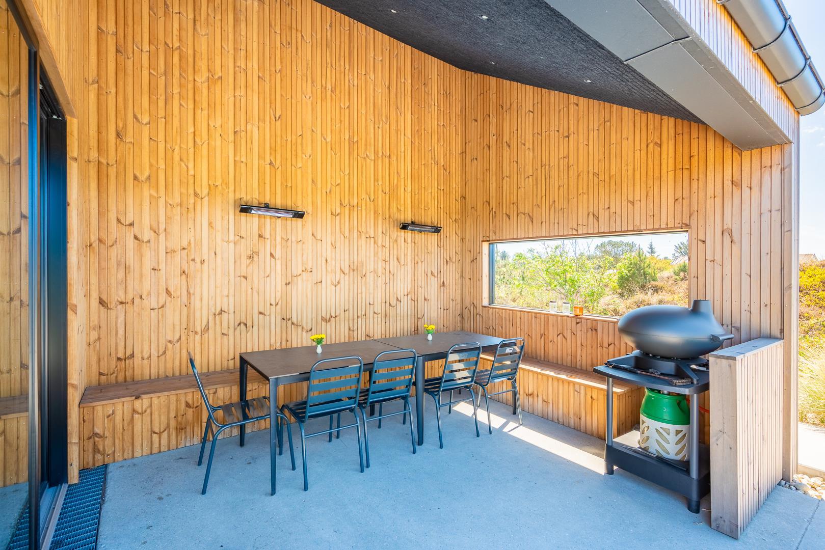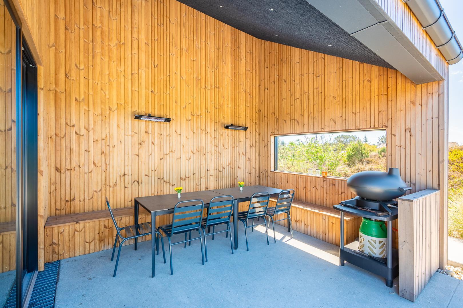 Kun 900 meter adskiller jer fra den brede sandstrand i Henne Strand, hvor I kan bade, gå ture og nyde solnedgangen. Indkøbsmuligheder ligger kun 500 meter væk, så I hurtigt kan hente friskbagt morgenbrød eller alt, hvad I behøver, til en hyggelig grillaften på terrassen.