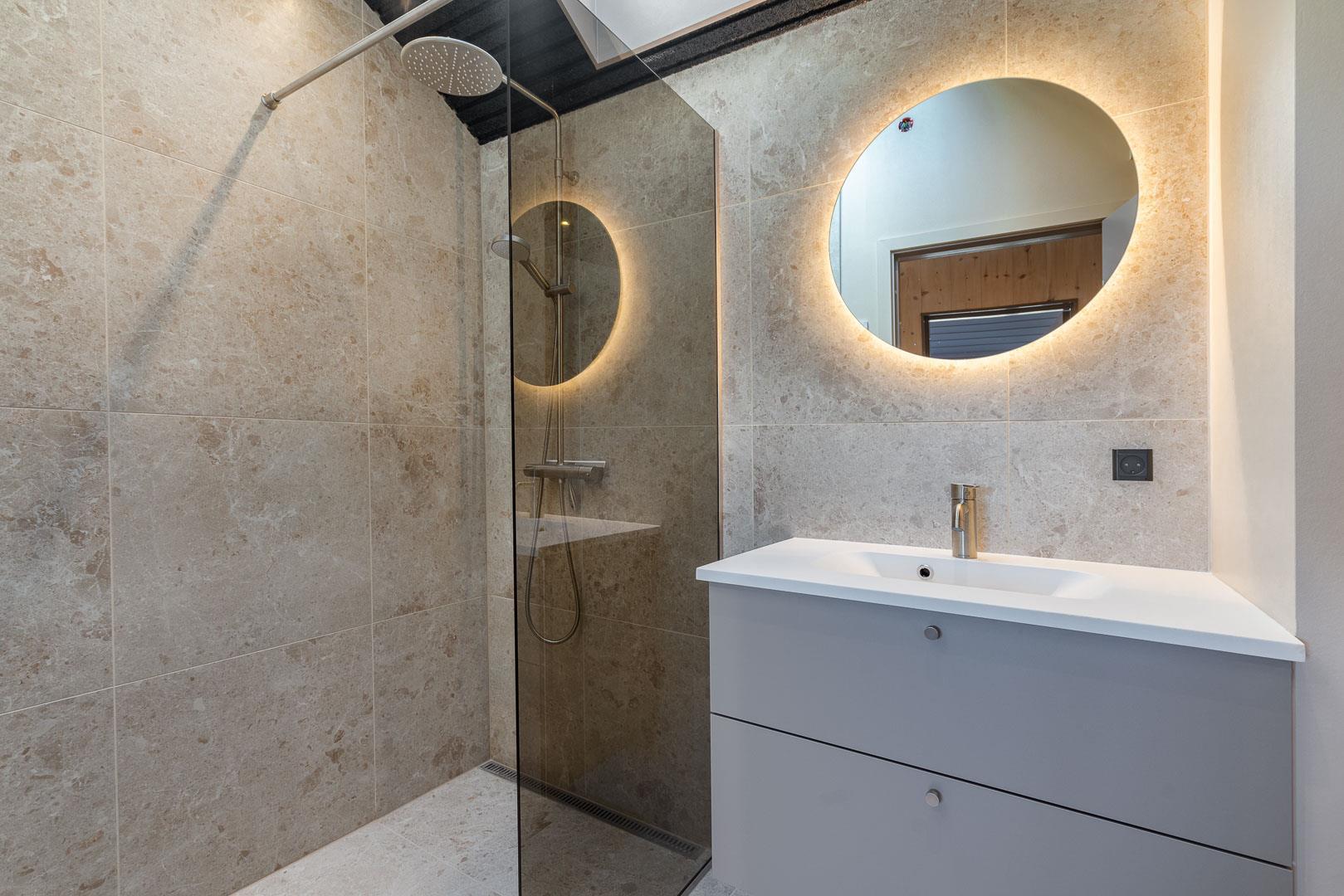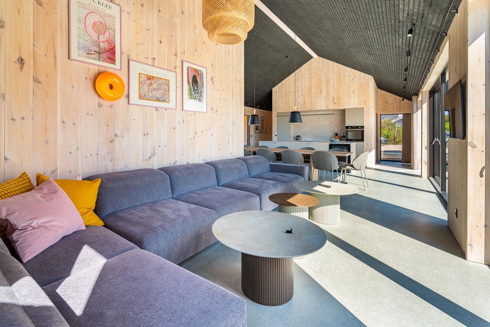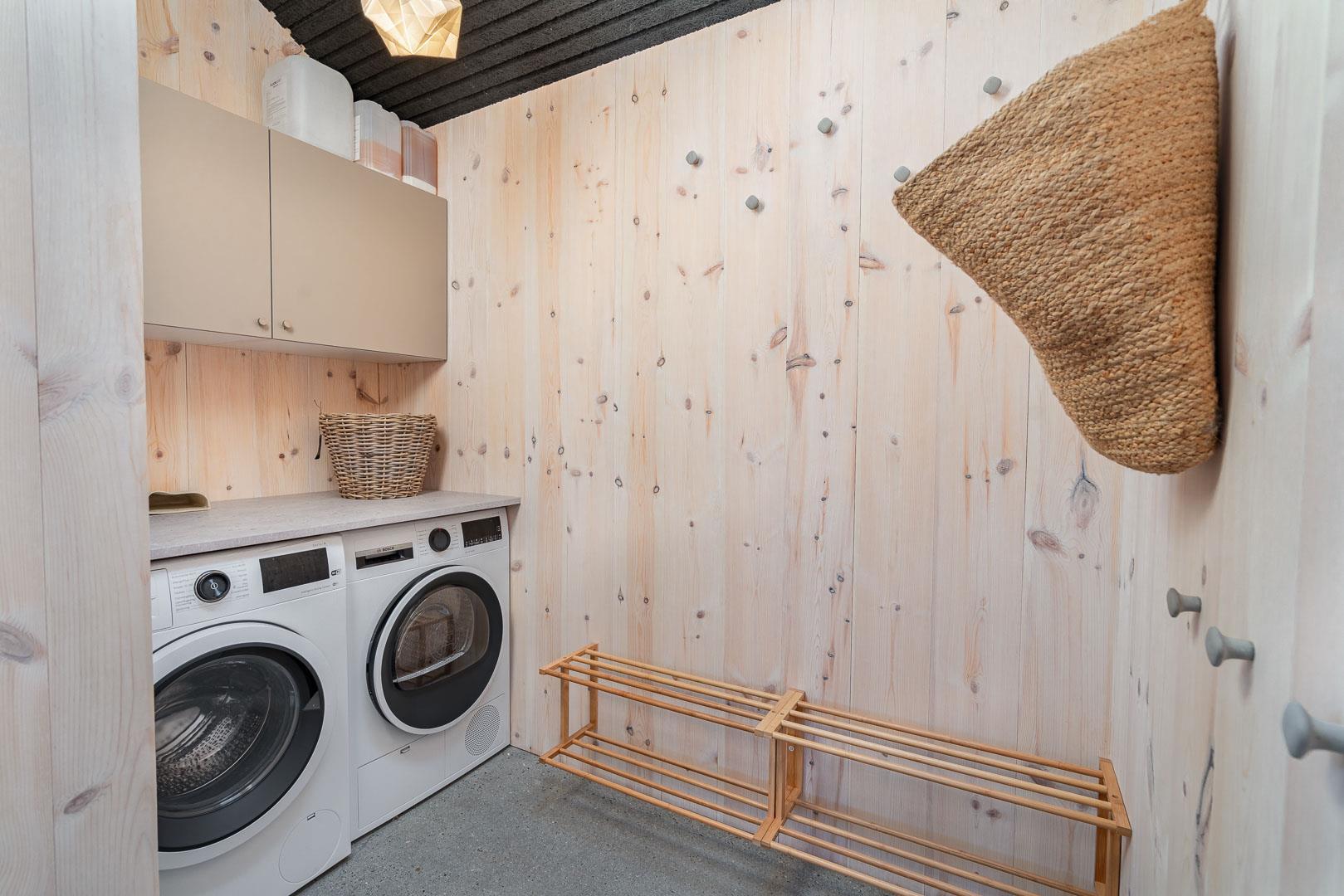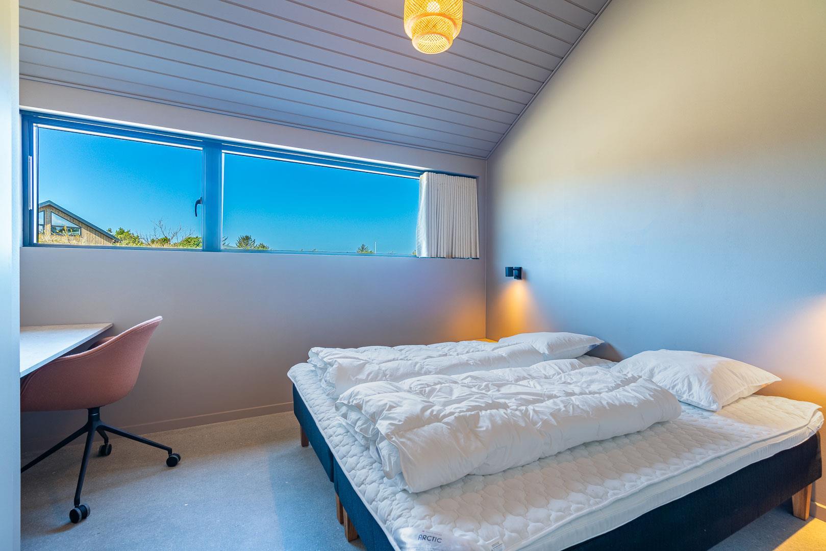 Stuen har gulvvarme og bløde møbler, og det moderne køkken er indrettet med god plads og alt, hvad I behøver til feriemaden. De fem soveværelser byder på ro og komfort, og de to flotte badeværelser har både gulvvarme og bruseniche. Der findes desuden både vaskemaskine og tørretumbler – praktisk ved længere ophold.