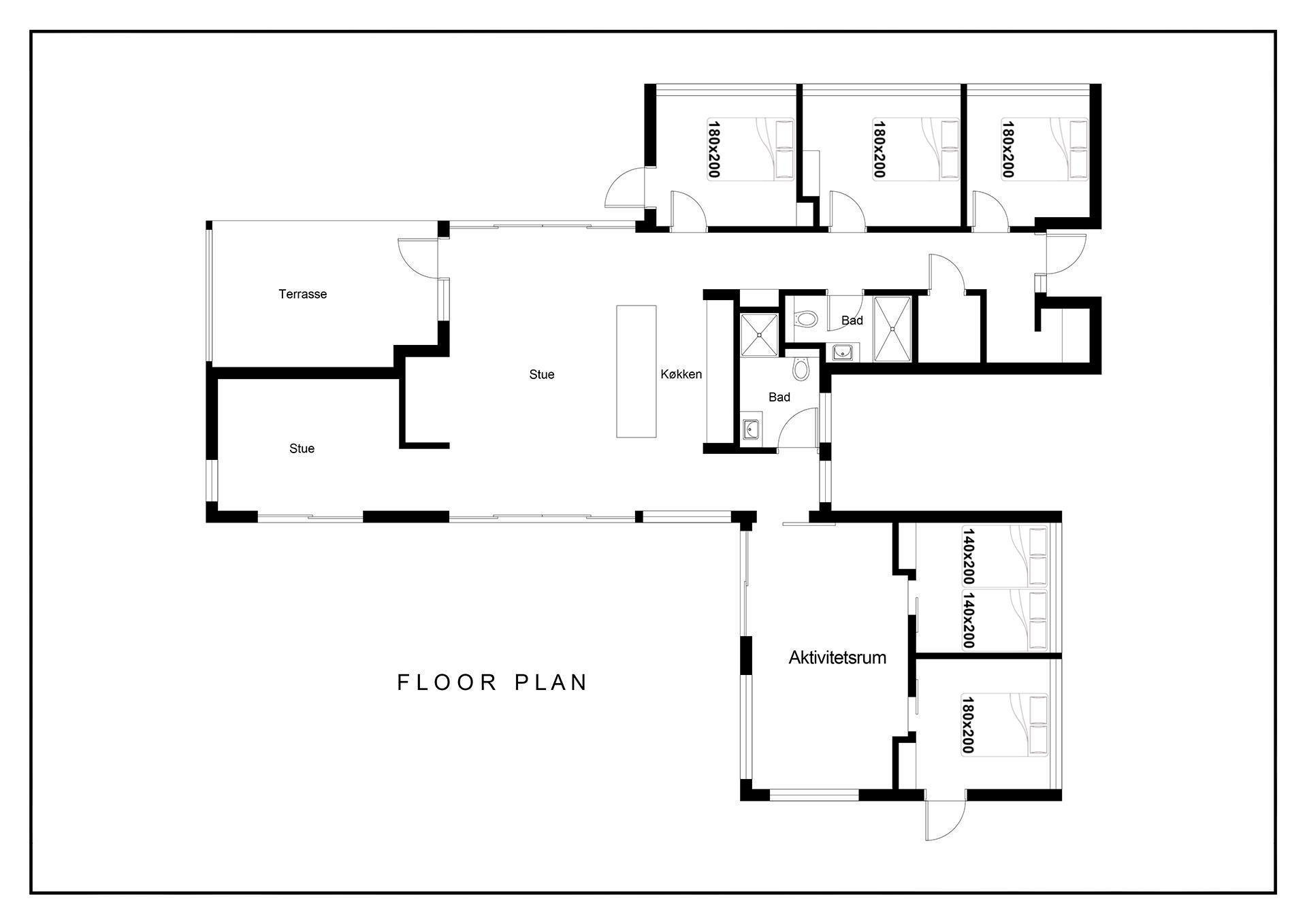 Sengestørrelse: 1 dobbeltseng med 2 madrasser á 140x200 cm + 4 dobbeltsenge á 180x200 cm.
