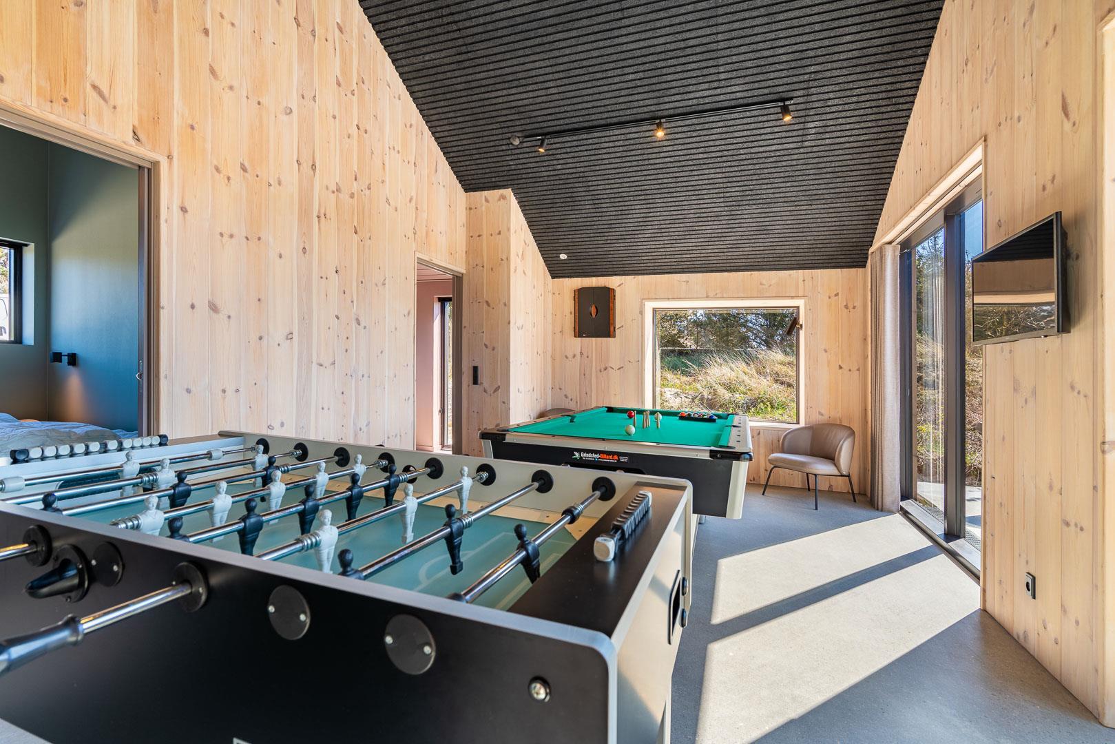 Ferien bliver aldrig kedelig her. I aktivitetsrummet kan I dyste i billard, bordtennis, bordfodbold og dart – perfekt til både børn og voksne. Efter en aktiv dag kan I slappe af i den udendørs spa, mens børnene leger på trampolinen, og aftensmaden kan I sammen tilberede på den delvist overdækkede terrasse.