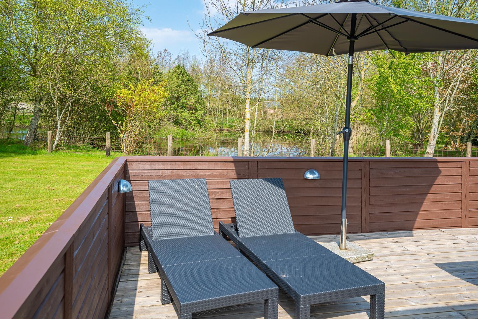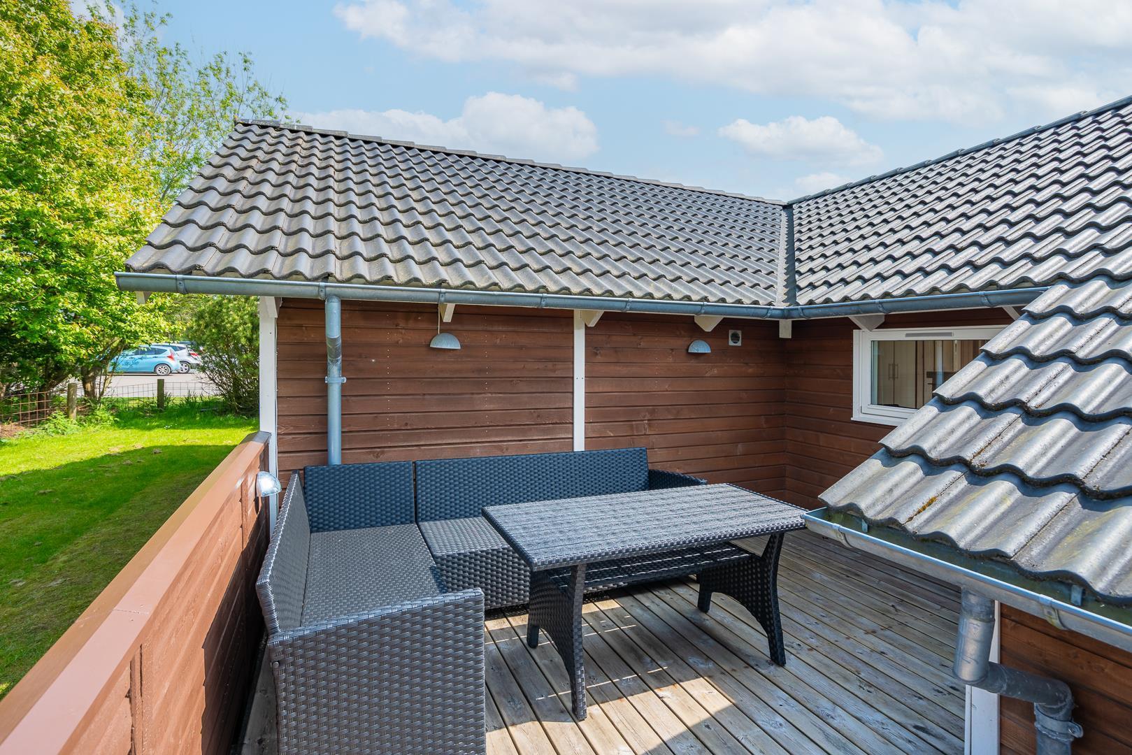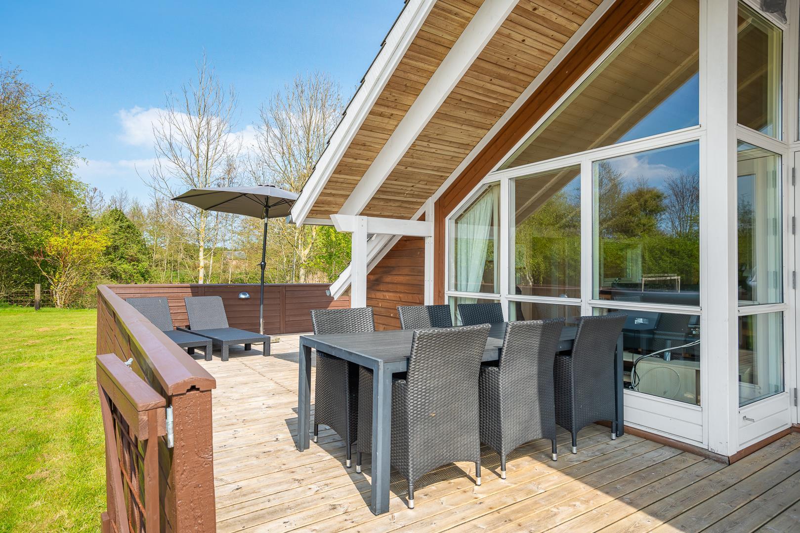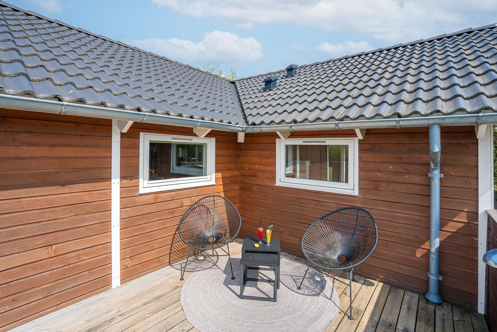 Lykkebo står der med sirlige bogstaver på et skilt, som pryder husets træbeklædte facade, og det navn er velvalgt, for det er svært at forestille sig en ferie her, der ikke byder på momenter af lykke: Lykke i form af en velgrillet bøf på terrassen en lun sommeraften. Lykke i form af det perfekte, snorlige drive på golfbanen. Eller lykke i form af børnenes latter, når de laver skruehop på trampolinen i haven.