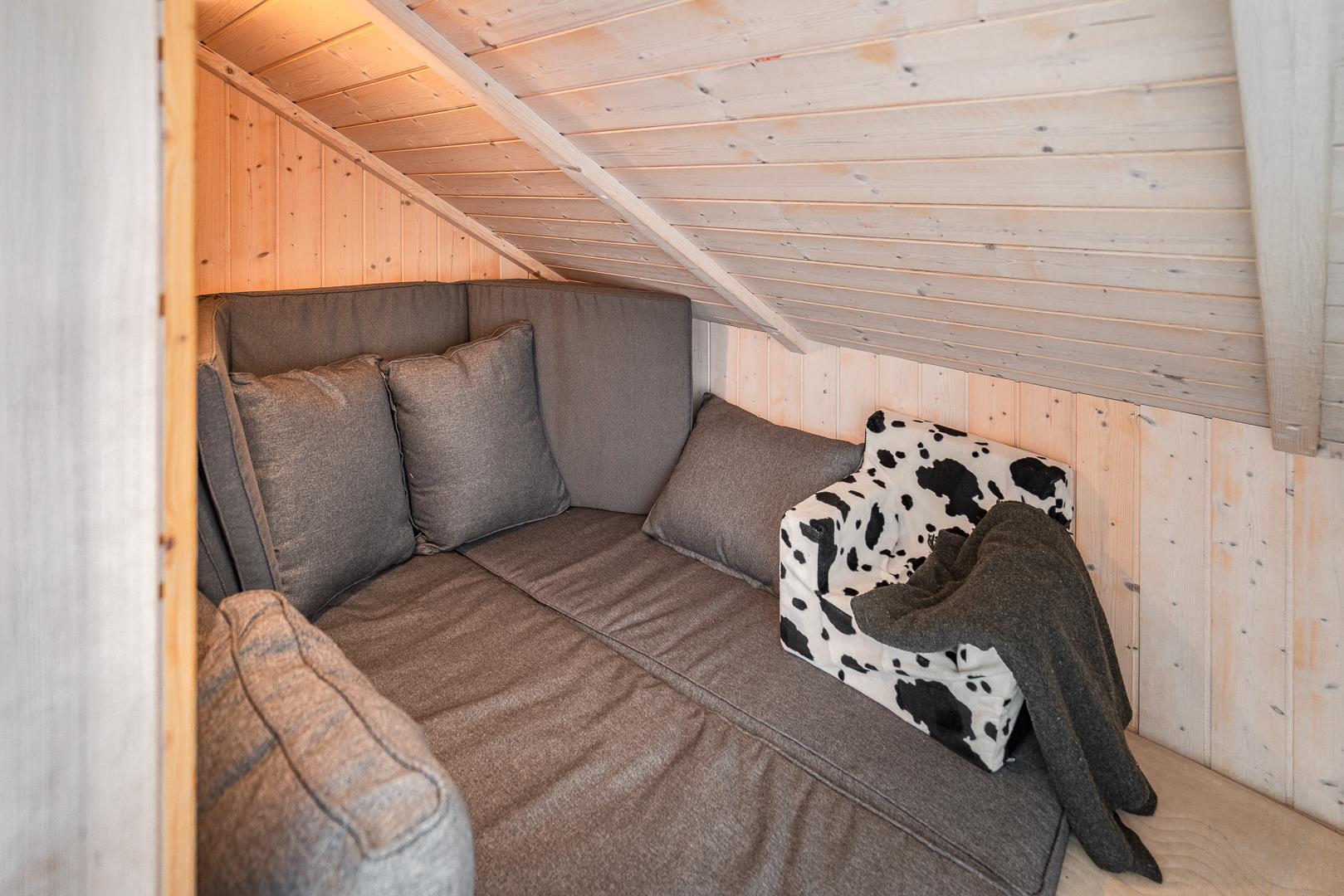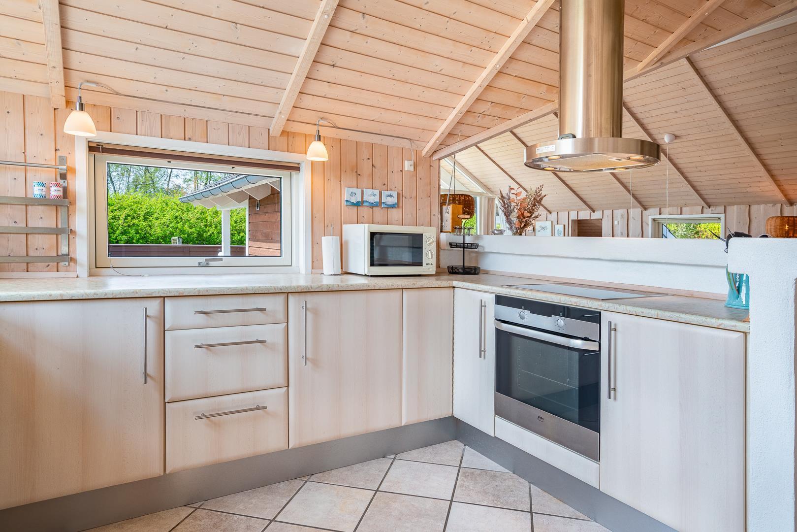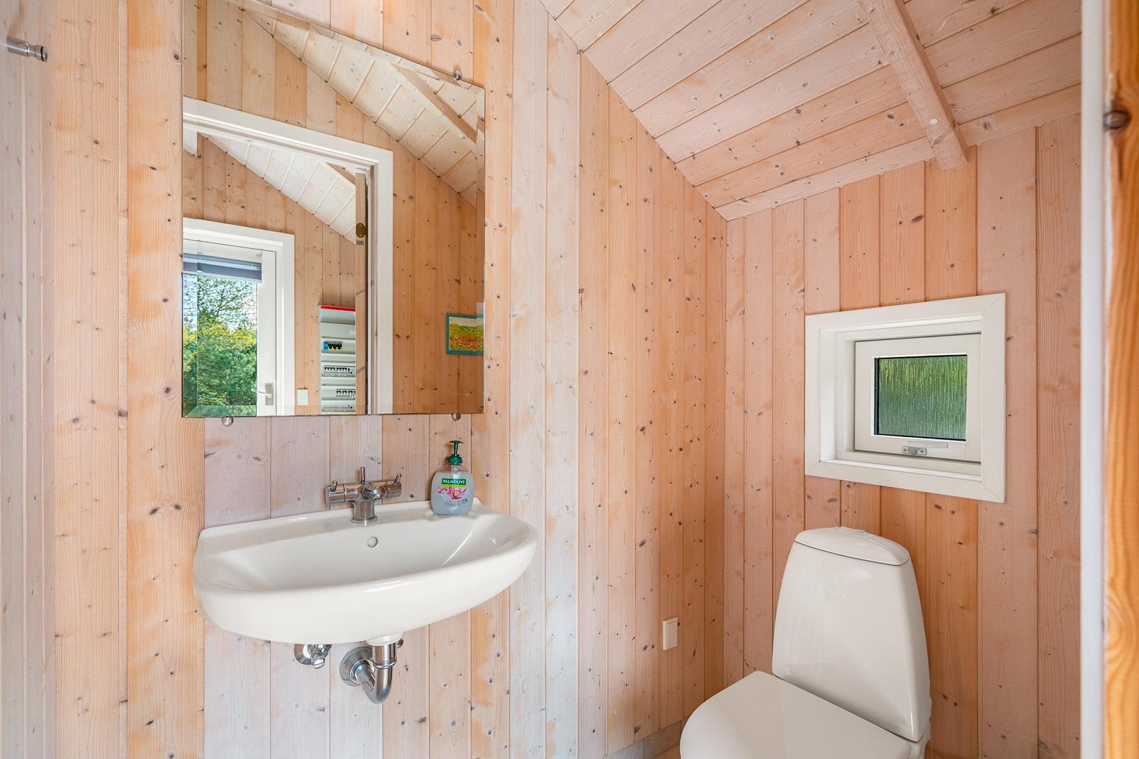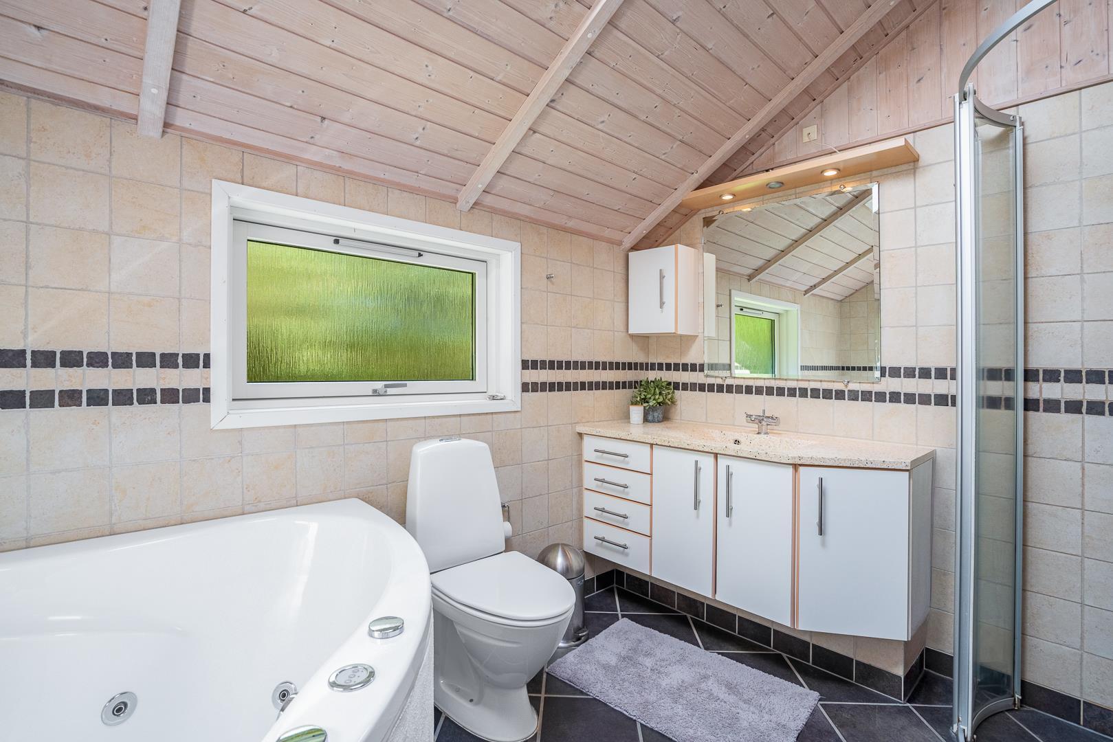 Huset byder blandt andet på brændeovn, vaskefaciliteter, centralstøvsuger og gratis Wi-Fi, og det har har i alt syv sovepladser fordelt på tre soveværelser to med dobbeltsenge, et med enkeltseng samt en alkove og et værelse med køjesenge. Der er både toilet og badeværelse i huset sidstnævnte med både spa og sauna.