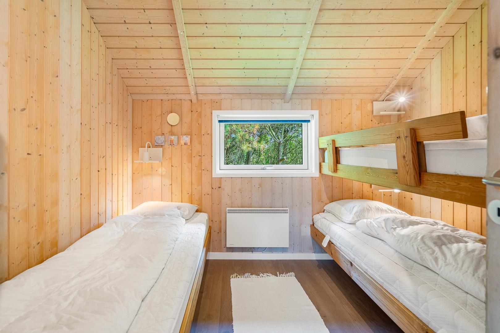 Sengestørrelser: dobbeltseng 180x200 cm. (2 madrasser), dobbeltseng 180x200 cm. (2 madrasse), enkeltseng 80x200 cm., køjesenge 80x200 cm / 100x200., alkove 100x200 cm.