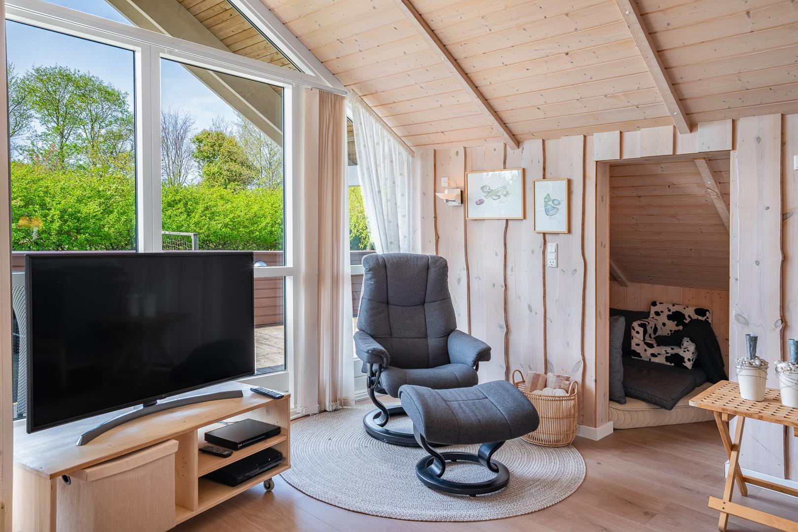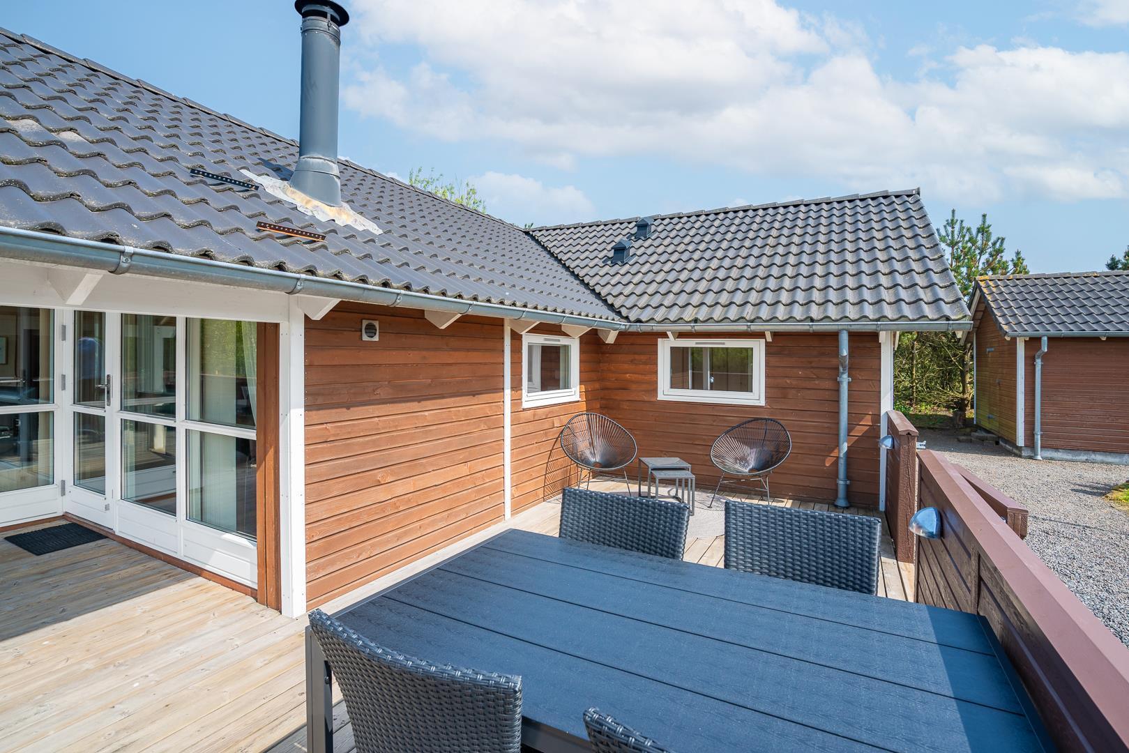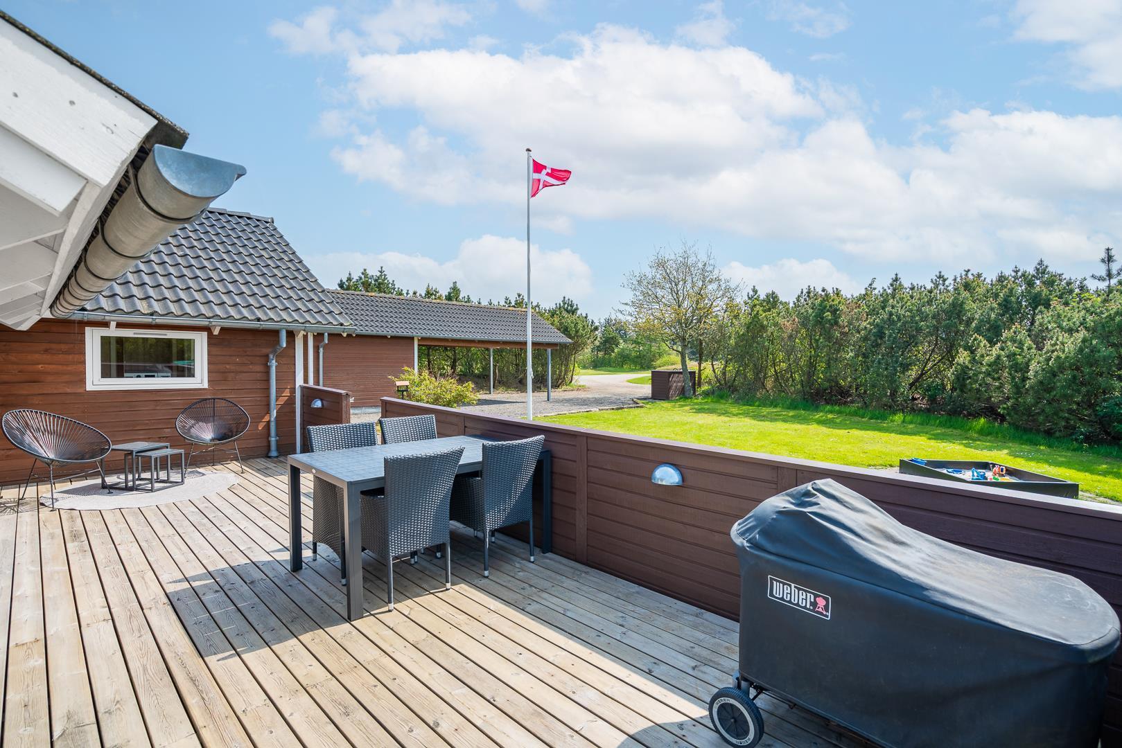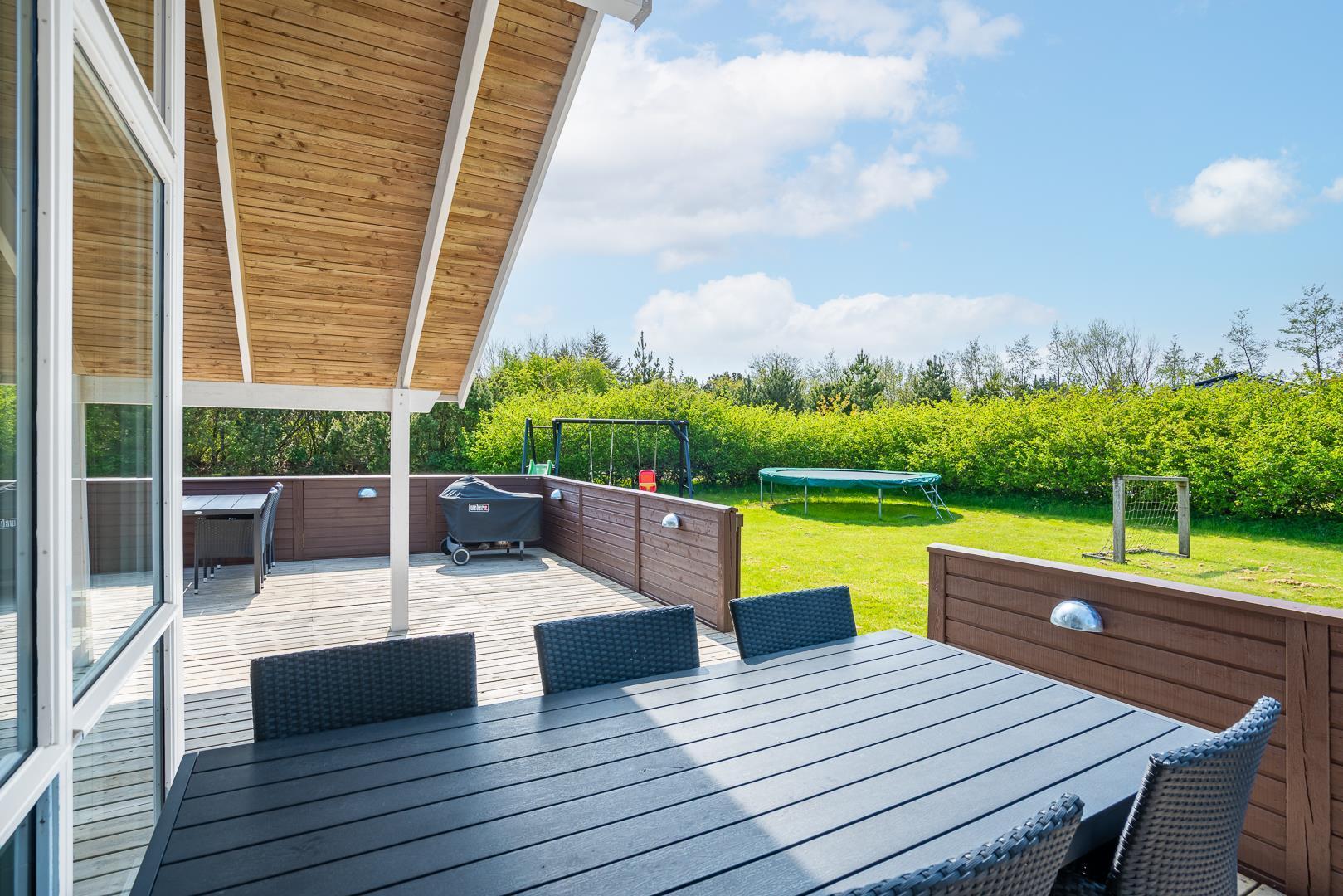 Holder du ferie i dette lækre feriehus i Henne Strand Øst, vil du nyde godt af moderne luksus i form af et wellnessbadeværelse med spa og sauna. og ikke mindst en skøn grund med fede legefaciliteter til børnene. Herudover vil du elske beliggenheden særligt hvis du holder af at spille golf, for huset ligger lige ved Henne Golfklubs naturskønne bane.