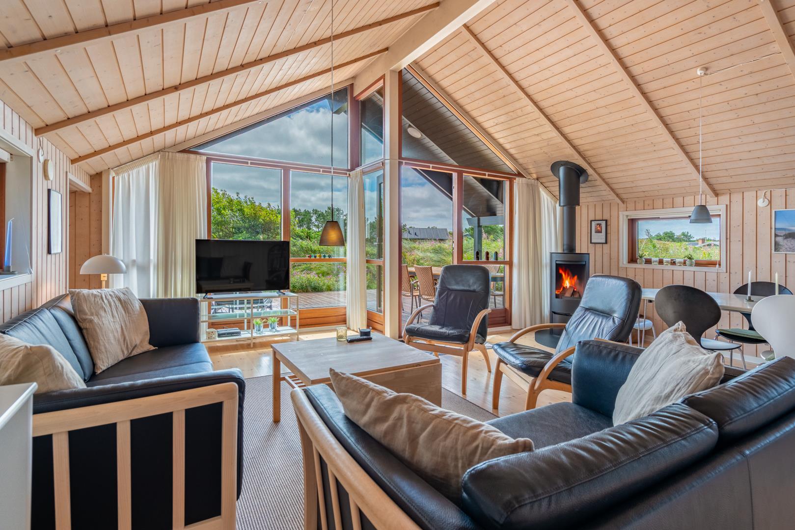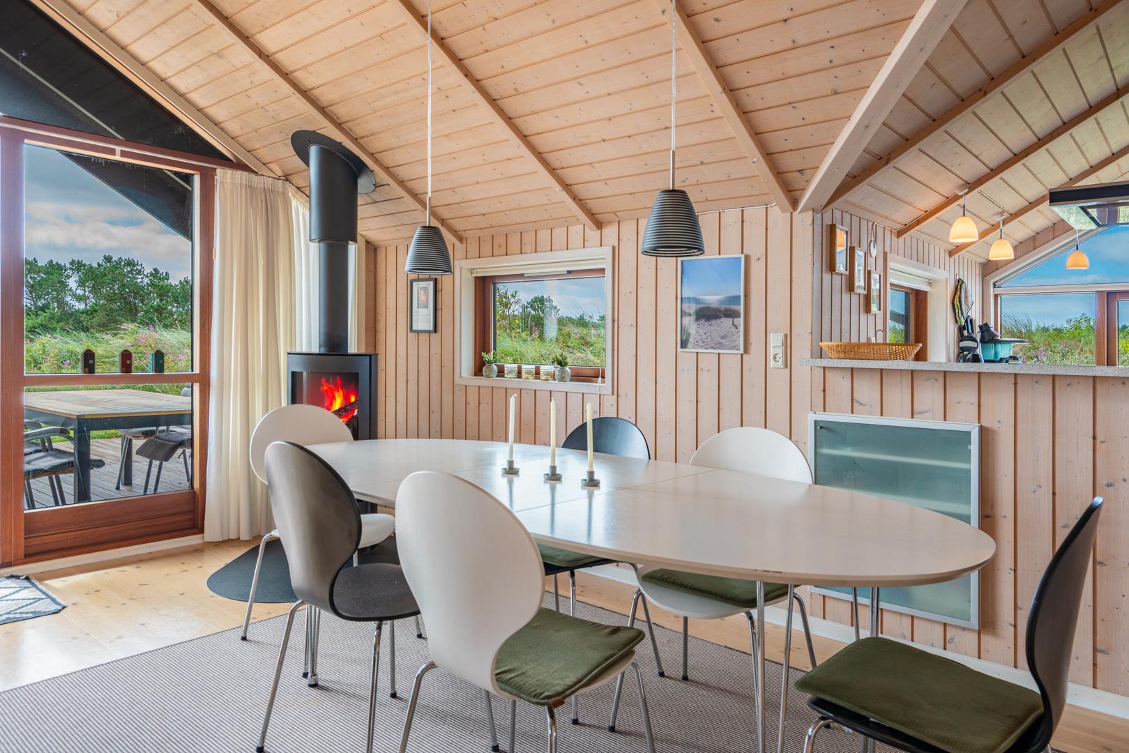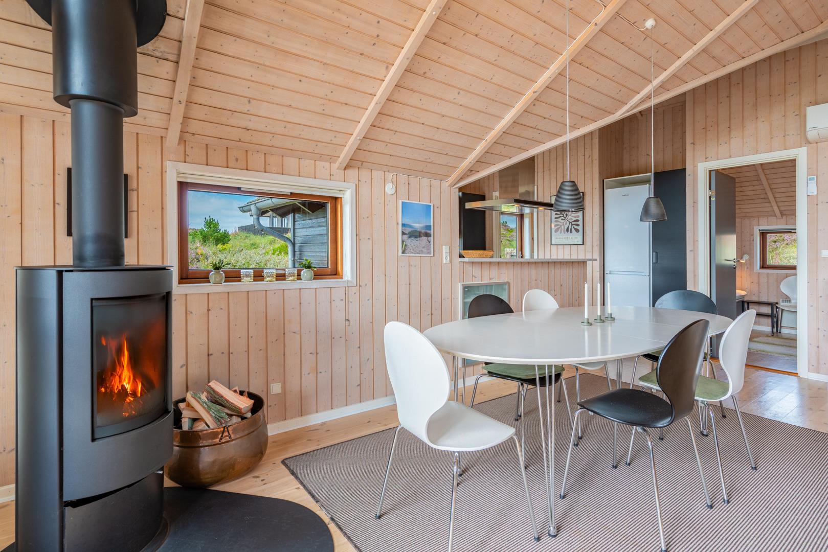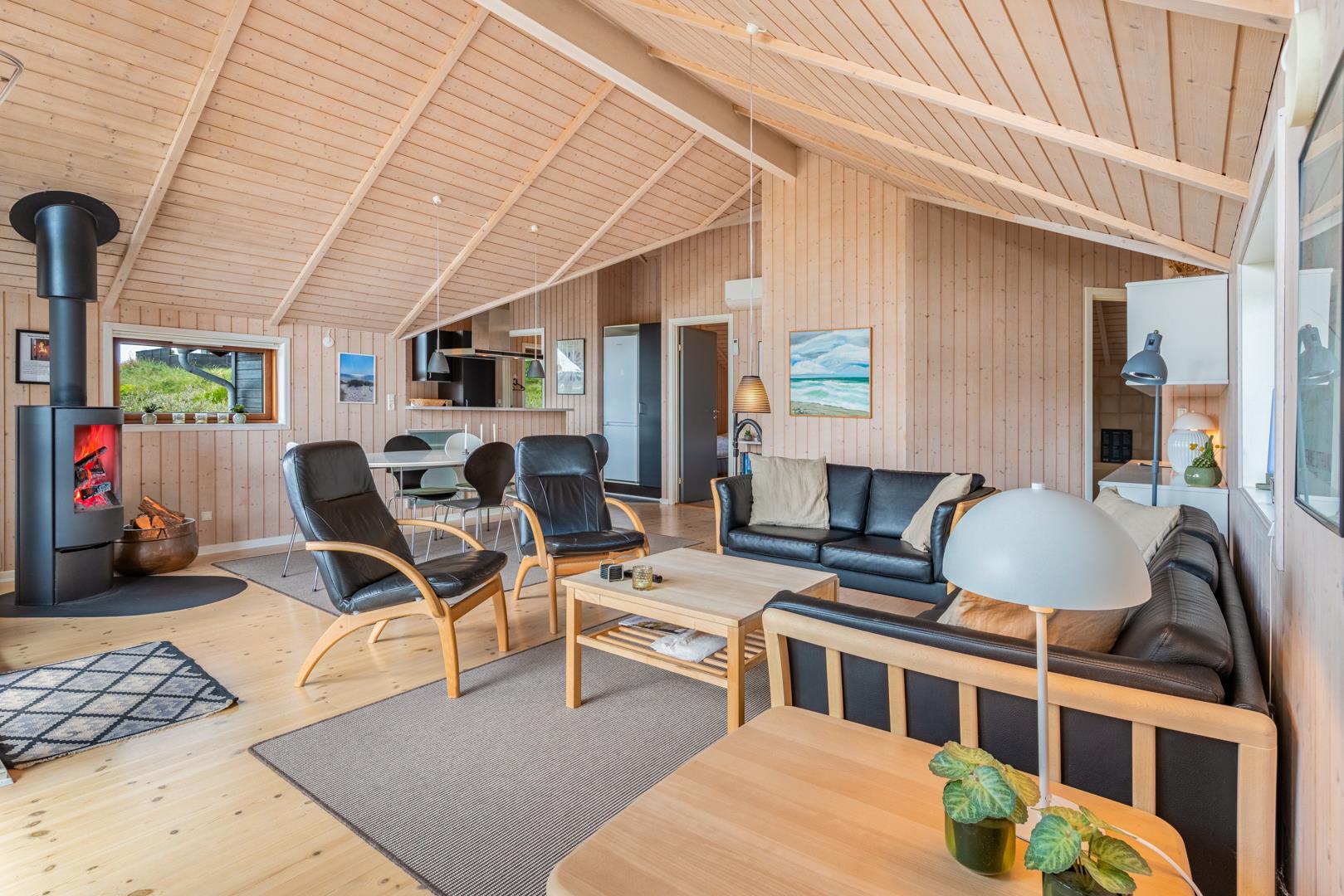Det lyse opholdsområde med brændeovn skaber ægte hygge – især efter lange gåture på stranden. Den energibesparende varmepumpe sikrer behagelige temperaturer året rundt, og det åbne, moderne køkken med opvaskemaskine gør fælles madlavning nem og hyggelig.