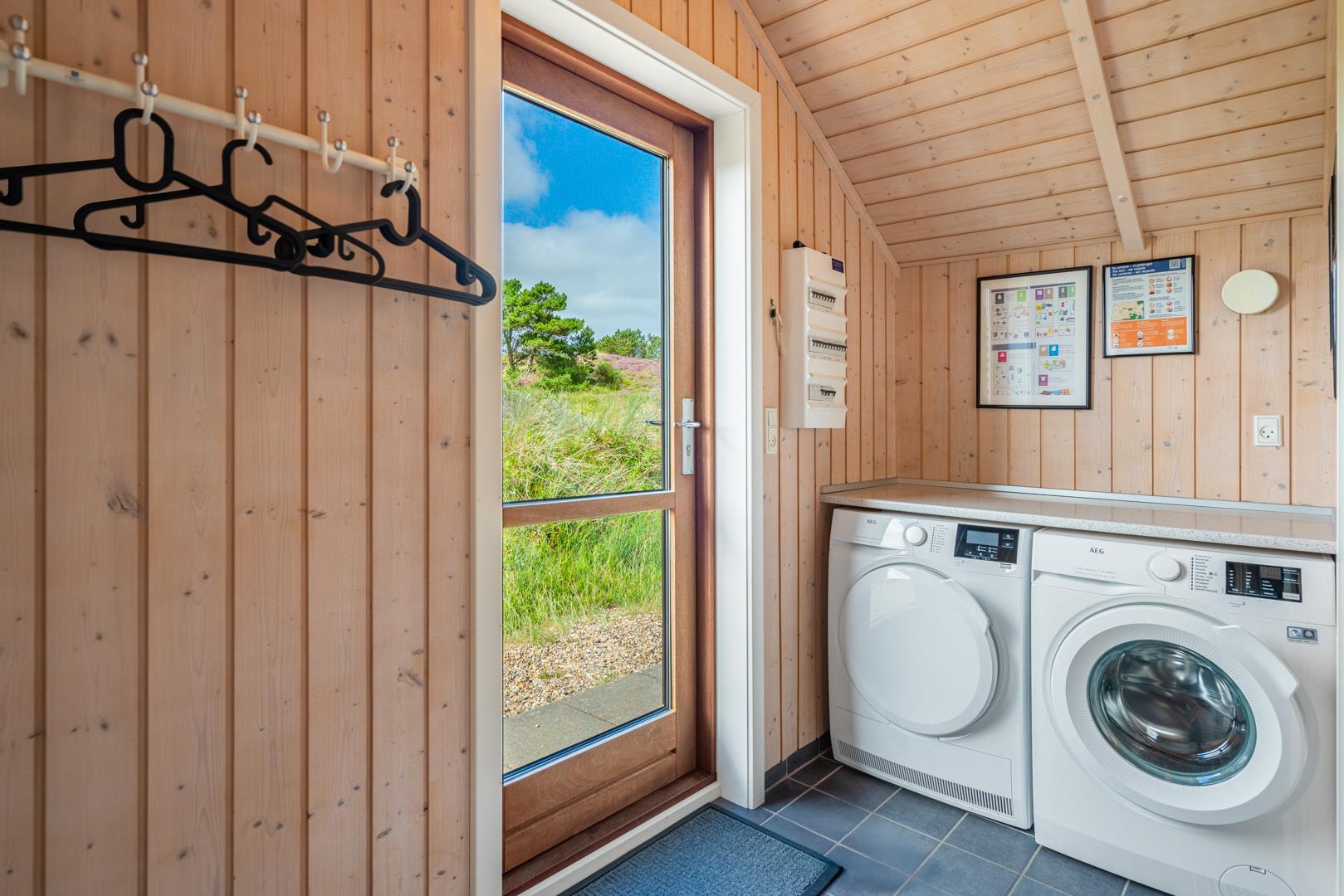 Vaskemaskine og tørretumbler giver ekstra komfort, især ved længere ophold.
