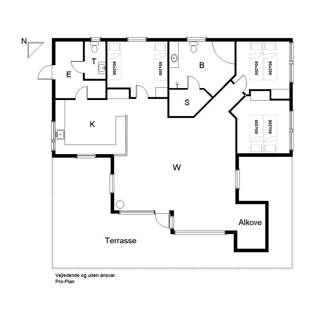 Sommerhuset har 3 soveværelser samt en ekstra alkove, som er særligt populært hos børnene. På den måde har alle deres eget fristed, samtidig med at I holder ferie sammen ved vestkysten.