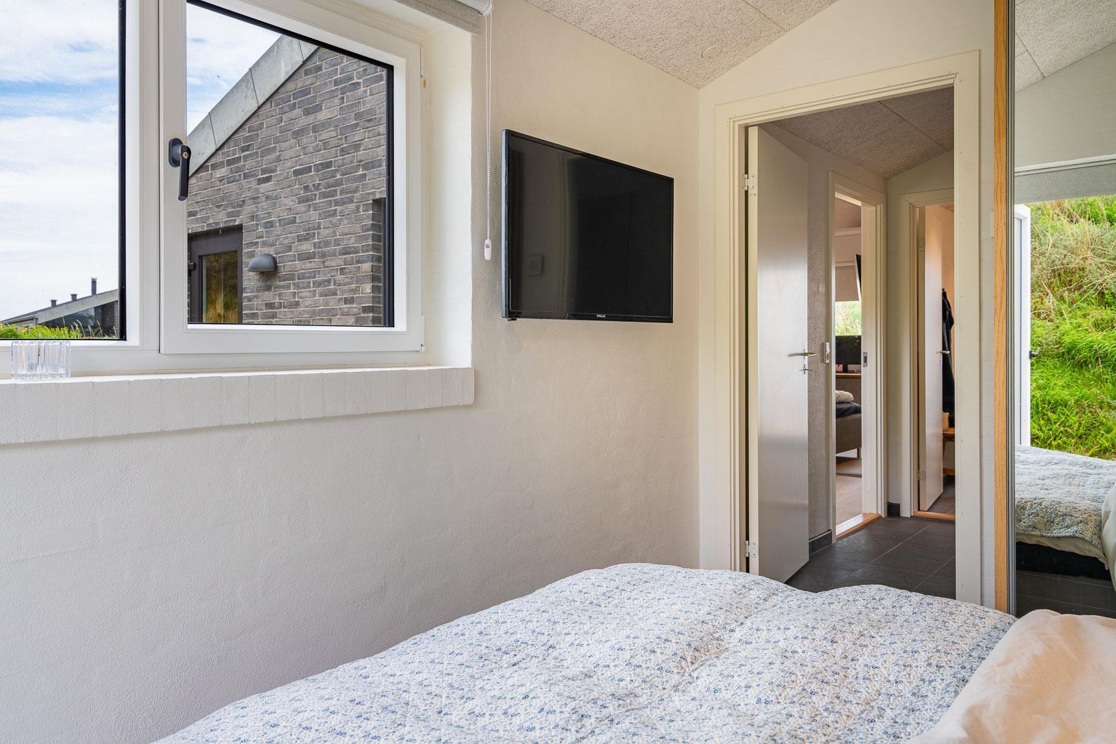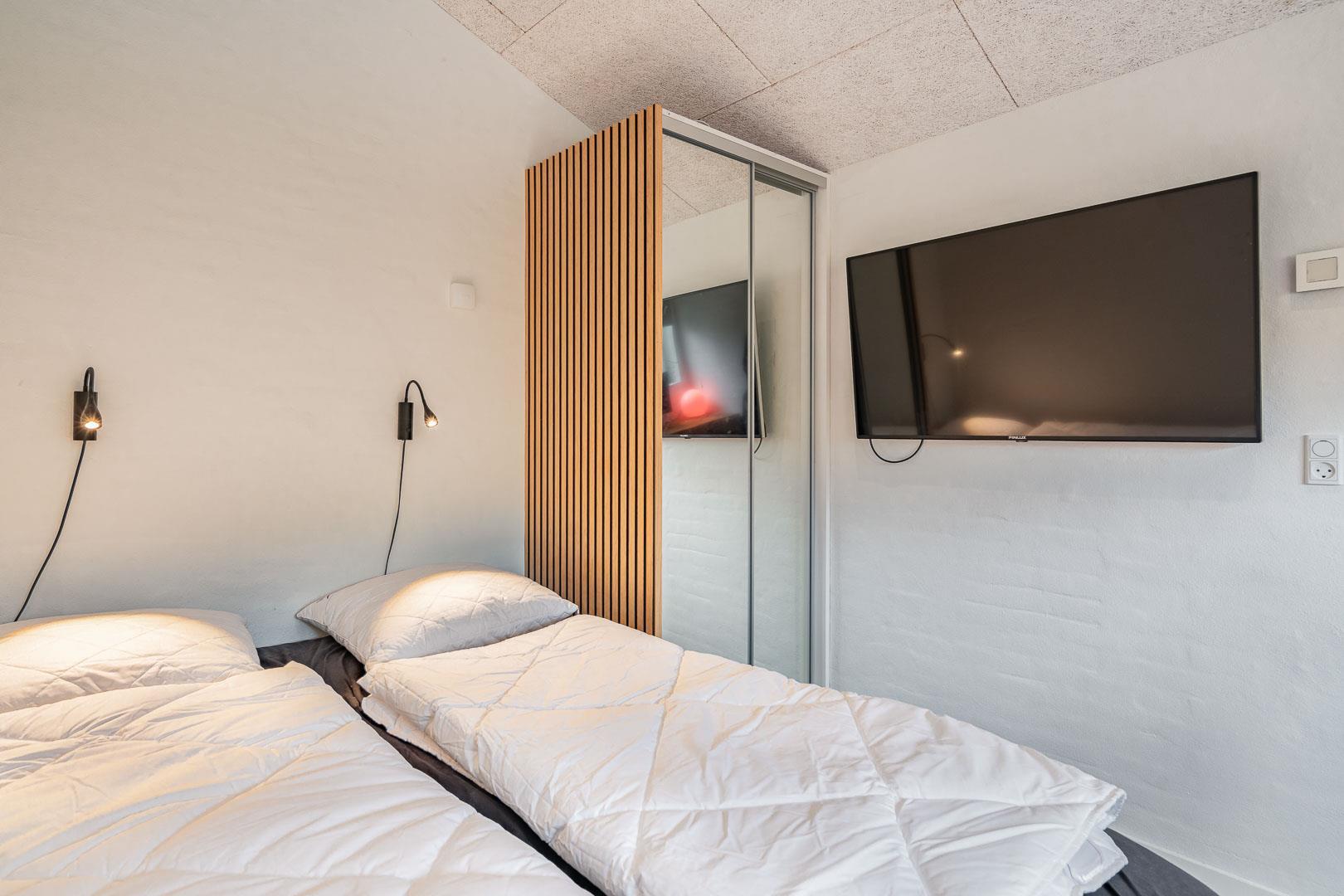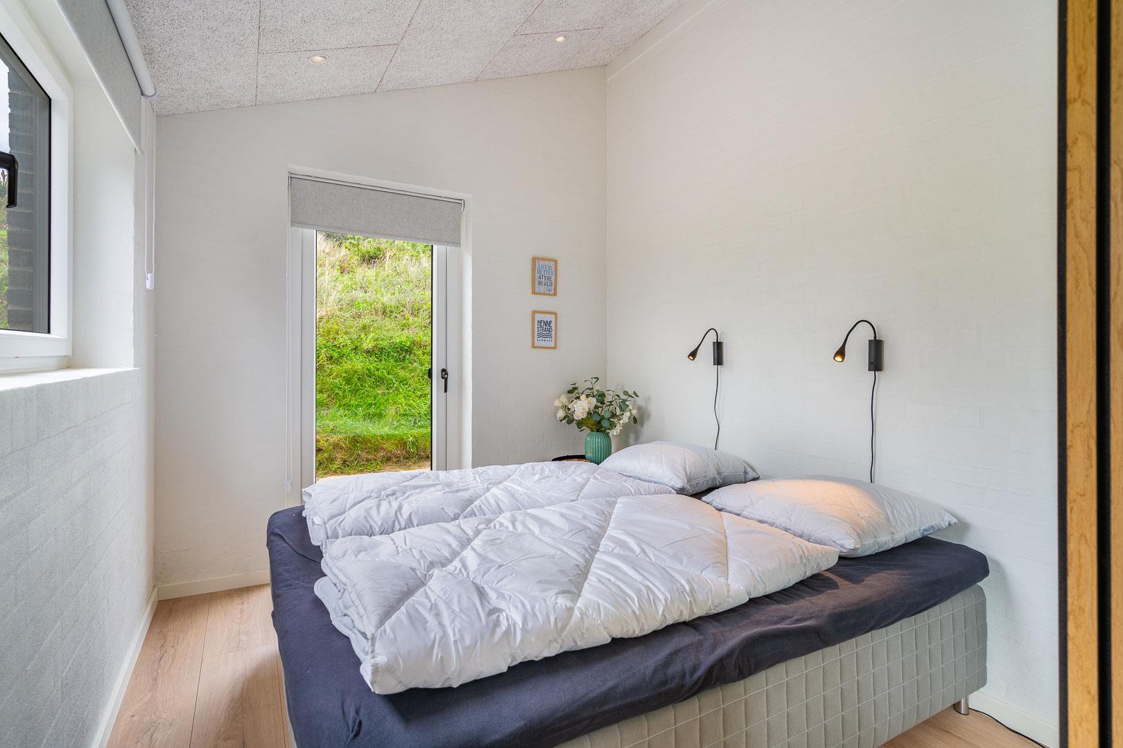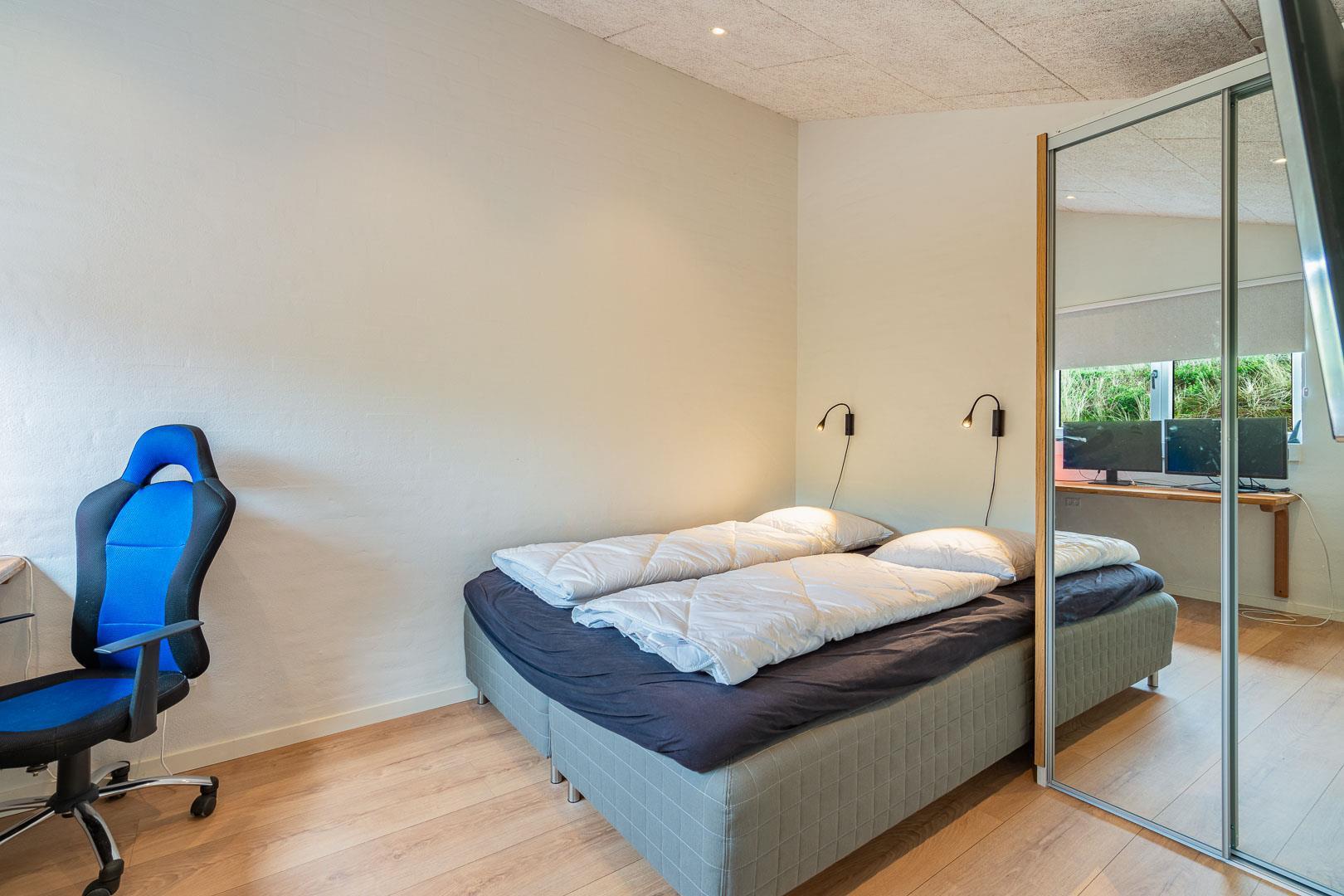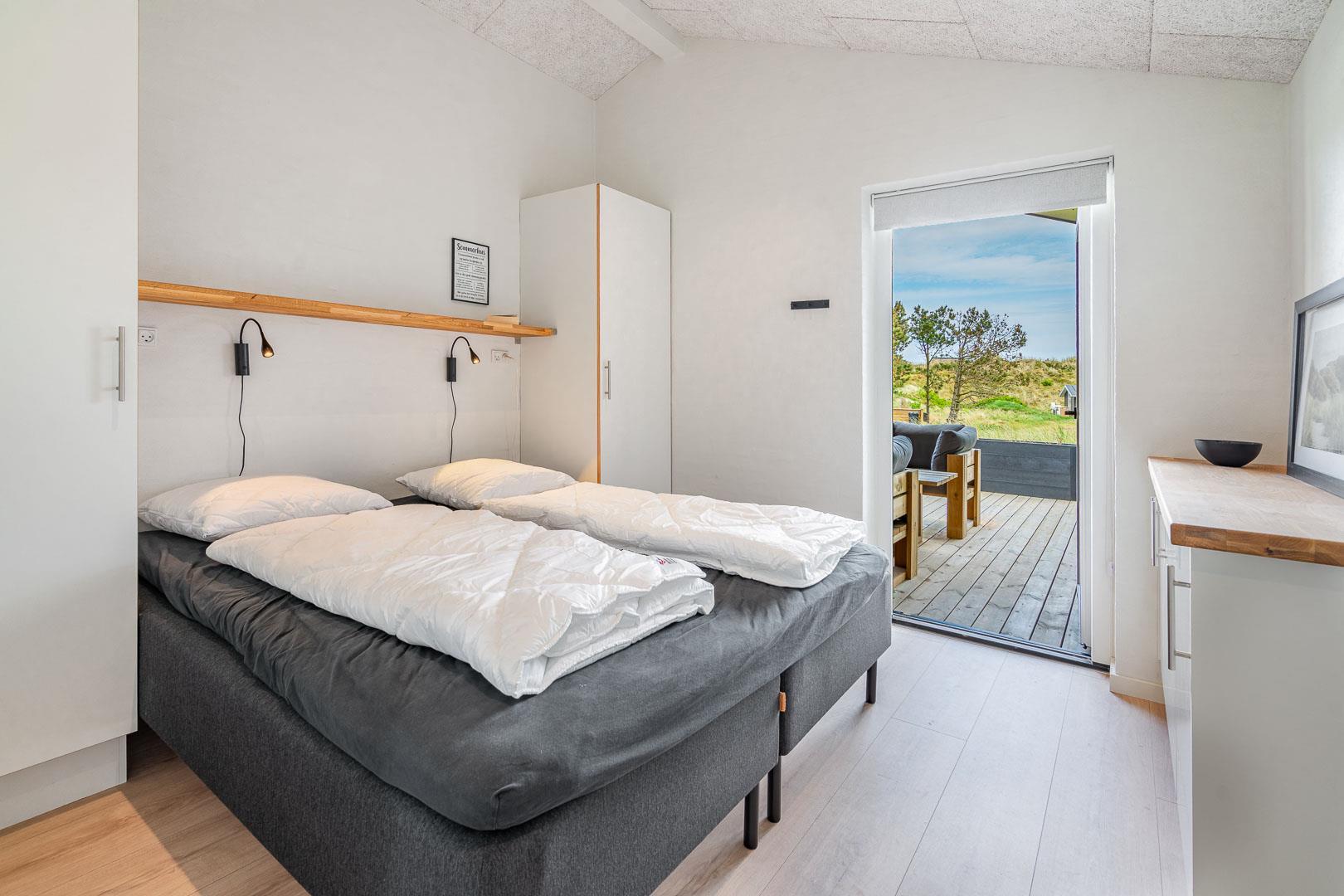 Sommerhuset har fire rummelige soveværelser, alle med dobbeltsenge, hvilket sikrer en god nattesøvn for alle gæster. Der er to moderne badeværelser, som tilbyder både funktionalitet og komfort.