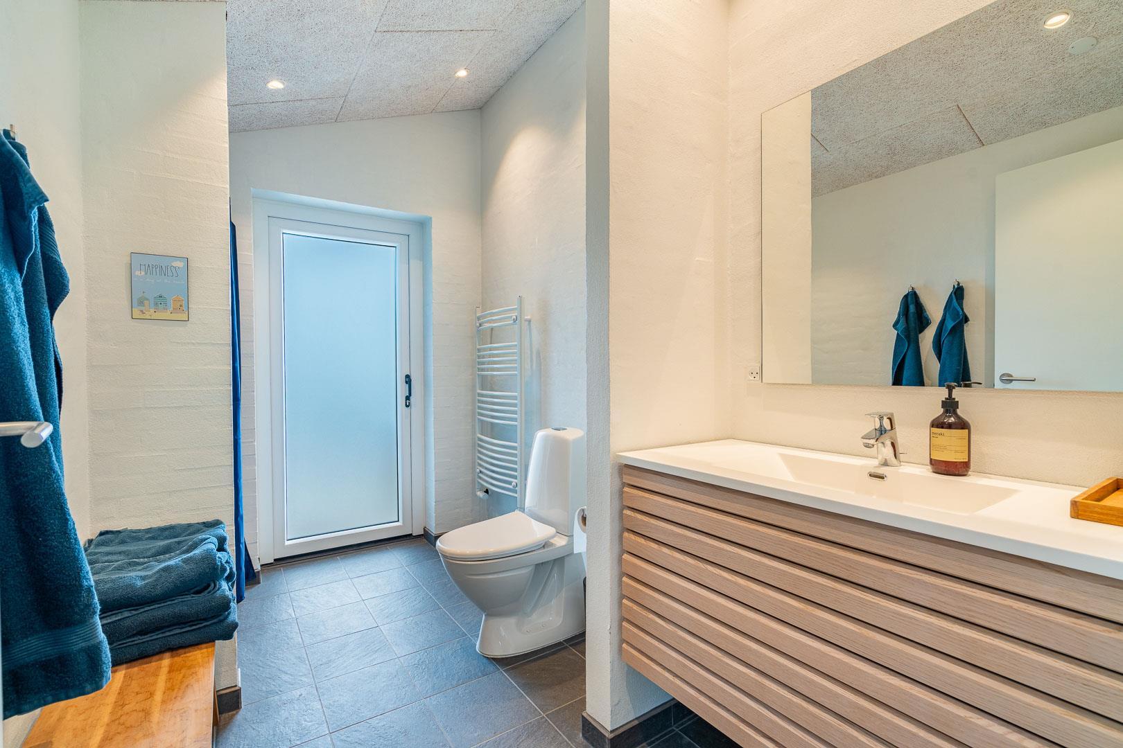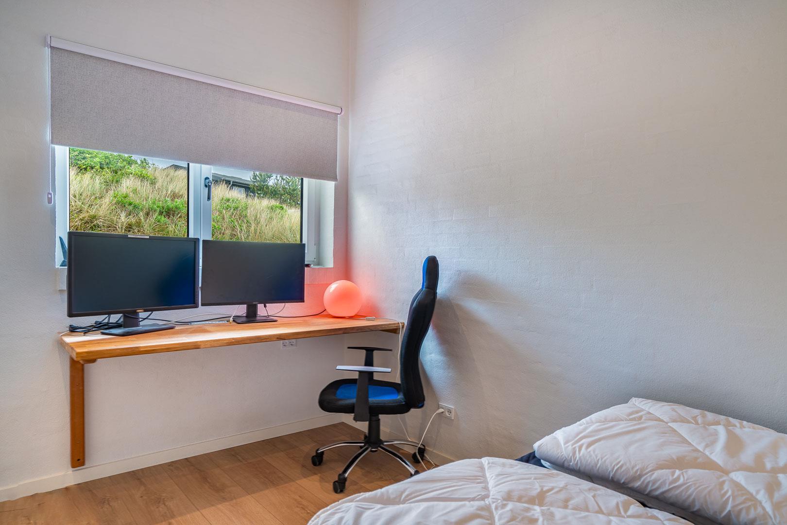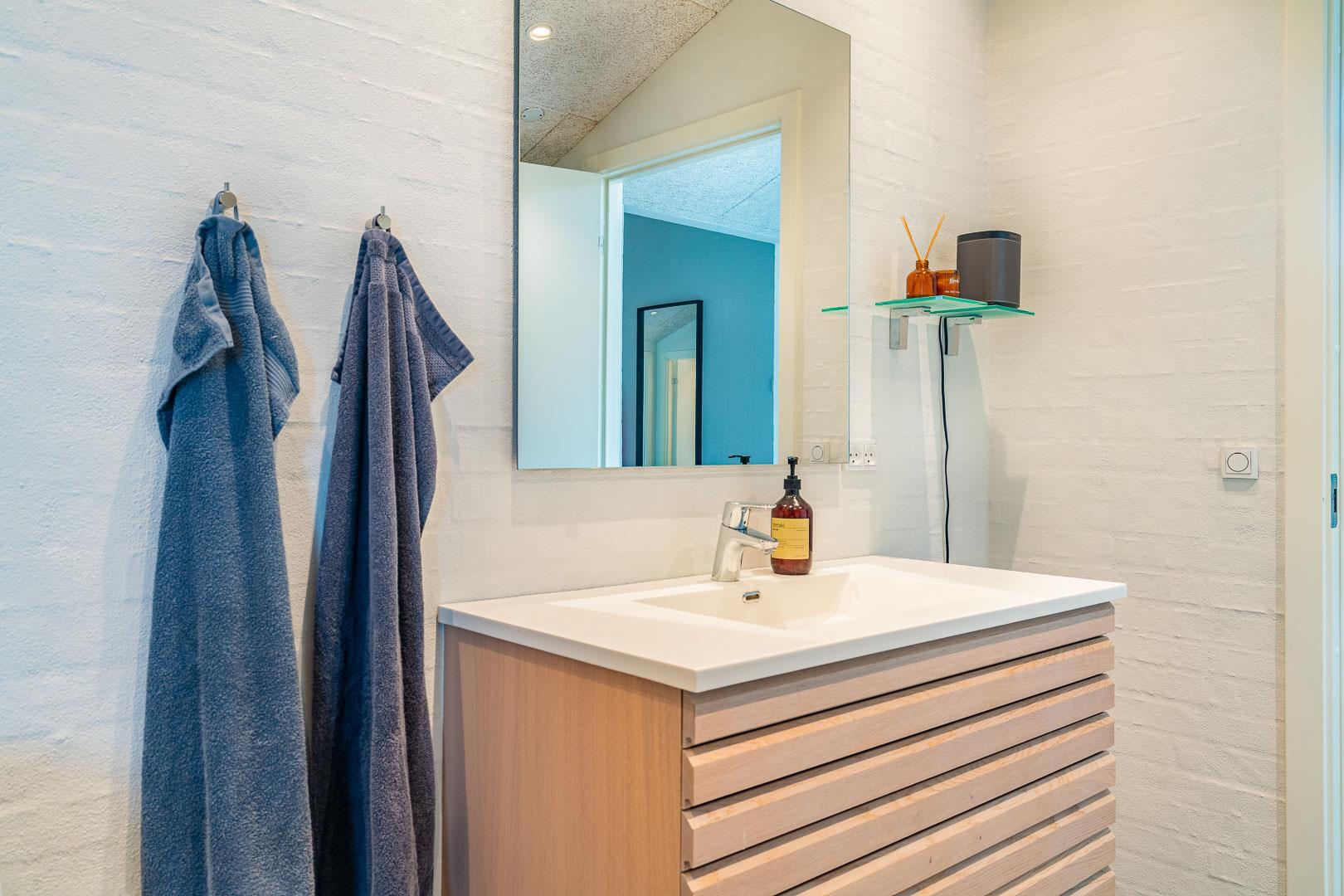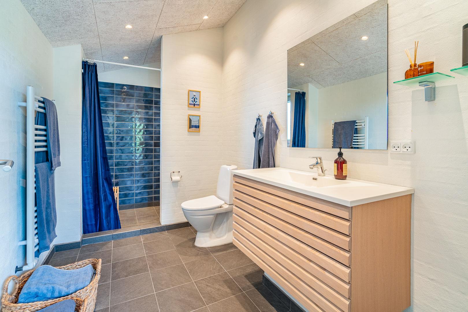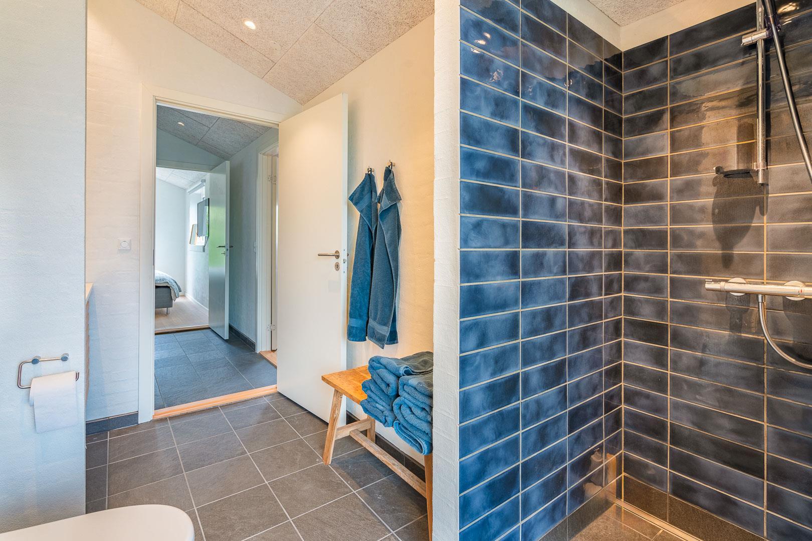 Sommerhuset har fire rummelige soveværelser, alle med dobbeltsenge, hvilket sikrer en god nattesøvn for alle gæster. Der er to moderne badeværelser, som tilbyder både funktionalitet og komfort.