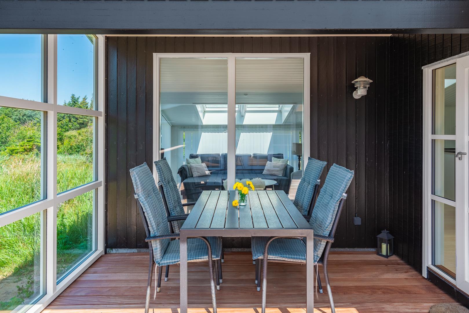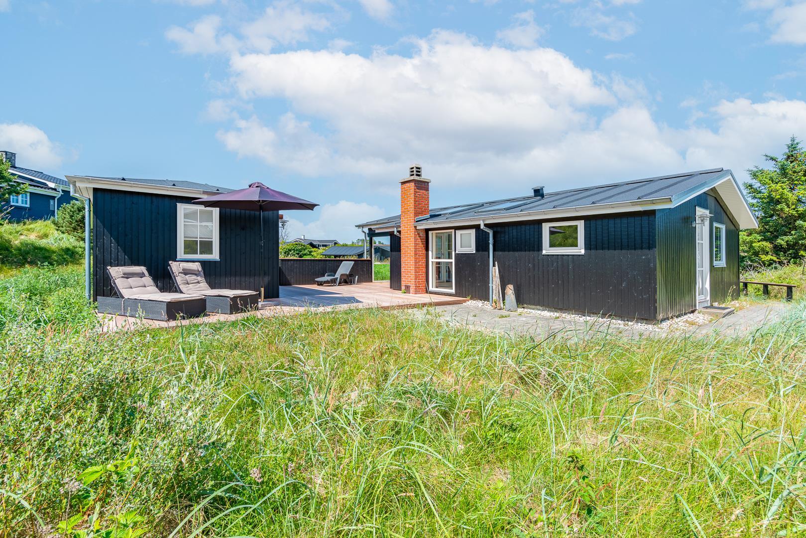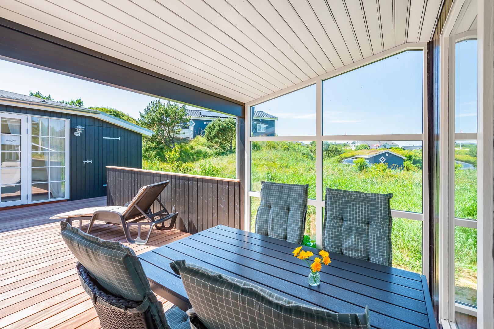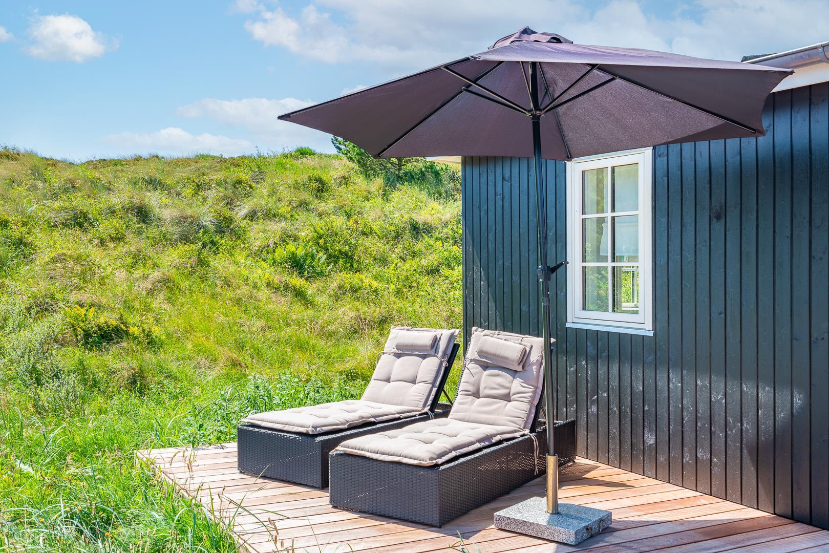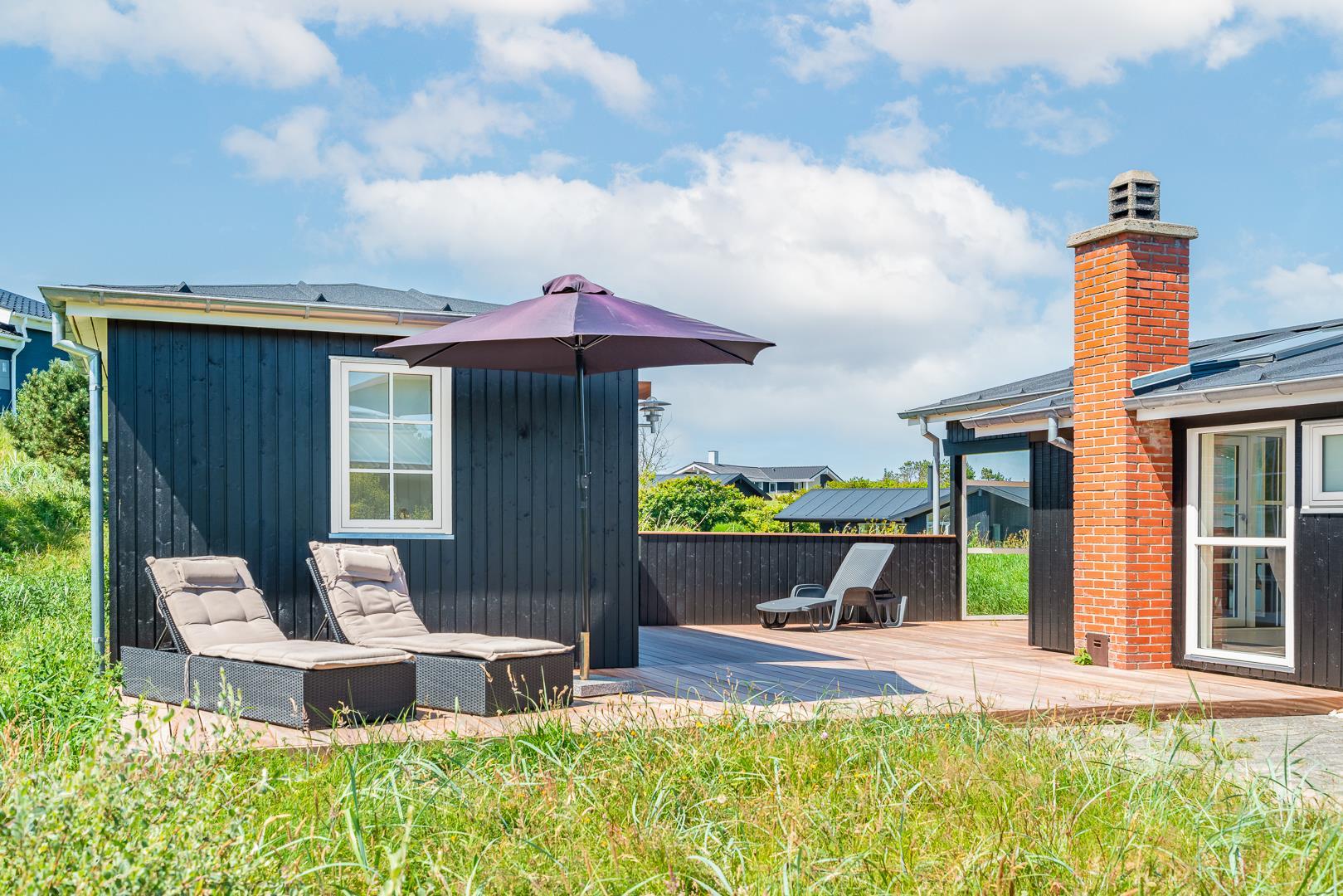 Den delvist overdækkede terrasse er perfekt til hyggelige stunder udendørs – både til morgenkaffen i solen og til middage med udsigt over klitlandskabet. Haven er rummelig og børnevenlig, så der er god plads til leg og afslapning.