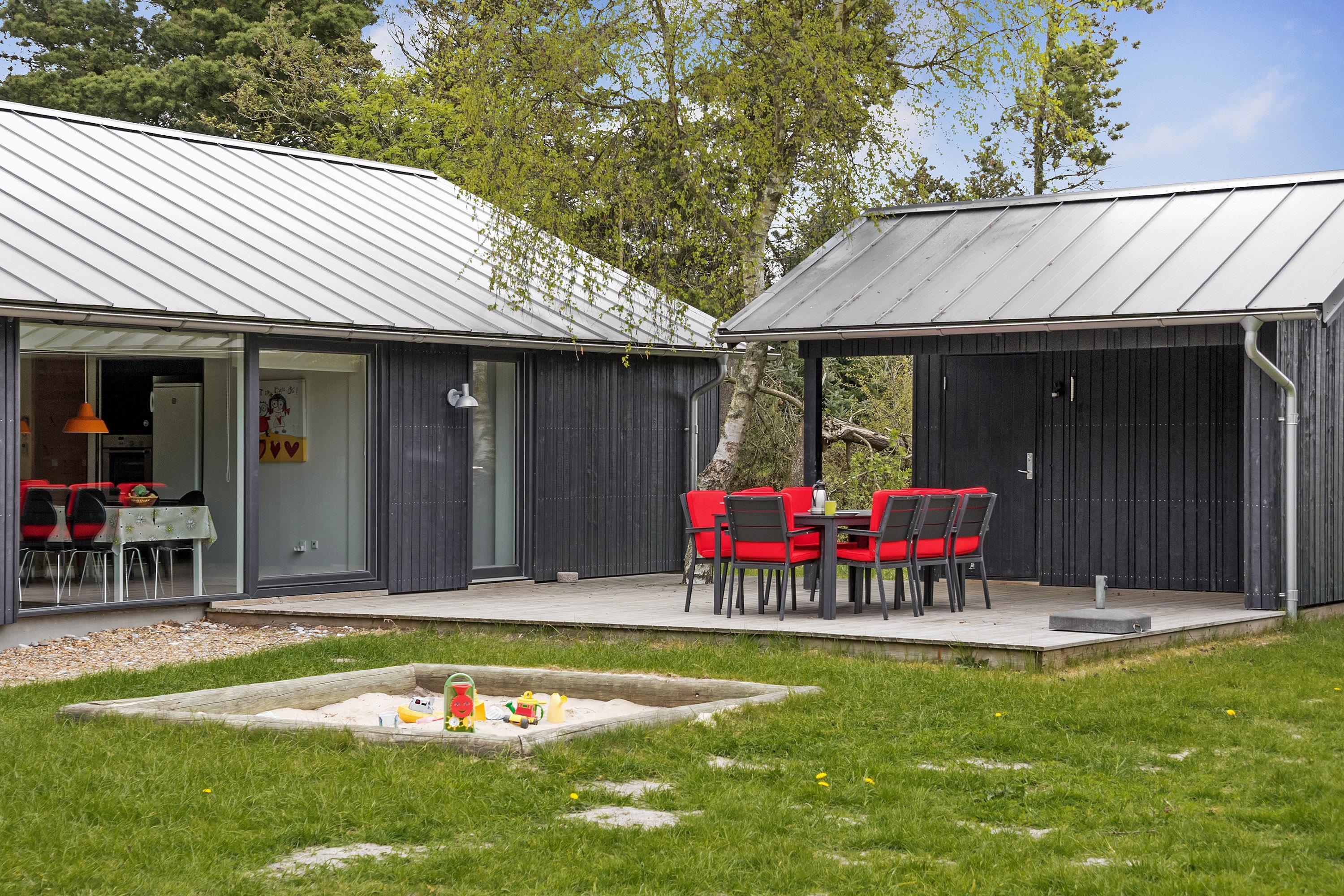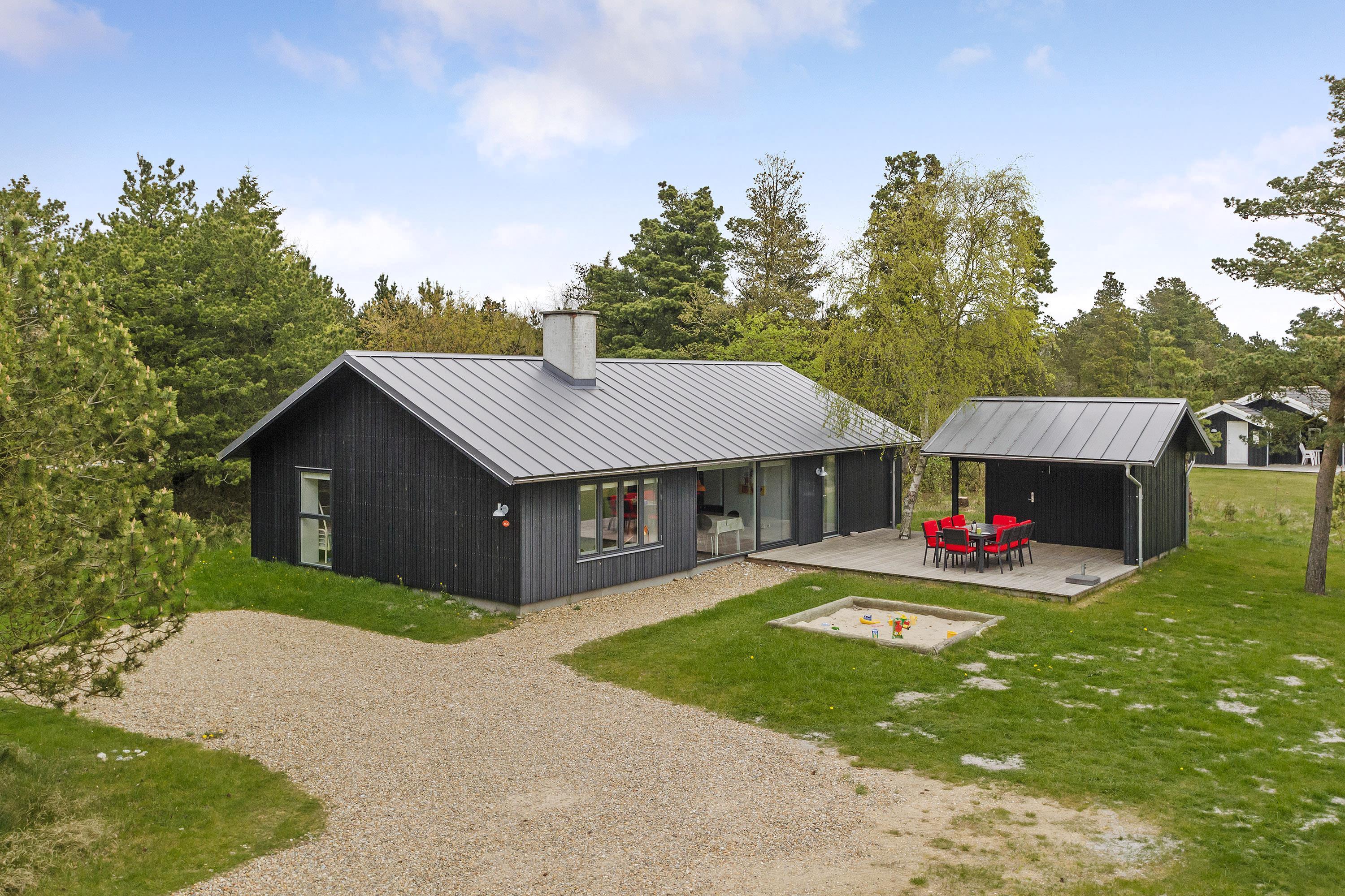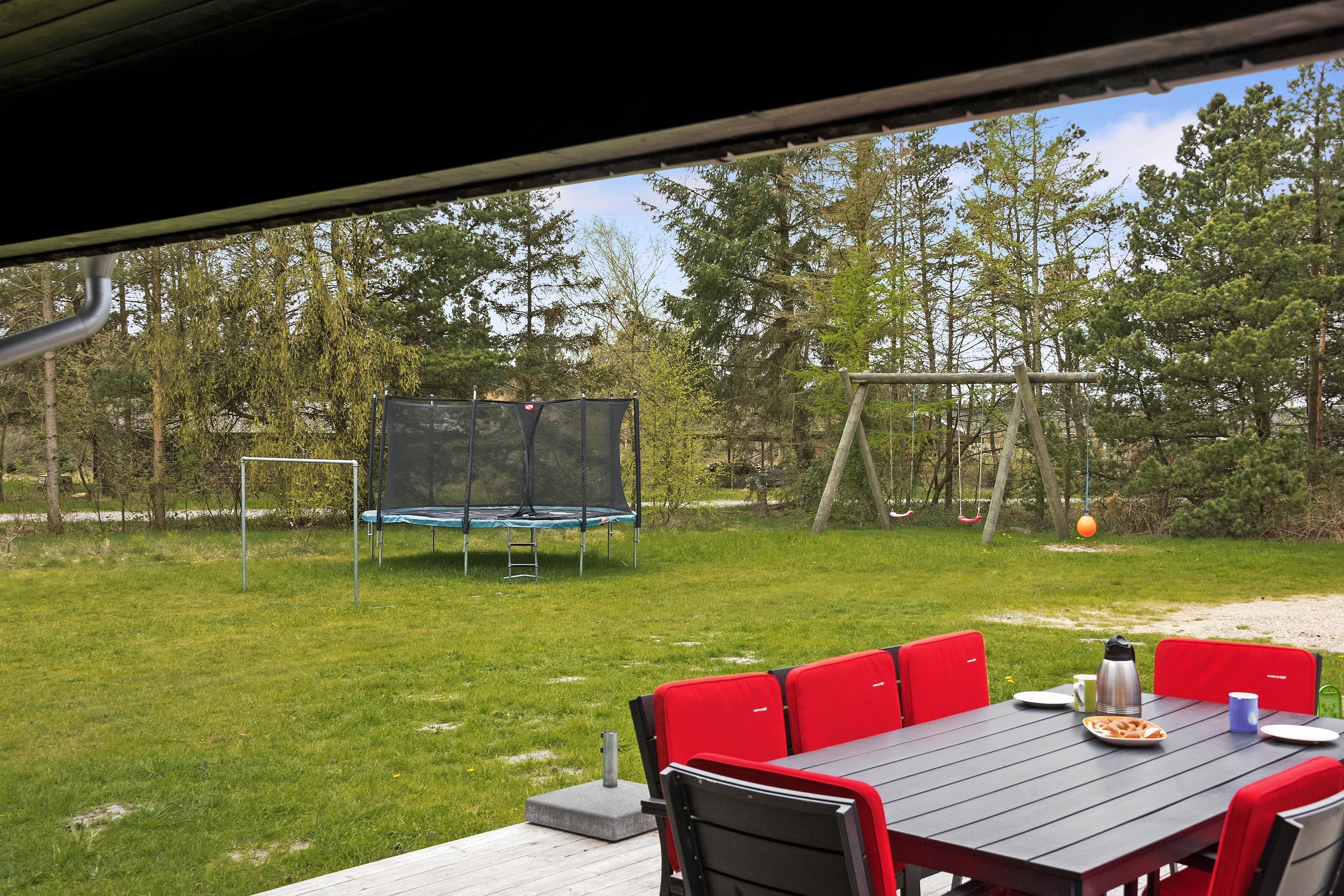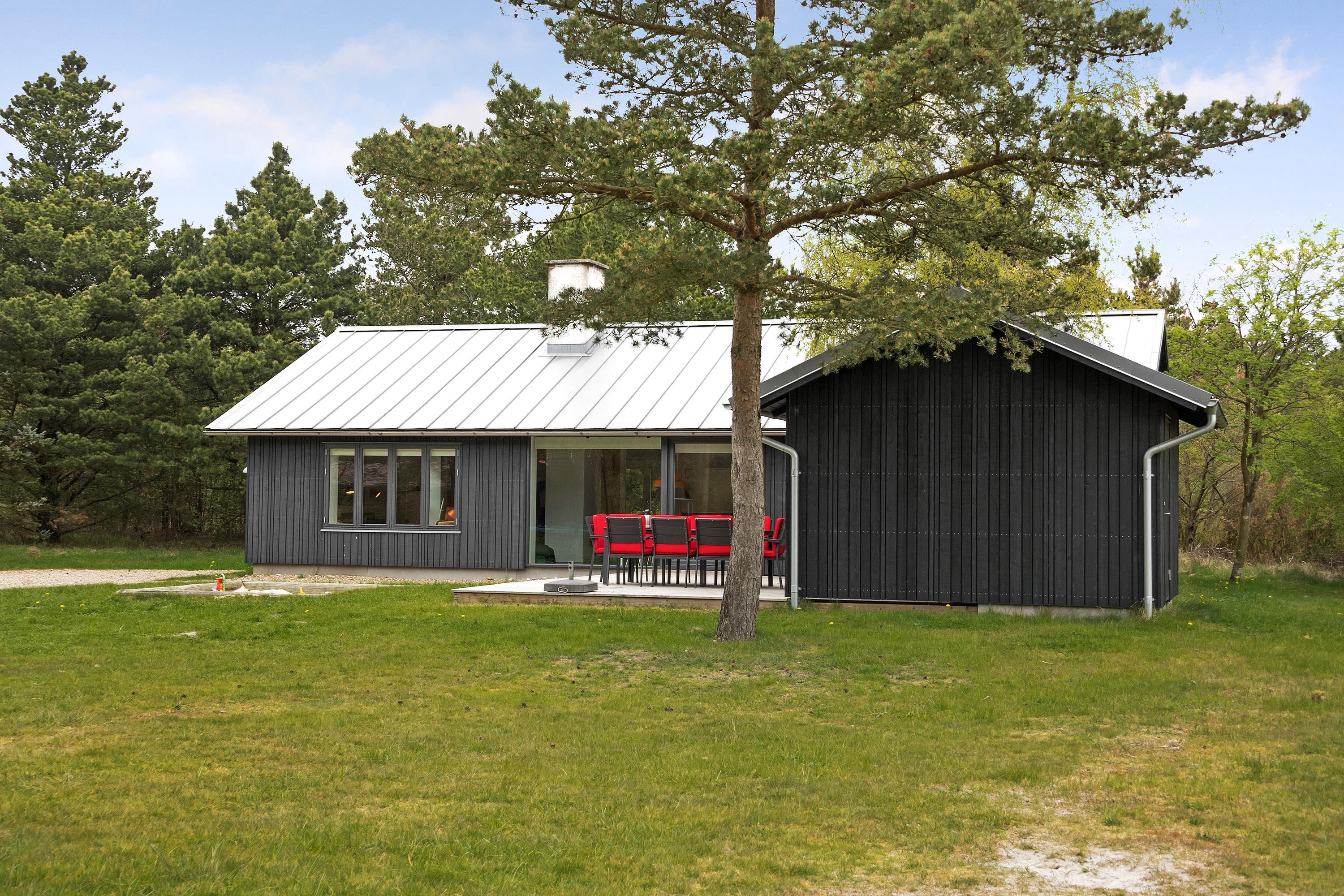 På en skøn delvis lukket grund om kranset af træer ligger dette pragtfulde feriehus. Huset fremstår overalt lyst og er meget smagfuld indrettet. Flot køkken, som ligger i åben forbindelse med stuen, som er indrettet med komfortable møbler. Fra stuen er der udgang til en dejlig terrasse, hvor naturen og roen kan nydes. Huset er indrette med 2 badeværelser med bruser. På den dejlige ugenerede naturgrund er der til børnene fodboldmål, sandkasse, gynge og trampolin.Et virkeligt dejligt feriehus hvor rammerne er skabt til en god ferie.