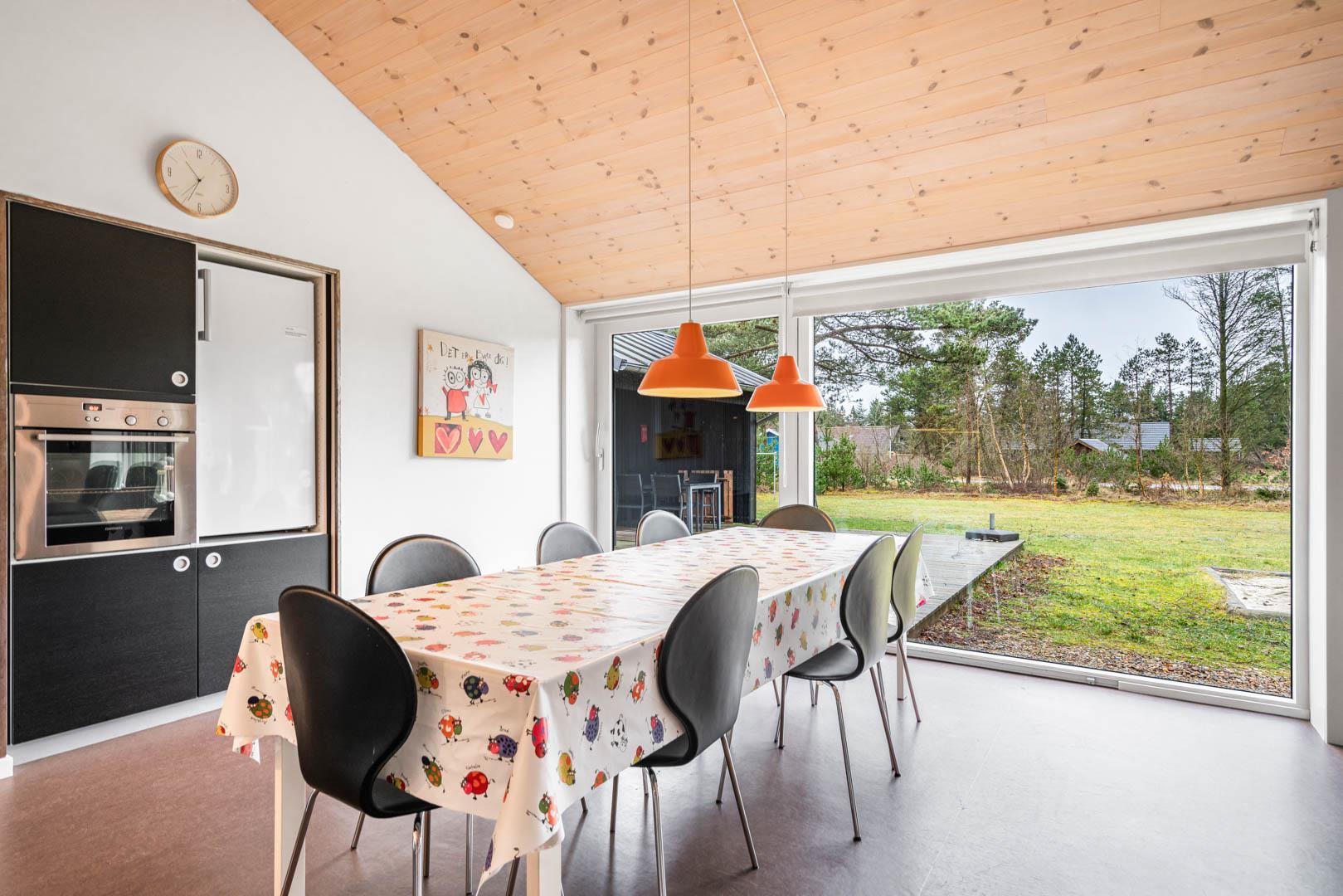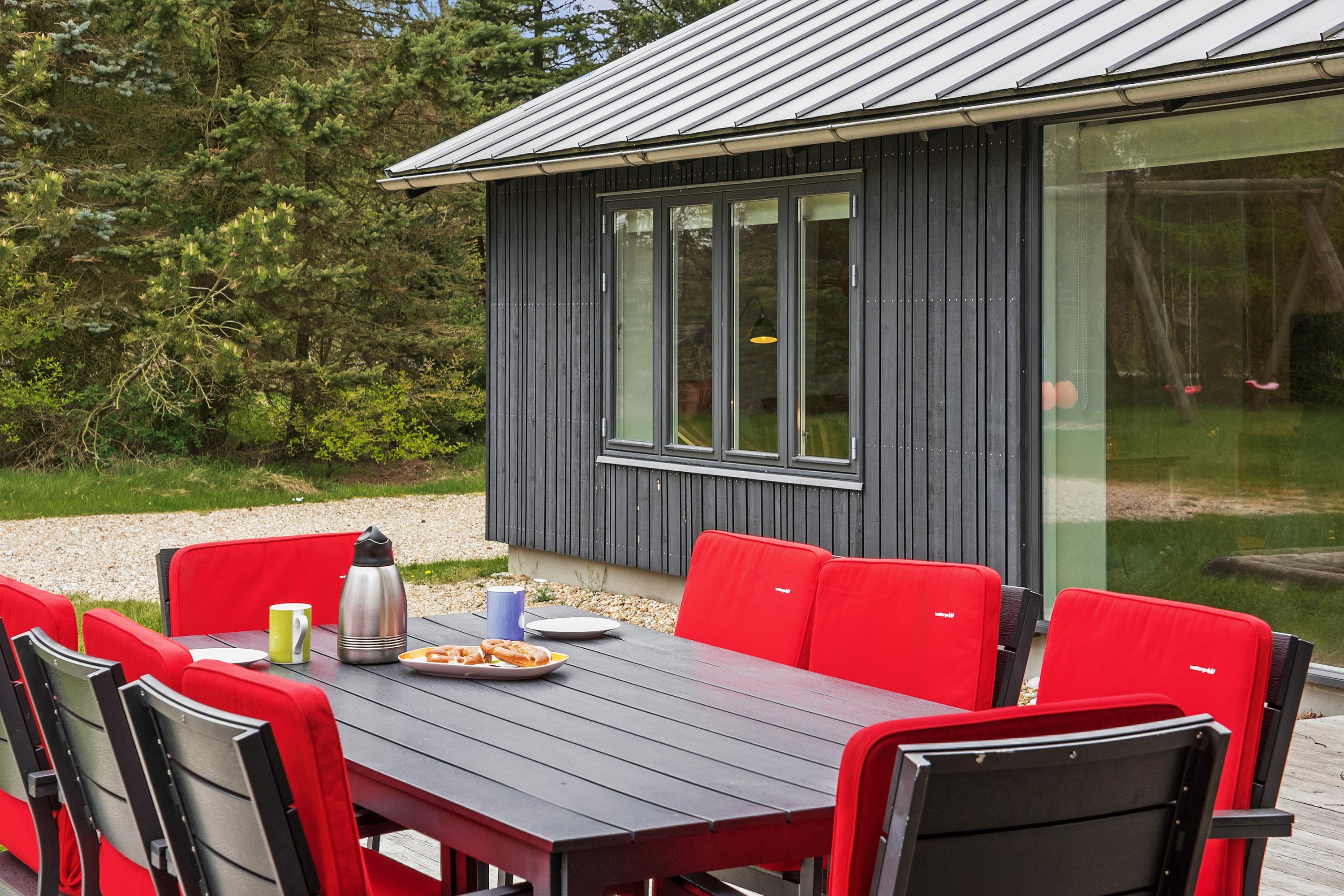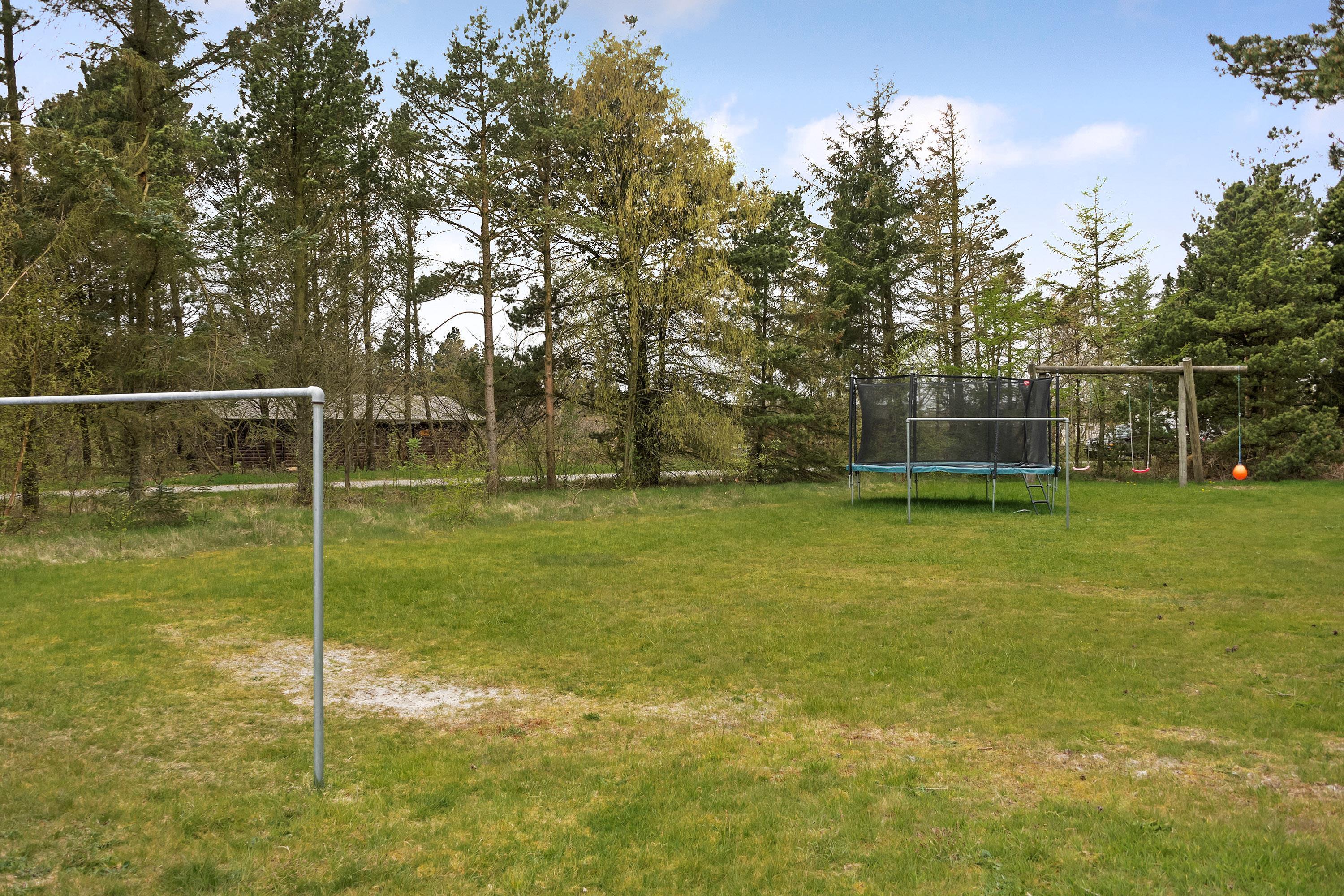 På en skøn delvis lukket grund om kranset af træer ligger dette pragtfulde feriehus. Huset fremstår overalt lyst og er meget smagfuld indrettet. Flot køkken, som ligger i åben forbindelse med stuen, som er indrettet med komfortable møbler. Fra stuen er der udgang til en dejlig terrasse, hvor naturen og roen kan nydes. Huset er indrette med 2 badeværelser med bruser. På den dejlige ugenerede naturgrund er der til børnene fodboldmål, sandkasse, gynge og trampolin.Et virkeligt dejligt feriehus hvor rammerne er skabt til en god ferie.