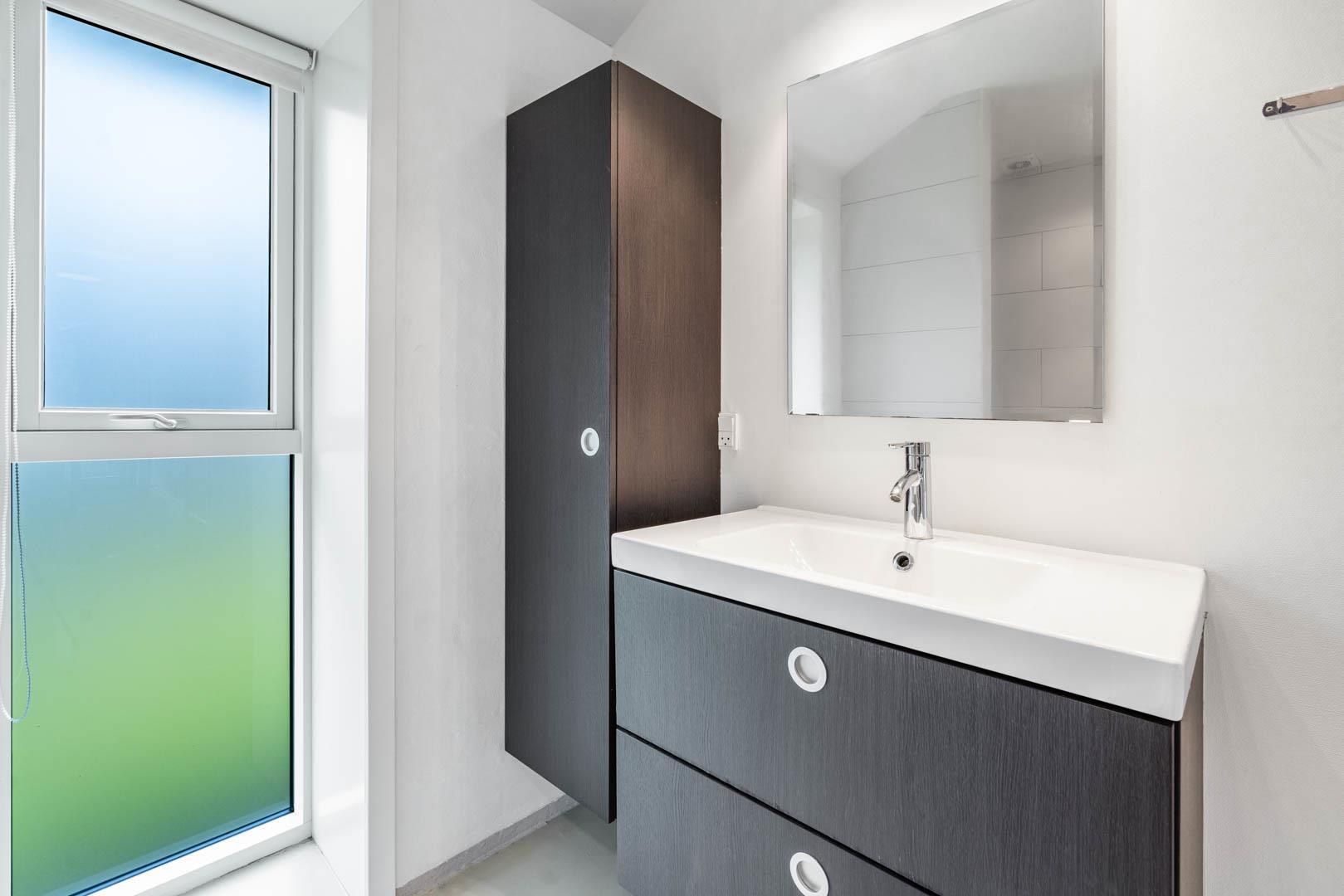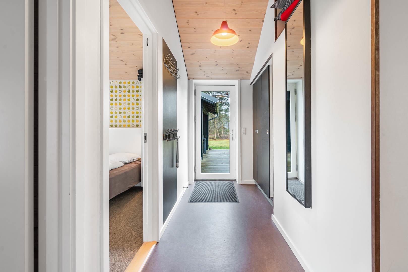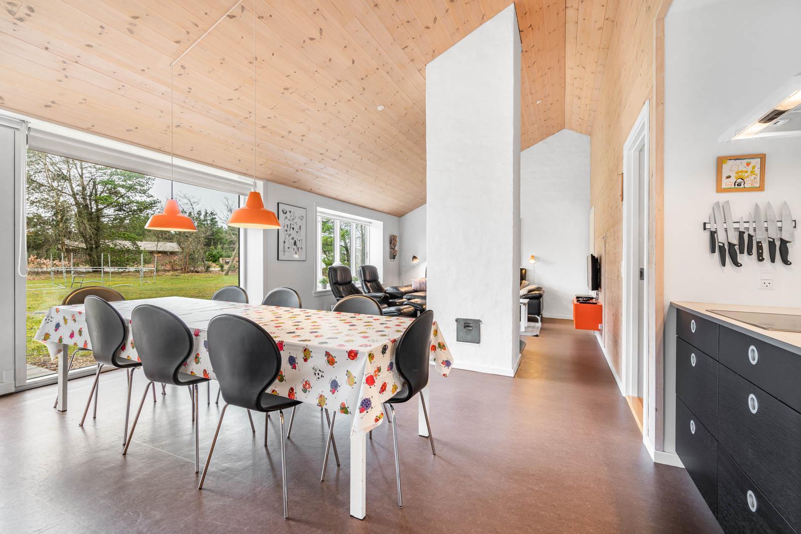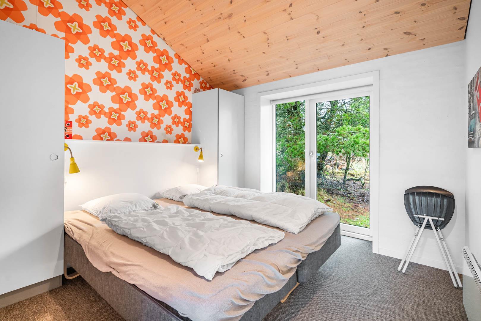 På en skøn delvis lukket grund om kranset af træer ligger dette pragtfulde feriehus. Huset fremstår overalt lyst og er meget smagfuld indrettet. Flot køkken, som ligger i åben forbindelse med stuen, som er indrettet med komfortable møbler. Fra stuen er der udgang til en dejlig terrasse, hvor naturen og roen kan nydes. Huset er indrette med 2 badeværelser med bruser. På den dejlige ugenerede naturgrund er der til børnene fodboldmål, sandkasse, gynge og trampolin.Et virkeligt dejligt feriehus hvor rammerne er skabt til en god ferie.