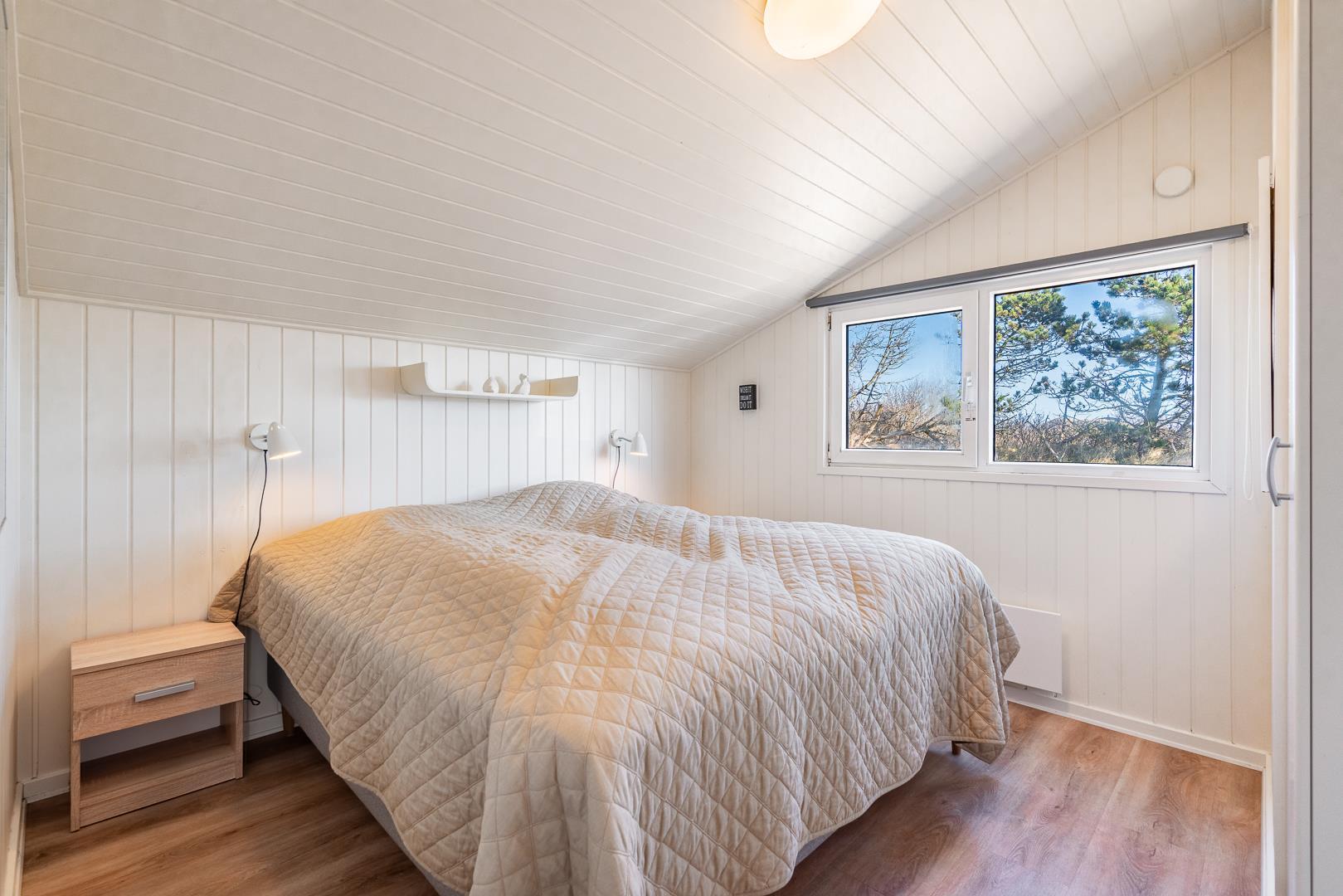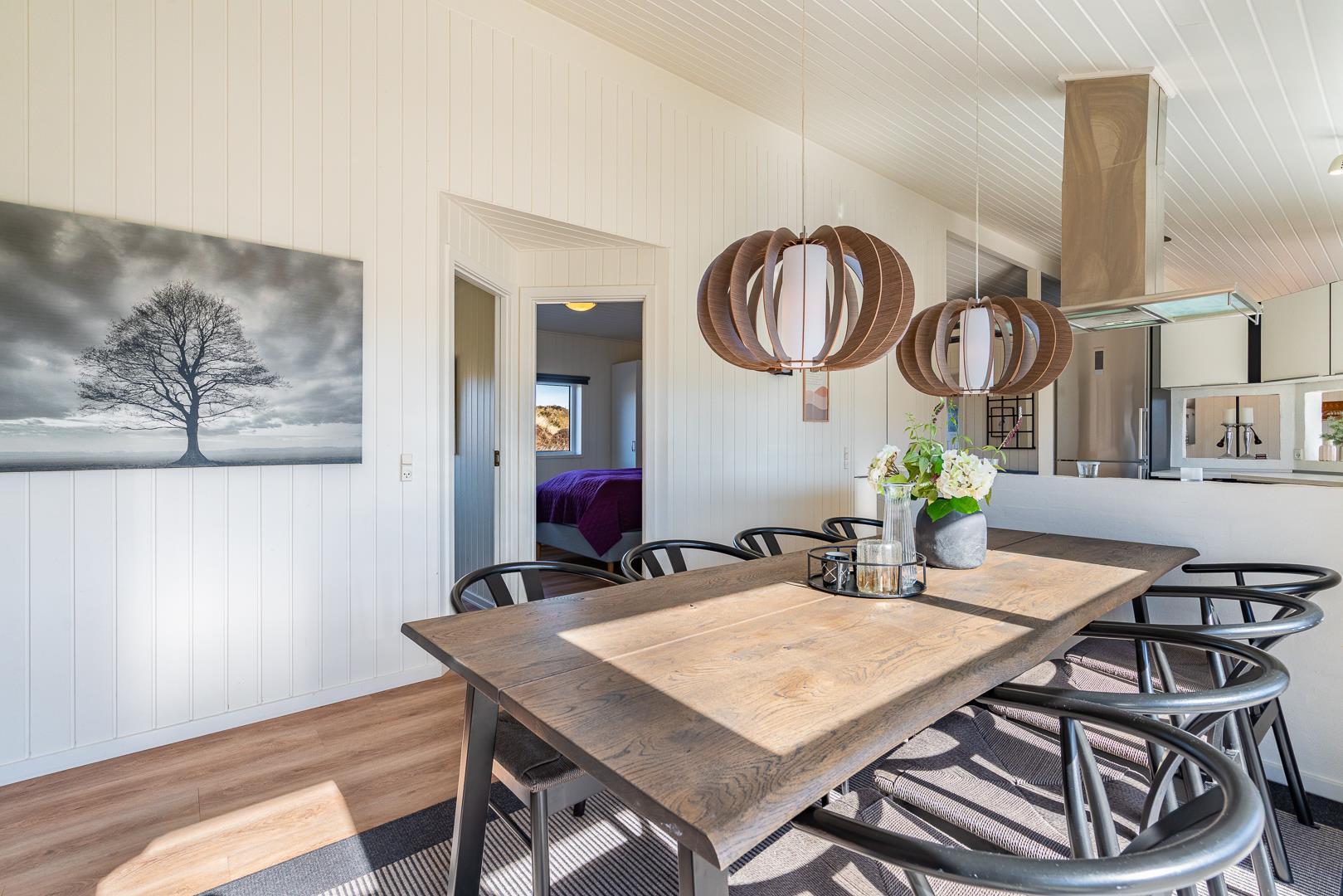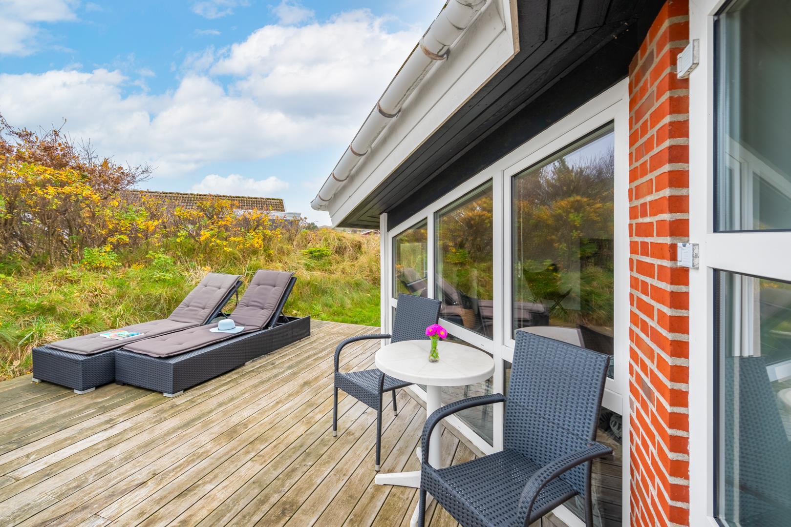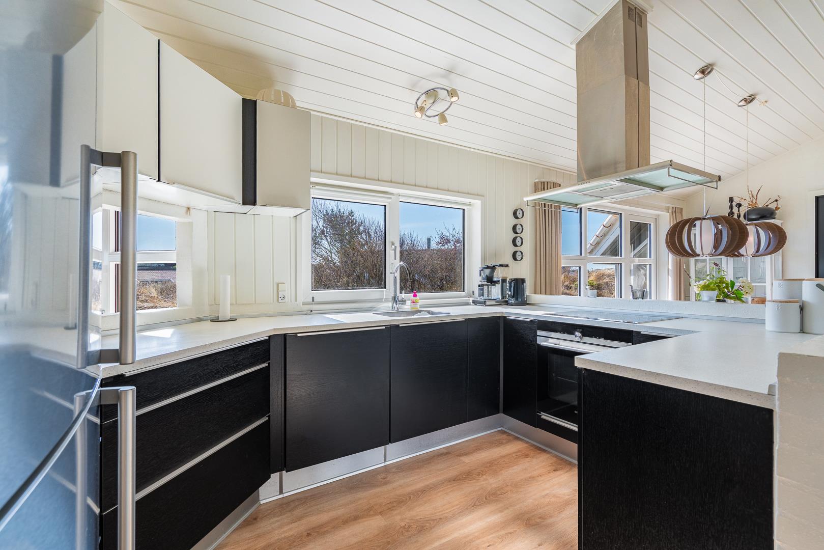 På en klitgrund og for enden af blind vej ligger dette pragtfulde feriehus. Fremhæves kan først og fremmest aktivitetsrum med, pool bord, bordtennis og bordfodbold. Lækkert nyt køkken som er i åben forbindelse med den flot indrettede stue. Huset fremstår overalt lyst, lækkert og stilfuldt indrettet. 4 lyse soverum, samt hems. 2 flotte badeværelser med bruser, i det ene finder I husets spa og sauna. Ugeneret træterrasse. Et super lækkert feriehus hvor rammerne er skabt for en god ferie ved Henne Strand.