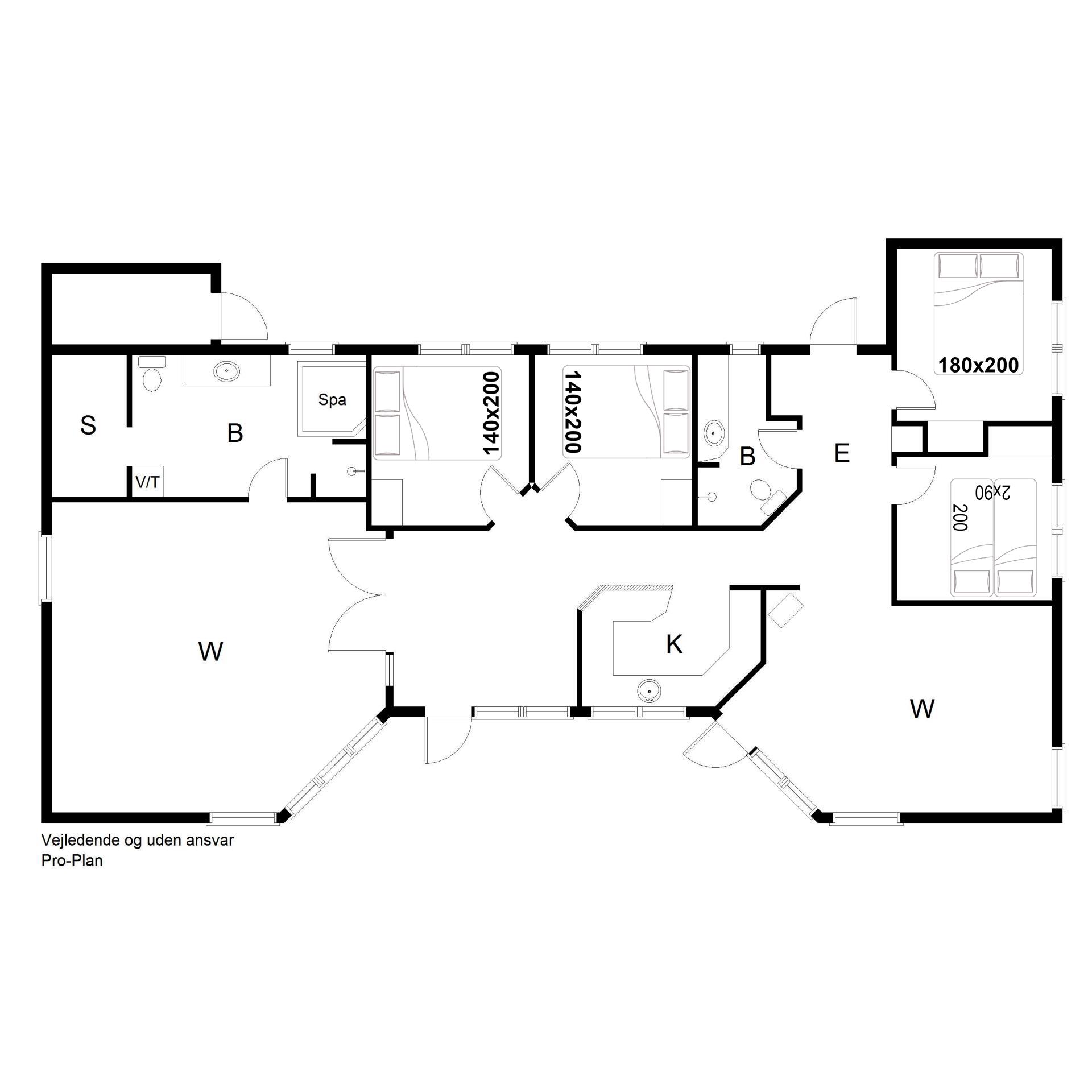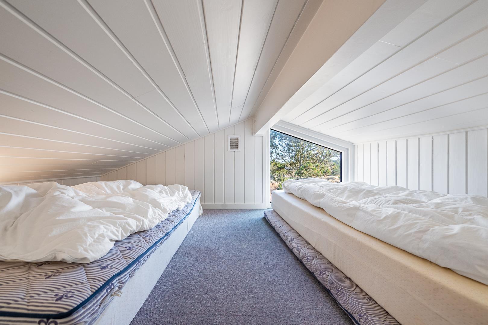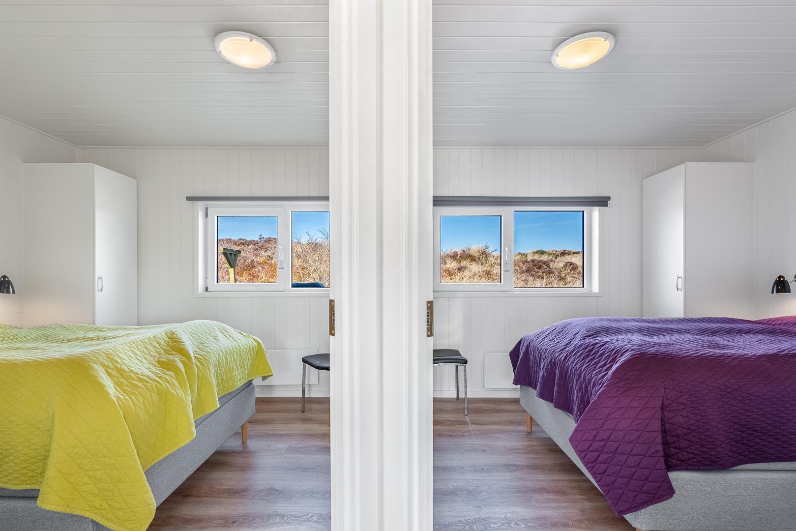 Sengestørrelse: 1 dobbeltseng med 2 madrasser 90 x 200 cm + 1 dobbeltseng 180 x 200 cm + 2 dobbeltsenge 140 x 200 cm