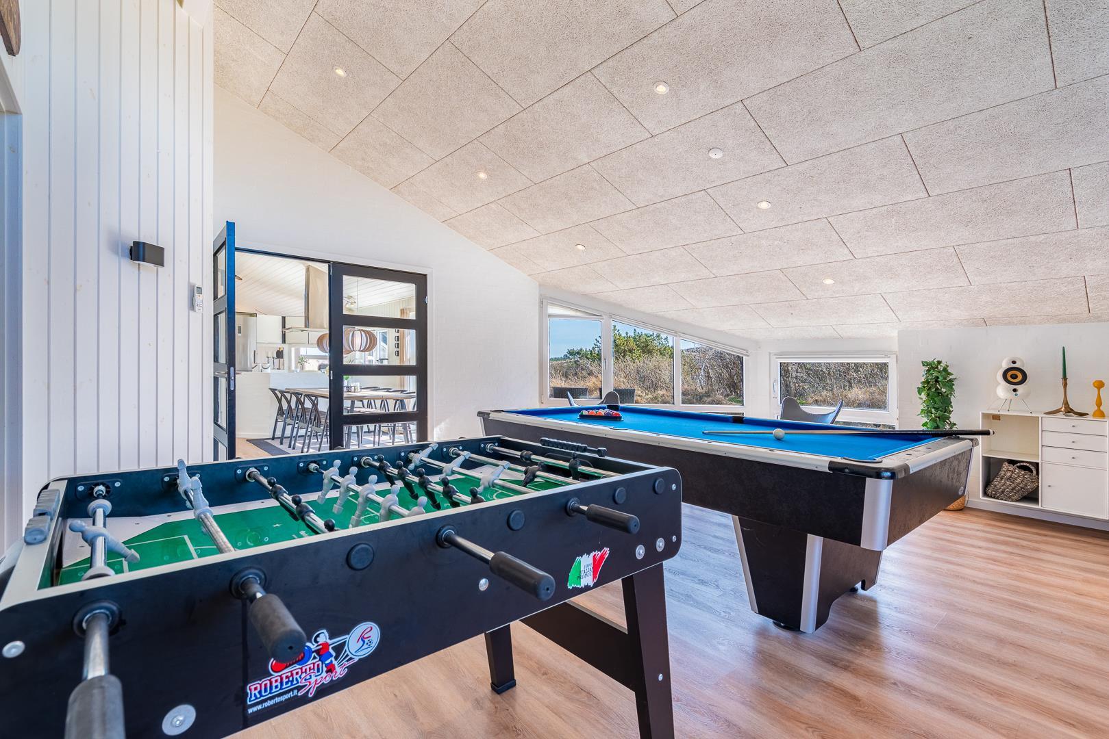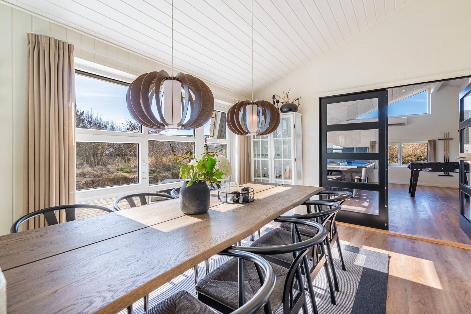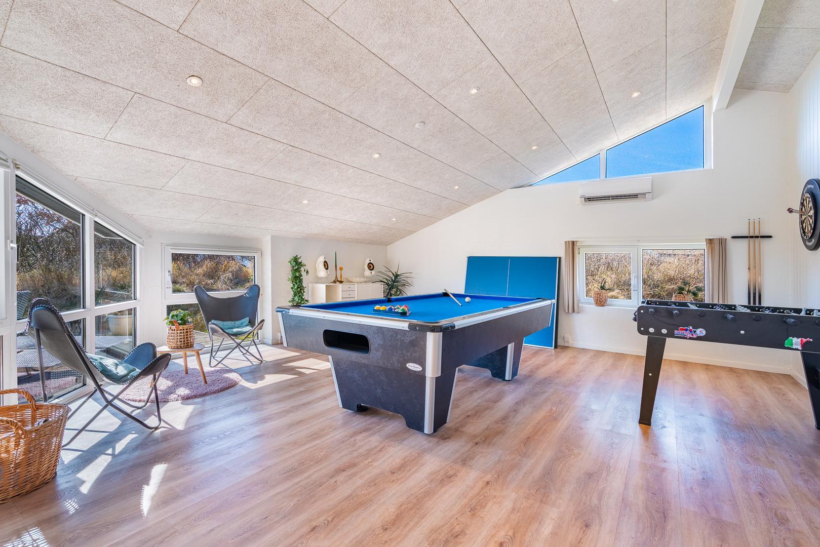 Lyst og stilfuldt feriehus ved Henne Strand med spa, sauna og aktivitetsrum for hele familien.