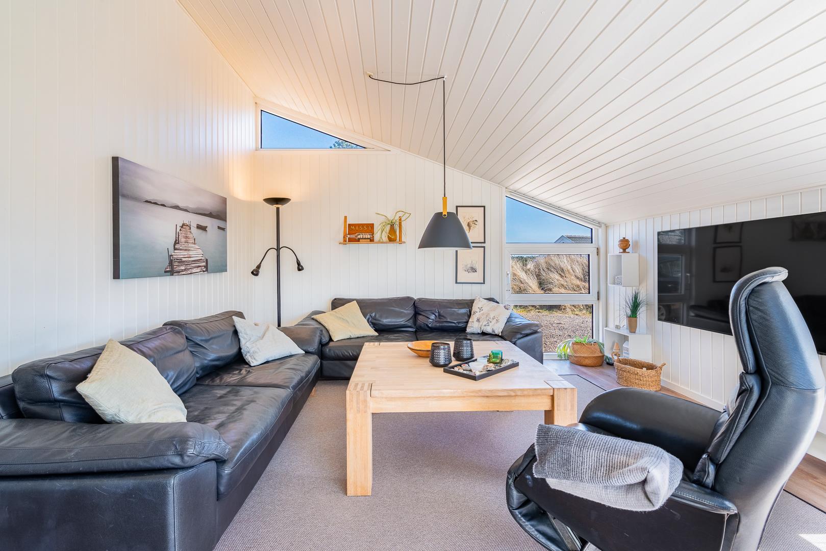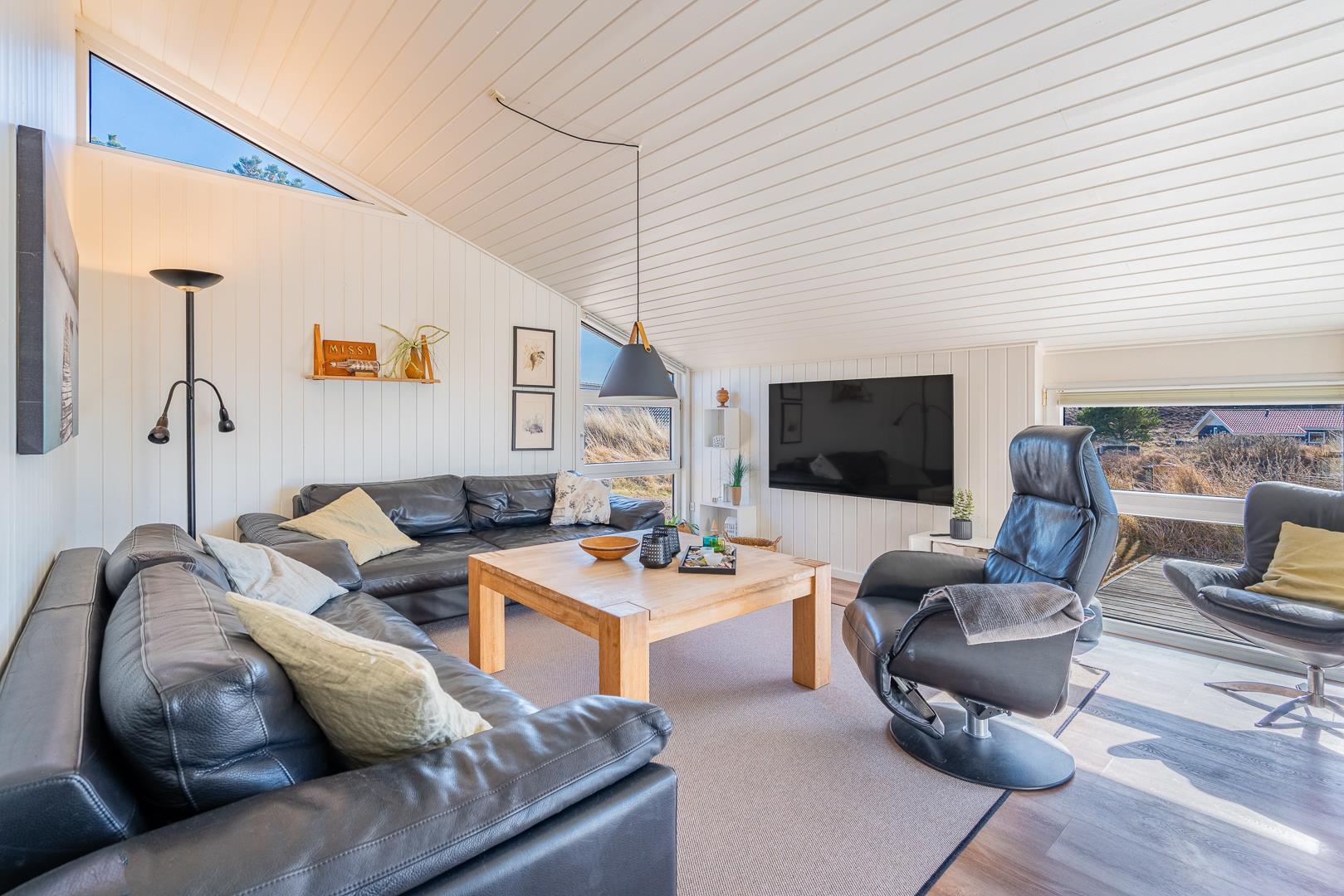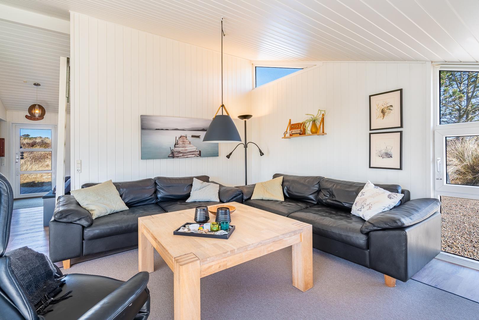 Lyst og stilfuldt feriehus ved Henne Strand med spa, sauna og aktivitetsrum for hele familien.