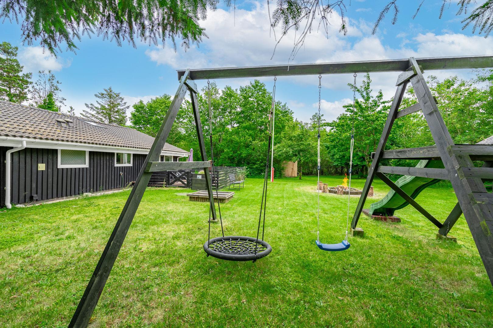 Beliggende midt i Henne By er du inden for cykelafstand til både Blåbjerg Plantage med sine smukke vandre- og cykelstier samt Henne Strand, en af Vestkystens mest populære sommerdestinationer. På grunden finder du et lille overdækket rum perfekt til at sidde i læ eller parkere de medbragte cykler. For ekstra hygge er der en bålplads til at lave snobrød og skabe gode minder omkring flammerne, samt et legestativ med gynge og rutchebane for de små. Dette hyggelige sommerhus er det perfekte sted for en uforglemmelig sommerferieoplevelse med familien!