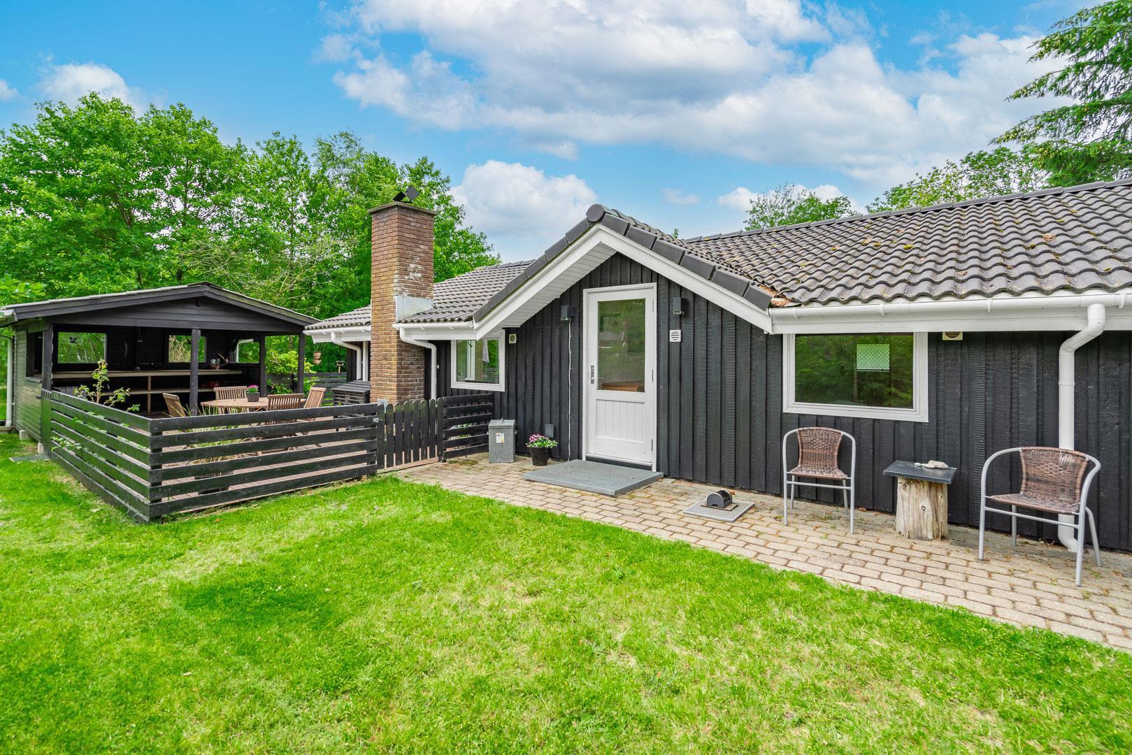 På en rigtig dejlig grund I Henne By ligger dette charmerende sommerhus til 6 personer. Dette smukke sorte træsommerhus byder på en dejlig træterrasse, der omfavner sommerhuset, perfekt til solrige eftermiddage og hyggelige grillaftner.