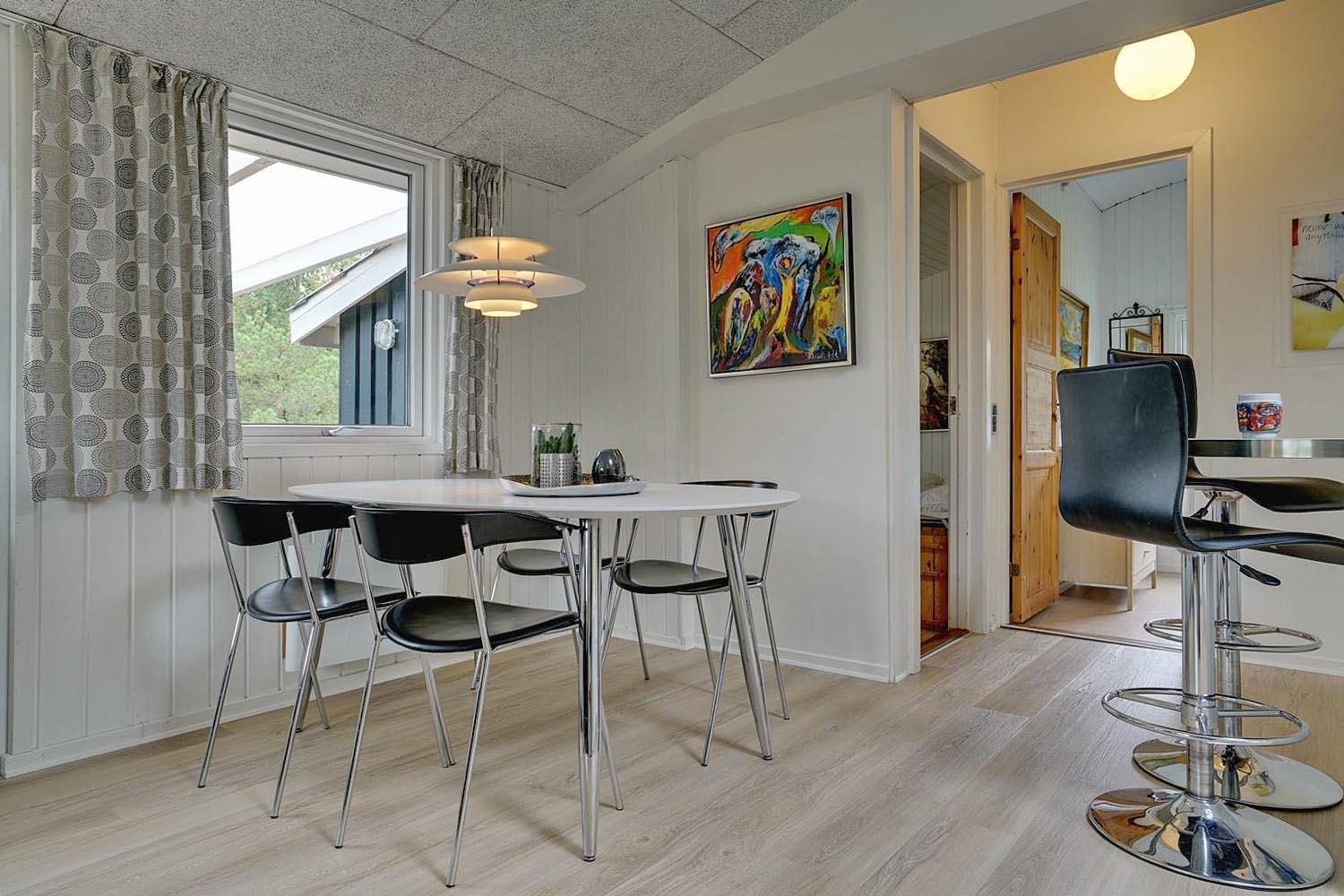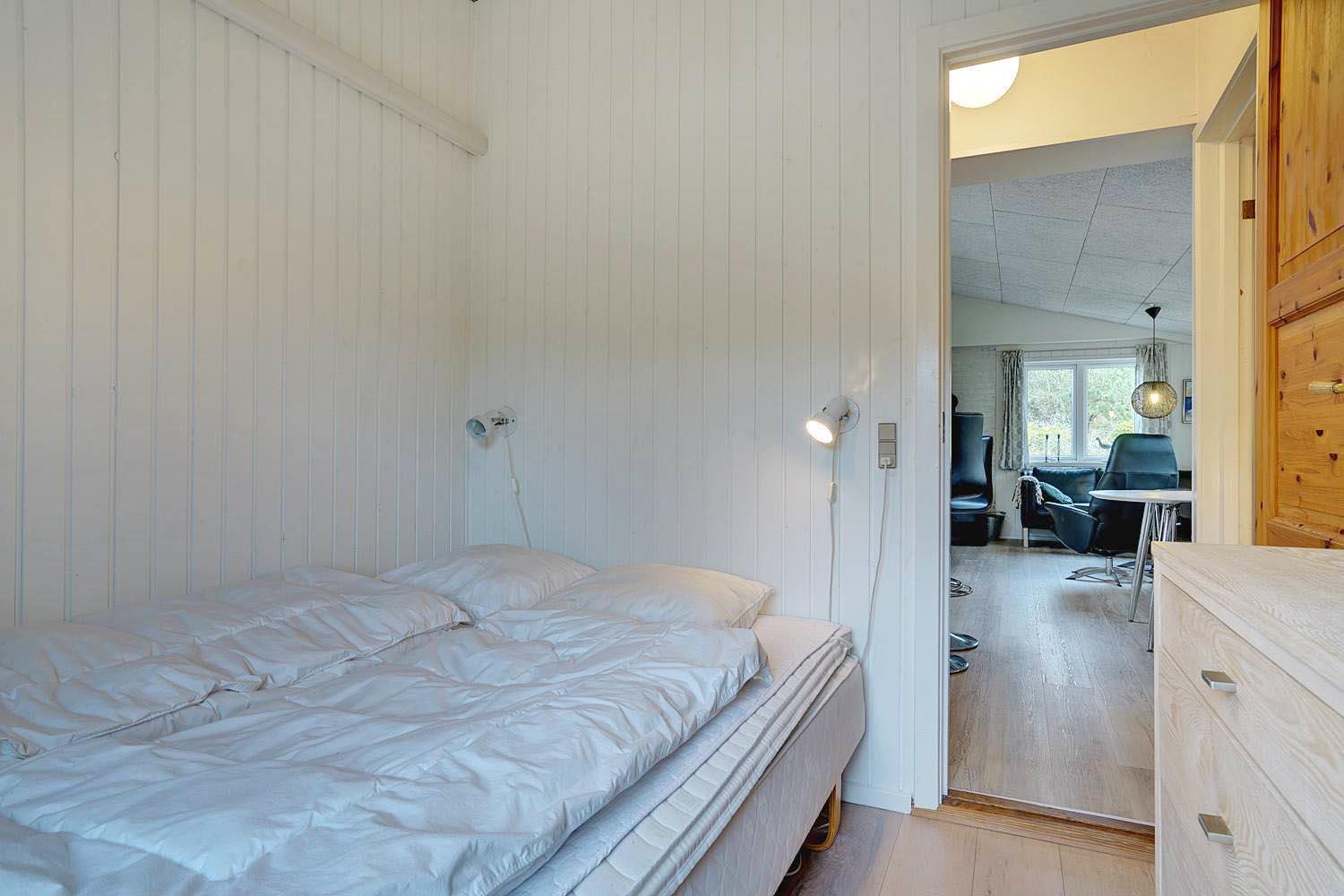 Huset kan rumme fire overnattende gæster i behagelige dobbeltsenge i to af værelserne, mens børnene får lov at sove i køjeseng på det sidste værelse.