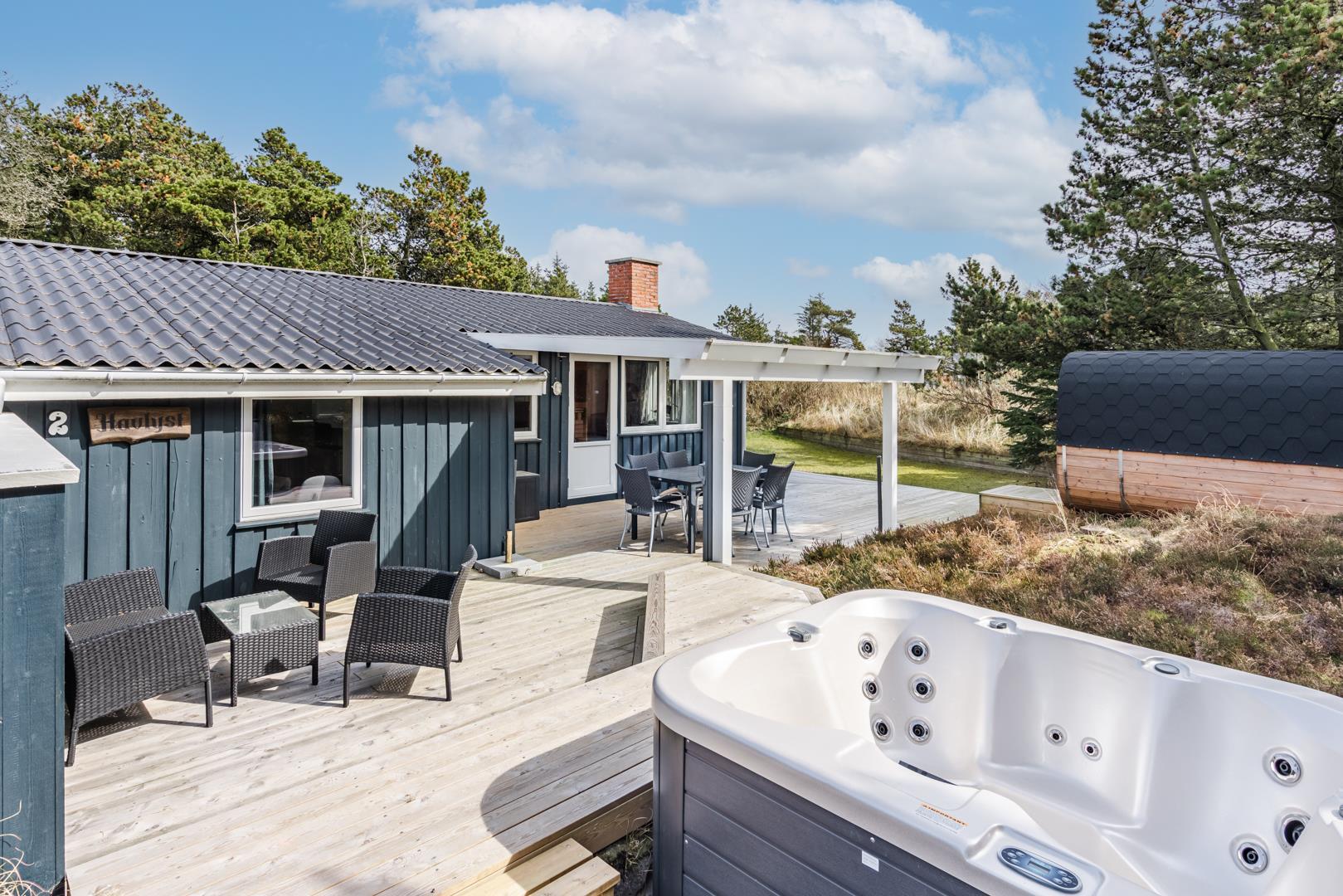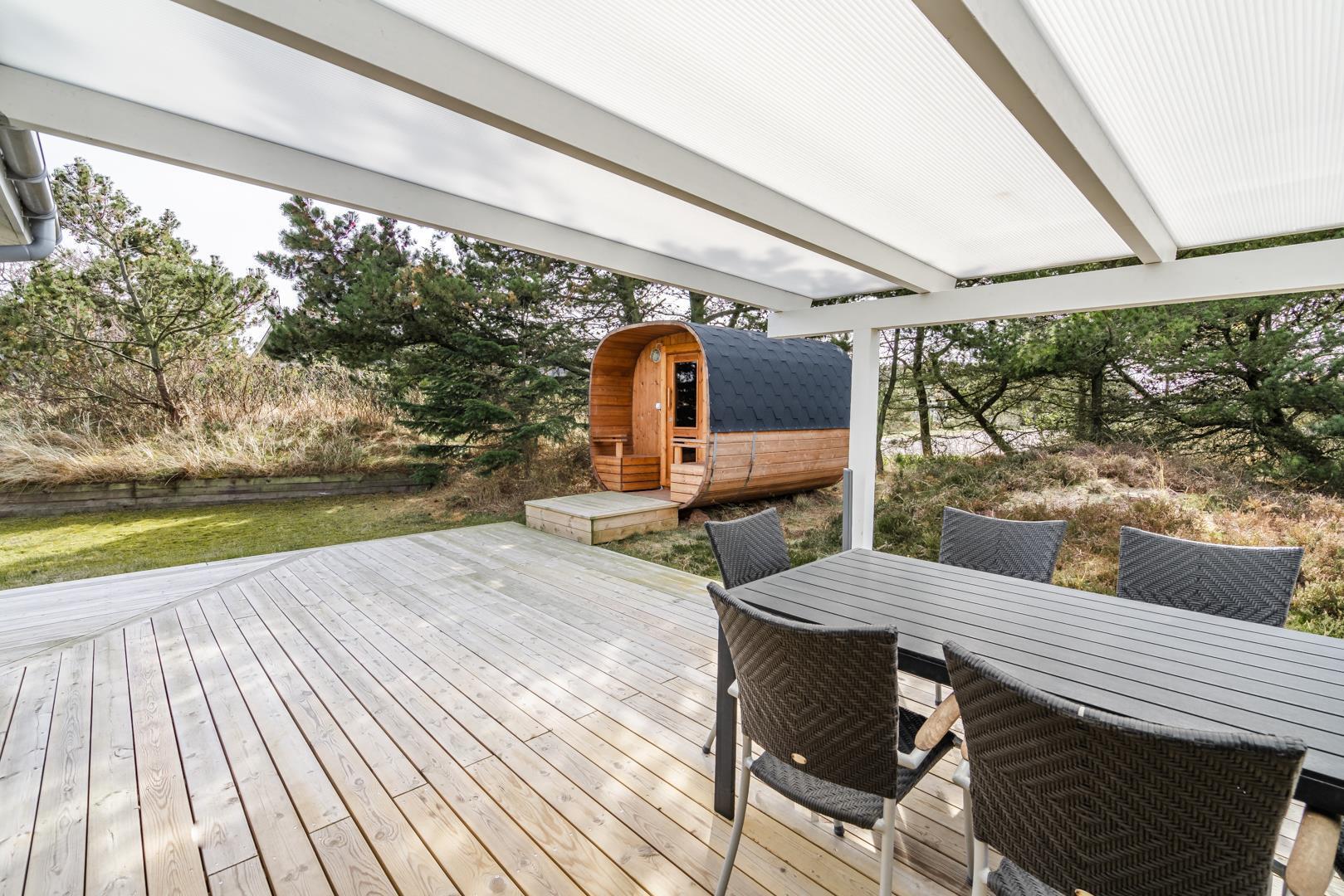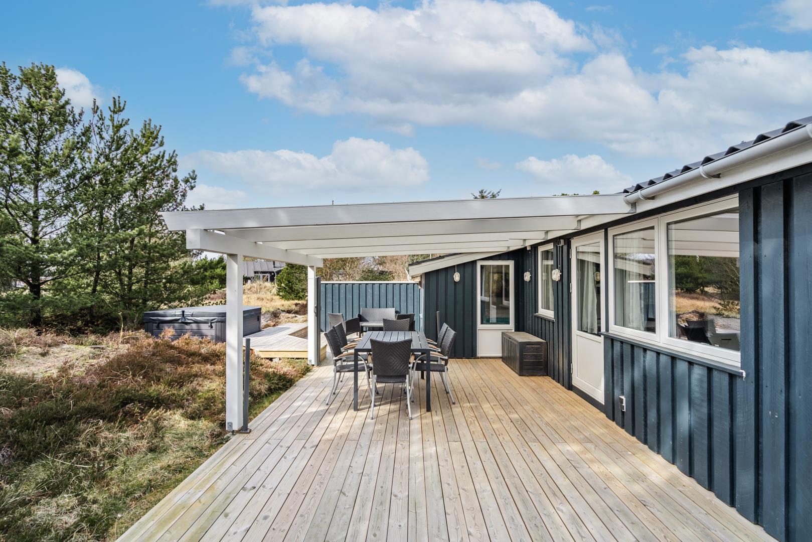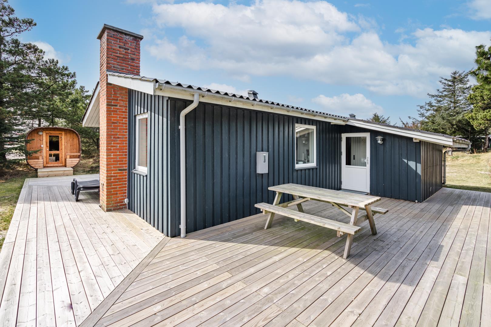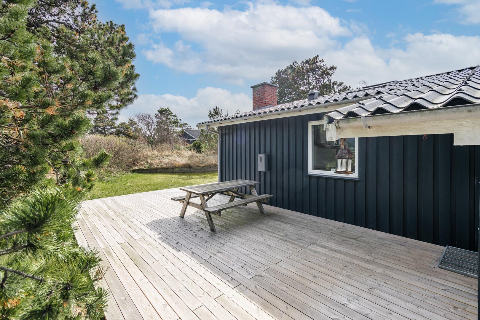 Booker I huset i sommerperioden, er der lagt op til ægte sommer-vibes på den skønne træterrasse, der går næsten hele vejen rundt om huset. Mærk de solvarme træbrædder under dine bare tæer, og find det perfekte spot at slå dig ned enten i sol eller skygge.