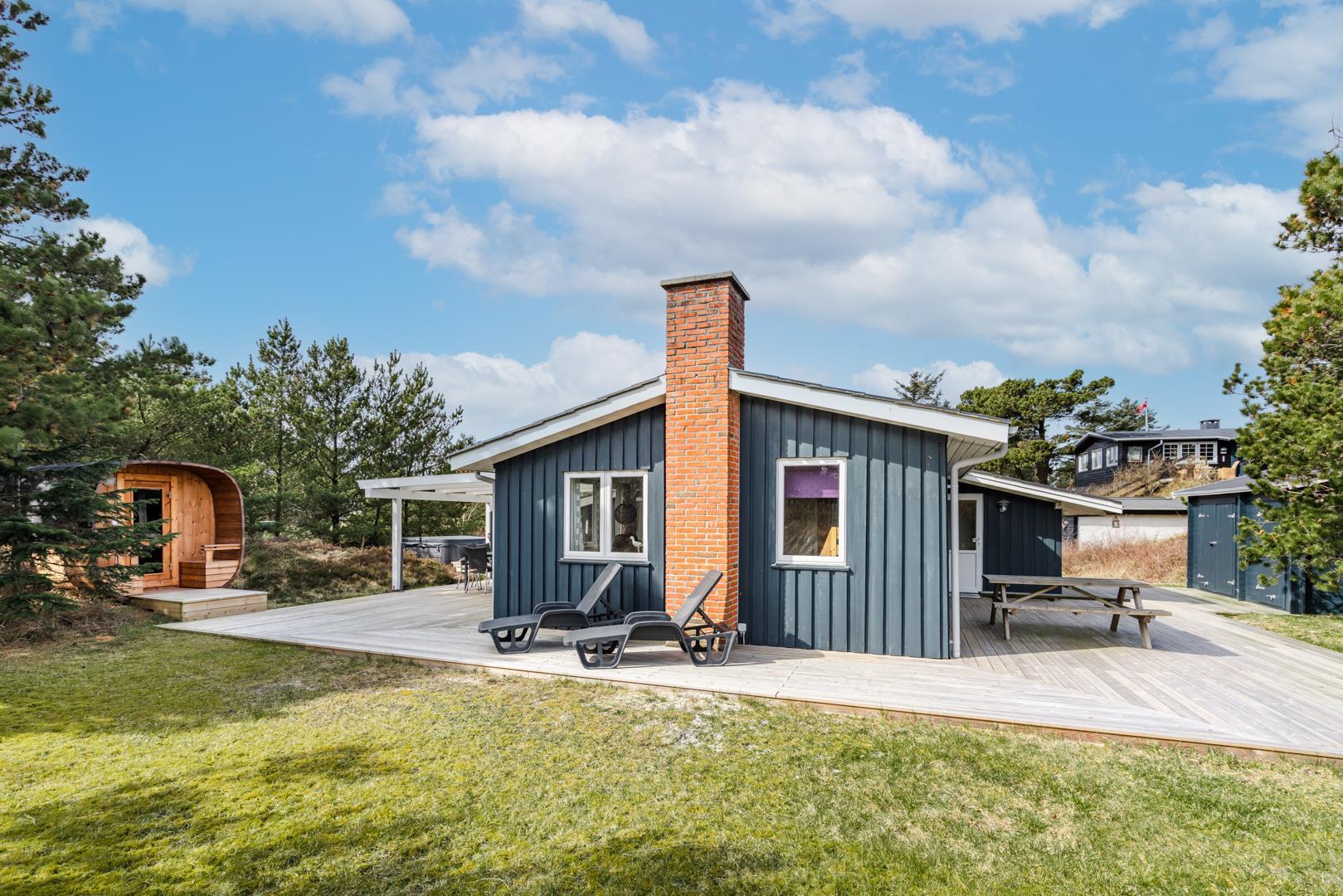 Tag det bedste fra en idyllisk ødegårdsferie i Sverige og kombiner med summende sommerliv ved en solrig sandstrand, så har du noget, der minder om en ferie i dette hus i Henne Strand Nord. Huset er udstyret med saunatønde og en lækker træterrasse, og så ligger det under 200 meter fra de hyggelige butikker på Strandvejen og i cirka samme afstand fra de storslåede naturomgivelser. Når I bevæger dig rundt på den grønne grund, er der en helt særlig ro og læ, som skabes af de gamle fyrretræer, der omkranser matriklen. Det gælder også om aftenen, når der tændes op i saunatønden efter en forfriskende vinterdukkert i havet. Slap blot af og glem verden udenfor.