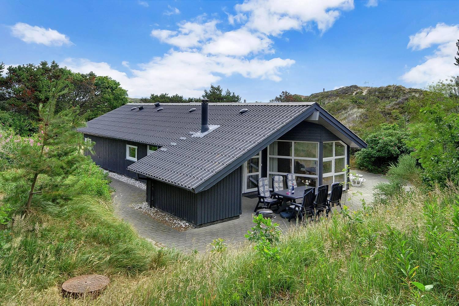Pragtfuldt og meget velholdt kvalitetsferiehus beliggende på en dejlig ugeneret klitgrund for enden af blind stikvej tæt på vandet. Fra den lyse stue der er indrettet med gode og pæne møbler, er der udgang til stor terrasse med gode læforhold. Dejligt veludstyret køkken som er kombineret med stuen. Flot badeværelse med spa og sauna. Der er klinkegulve i.