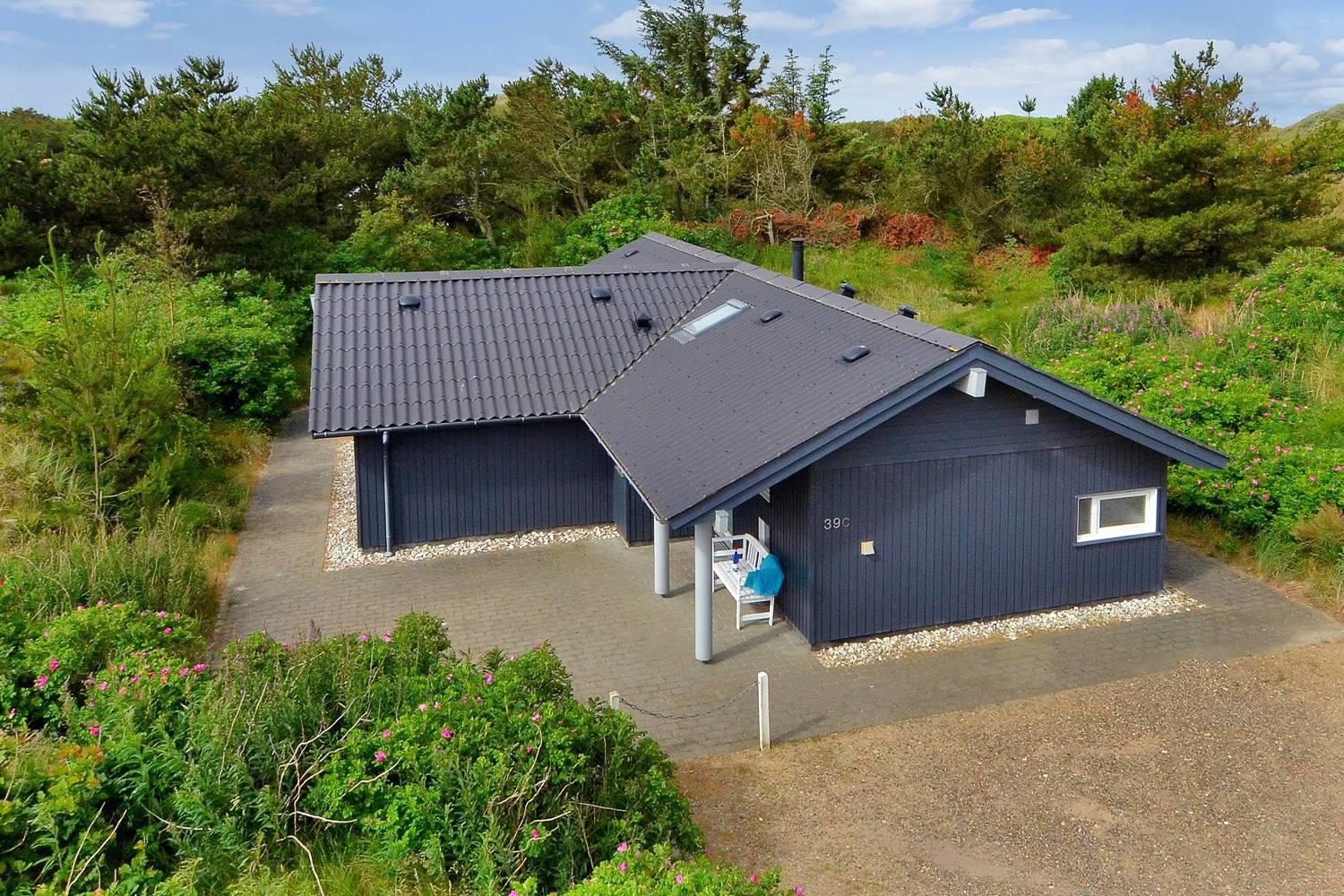 Velholdt feriehus på ugeneret klitgrund nær vandet med spa, sauna og stor terrasse.
