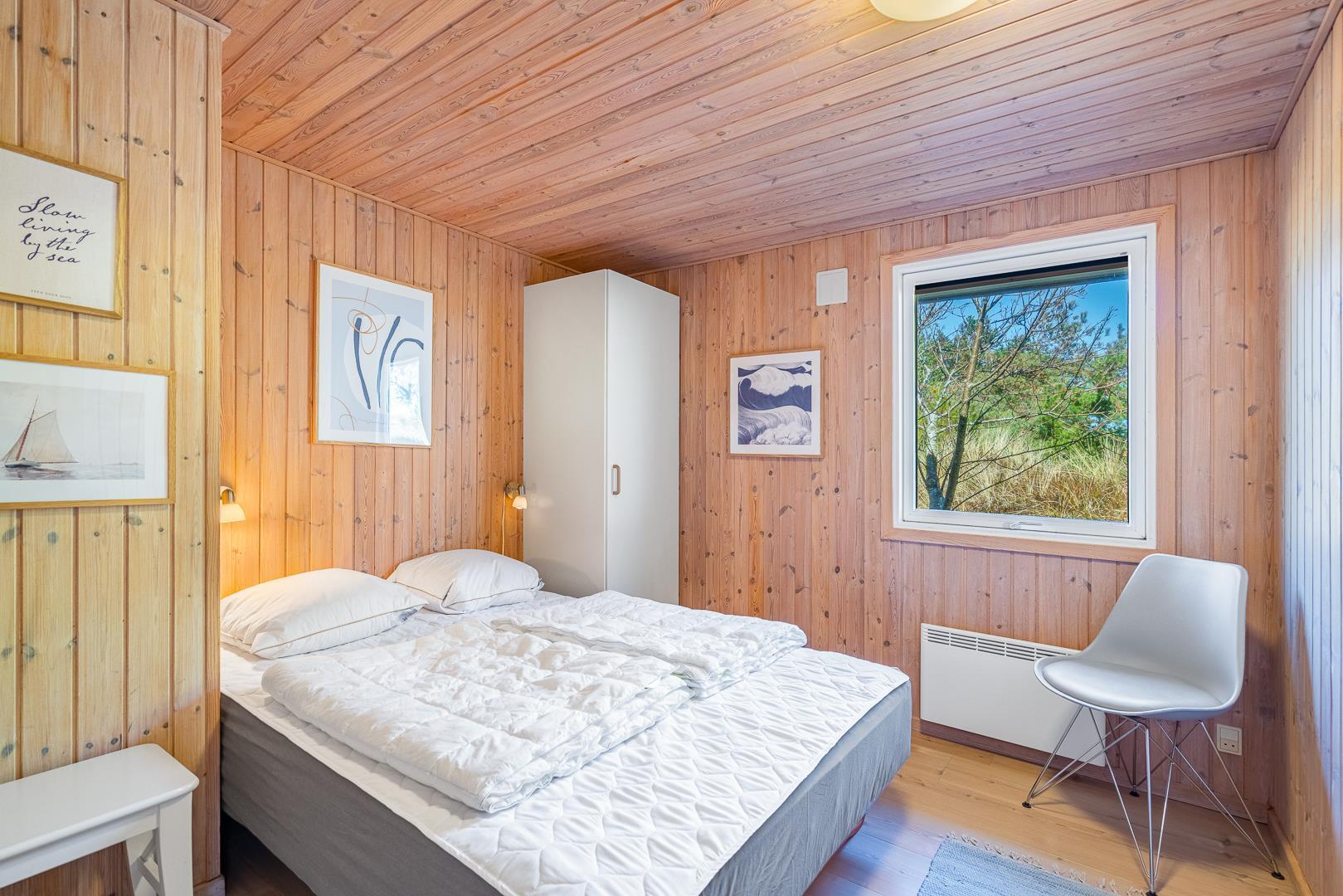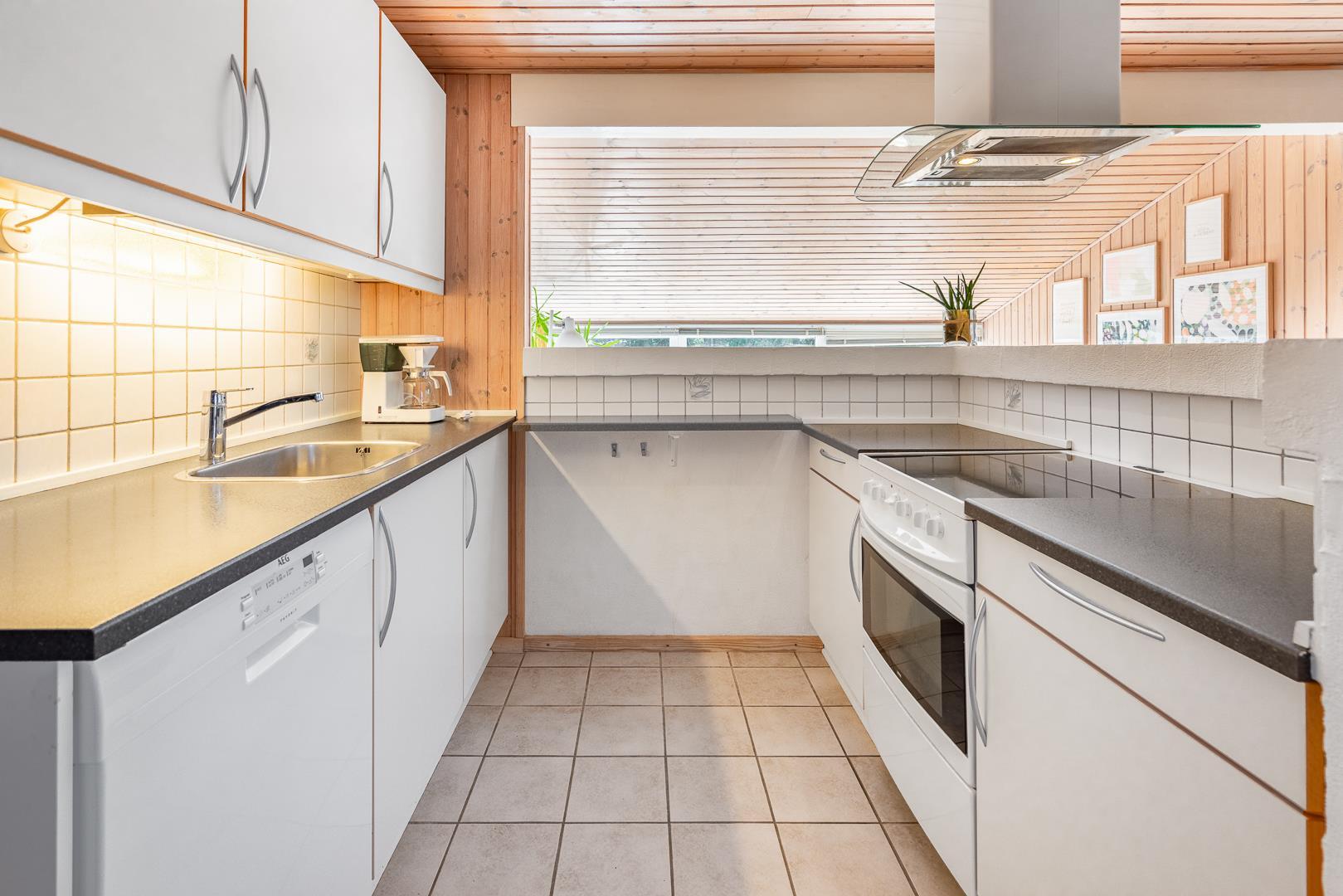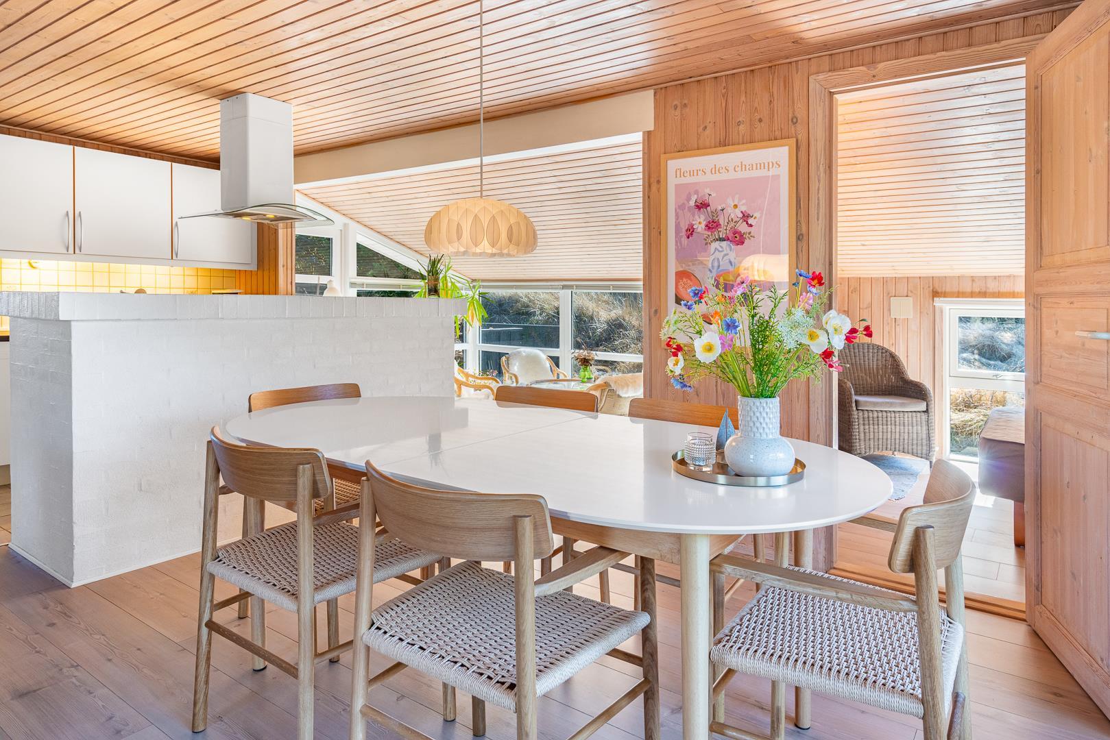 Det åbne køkken er moderne indrettet og naturligvis udstyret med opvaskemaskine, så der bliver mere tid til hyggelige stunder med familie og venner. Sommerhuset har i alt tre soveværelser og plads til op til seks personer – ideelt til både familieferie i Henne Strand eller en tur med gode venner.