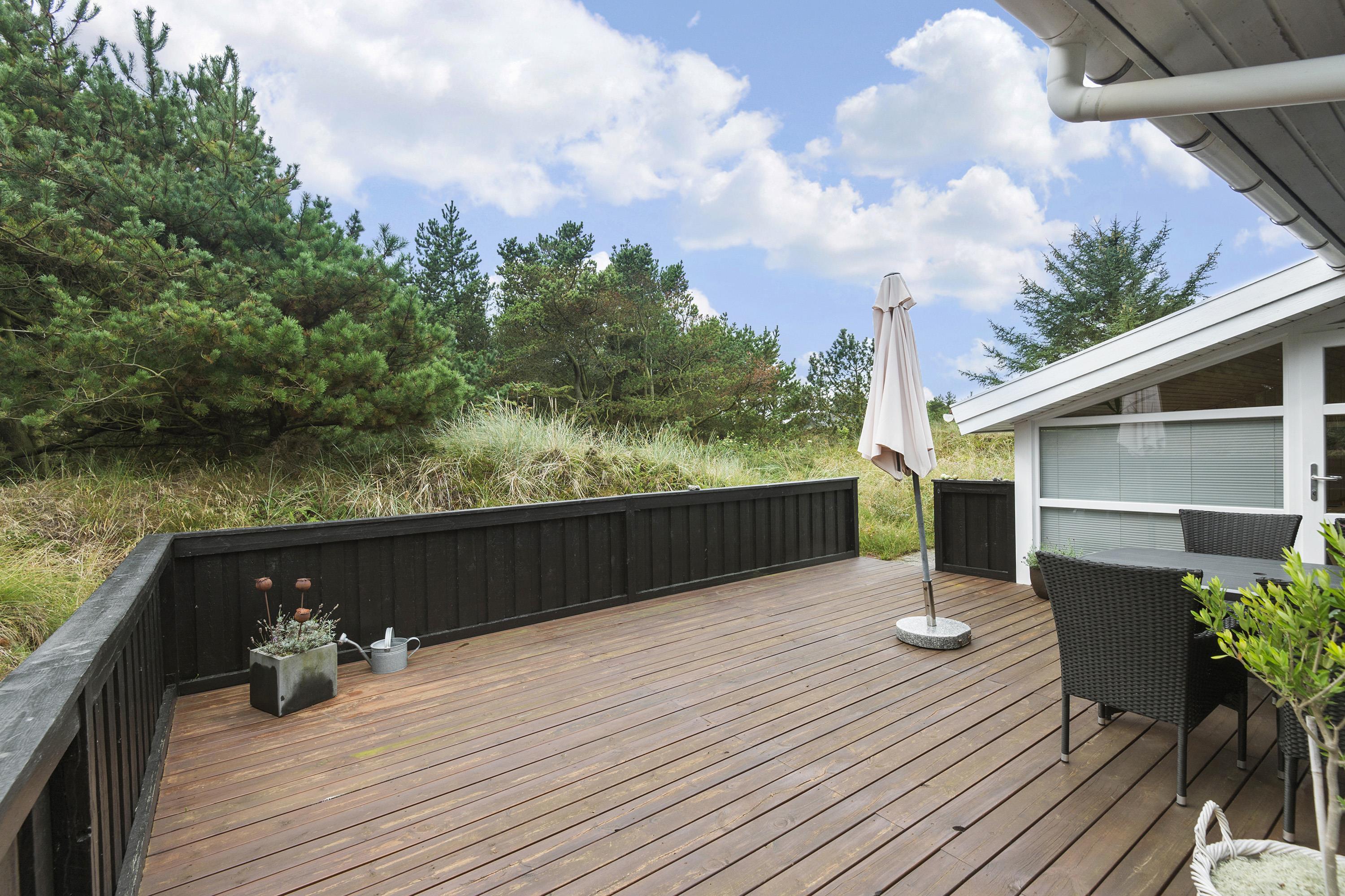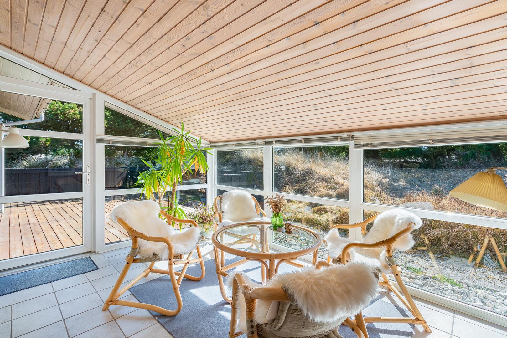 Sommerhuset ligger på en naturskøn grund i et roligt område af Henne Strand. Her kan du nyde freden, privatlivet og den helt særlige sommerhusstemning, som området er kendt for. På terrassen kan dagen starte med morgenmad i den friske havluft – og slutte med en stille sommeraften under åben himmel.