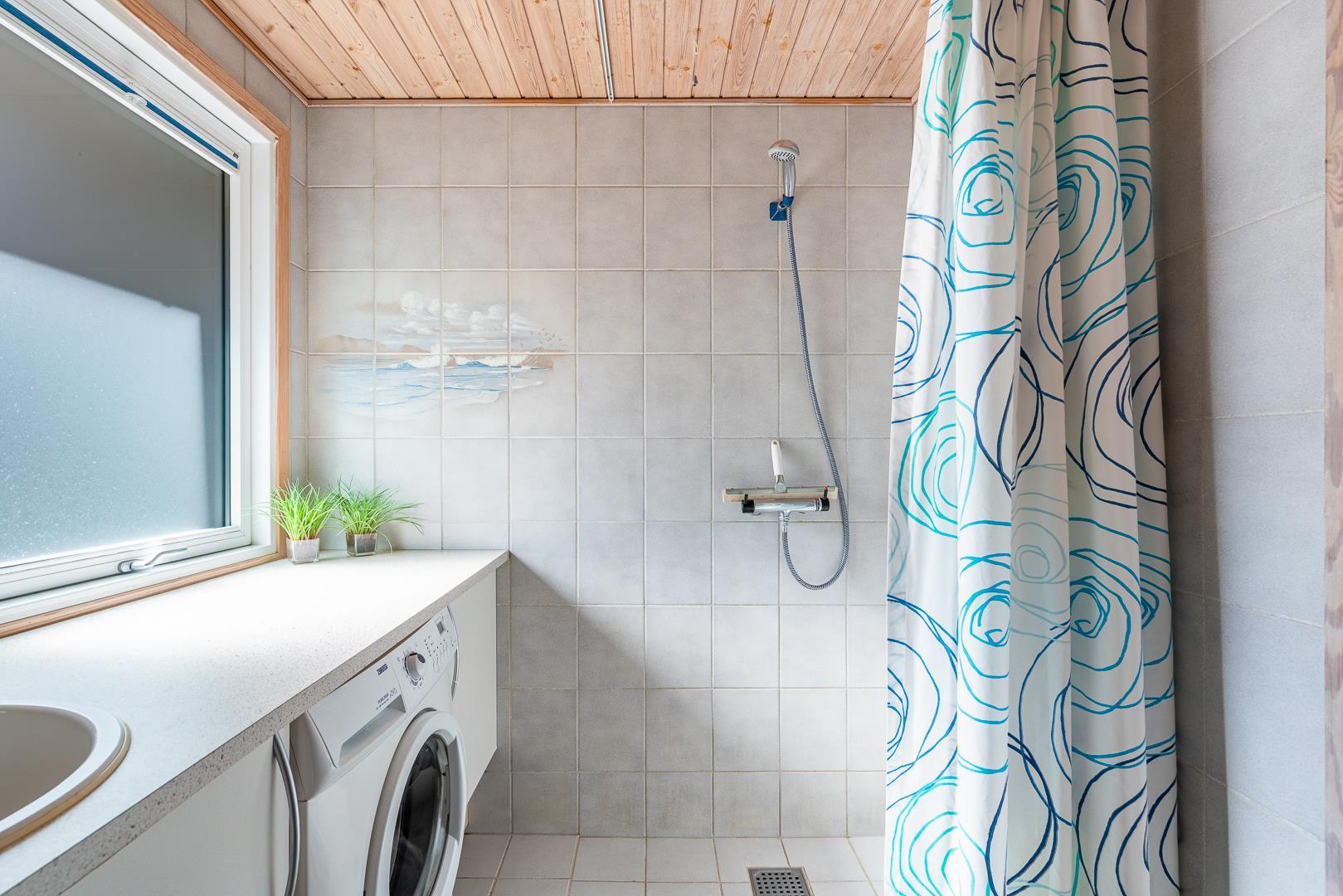 Efter en lang gåtur langs stranden kan du forkæle dig selv i husets private sauna – perfekt til at slappe af og få varmen igen. Badeværelset har gulvvarme, som især er rart i de køligere måneder. Derudover er både vaskemaskine og vandforbrug inkluderet, så ferien bliver ekstra bekvem.
